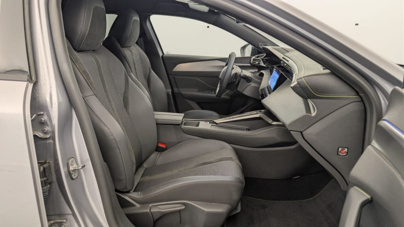 Frein de stationnement électrique / Détection de sous gonflage / Alerte attention conducteur / Commutation automatique des feux de route / Pédalier Sport aluminium et repose pied en aluminium / Accès et démarrage mains libres / Ceintures de sécurité AR 3 points à enrouleur (x3) avec prétensionneurs et limiteurs d'effort aux places latérales / Airbags frontaux conducteur et passager adaptatifs (passager neutralisable par clé), airbags latéraux conducteur et passager AV.airbags rideaux de tête aux places AV/AR / Kit de dépannage de pneumatique : compresseur 12 volts, flacon de produit de colmatage, anneau de remorquage, deux cales de roue, manivelle de frein de stationnement électrique / Air Quality System (sonde de pollution, couplée à un filtre à charbon actif Haute Efficacité) / Alerte active de franchissement involontaire de ligne et bas côté / 4 poignées de maintien (2 à l'AV et 2 à l'AR) / Sélecteur de modes de conduite (Electric, Hybrid, Sport) / Essuie-vitre AV à déclenchement automatique / Fixations pour 2 sièges enfants ISOFIX, aux places AR, inclus Top Tether / Rétroviseur intérieur photosensible sans cadre / Pack Drive Assist : Régulateur de vitesse adaptatif avec fonction Stop&Go Pack Safety Plus / Lève-vitres électriques AV/ AR et séquentiels avec anti-pincement / Rétroviseurs extérieurs électriques, dégivrants et rabattables électriquement, avec répétiteurs de feux clignotants à LED / Jupe AR Noir Brillant avec décors chromés / Diffuseurs d'air aux places AR / Projecteurs Peugeot Matrix LED / Feux AR spécifiques avec allumage dynamique griffe à griffe / Calandre AV spécifique Noir verni avec inserts chromés et écopes Noir Brillant / Elargisseurs de pare chocs AV et de bas de caisse latéraux / Jantes alliage 18" Kamakura diamantées / Feux diurnes à LED sous projecteurs nouvelle signature Peugeot / Eclairage d'ambiance (8 couleurs) / Barres de toit Alu/Noir Onyx / 2 prises USB-C à l'AR / Banquette AR rabattable 40 - 20 - 40 déverrouillable depuis le coffre / Vitres de custode AR et lunette AR chauffante temporisée surteintées / Fonction Mirror Screen (Apple CarPlay/Android Auto) sans fil / Ceintures de sécurité AV 3 points à enrouleur, avec prétensionneurs et limiteurs d'effort / 2 prises USB-C à l'AV / Capacité batterie 12,4kWh / ESP avec fonction Hill Assist (Aide au démarrage en pente) / Pare-brise teinté feuilleté acoustique / PEUGEOT Connect SOS & Assistance / Câble de recharge mode 2 (10A, 2,3kW) pour prise domestique standard / Garnissage tri-matières TEP/Tissu New Belomka / Réglage lombaire du siège conducteur / 2 télécommandes 3 boutons / / Véhicules équivalents: Megane - C4 - Mazda 3