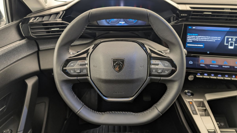 Frein de stationnement électrique / Système stop & go couplé avec l'assistance au positionnement sur la voie / Jantes alliage 17" Halong diamantées / Détection de sous gonflage / Alerte attention conducteur / Commutation automatique des feux de route / Rétroviseur intérieur photosensible / Ceintures de sécurité AR 3 points à enrouleur (x3) avec prétensionneurs et limiteurs d'effort aux places latérales / Airbags frontaux conducteur et passager adaptatifs (passager neutralisable par clé), airbags latéraux conducteur et passager AV.airbags rideaux de tête aux places AV/AR / Alerte active de franchissement involontaire de ligne et bas côté / Essuie-vitre AV à déclenchement automatique / Fixations pour 2 sièges enfants ISOFIX, aux places AR, inclus Top Tether / Sélecteur mode de conduite Eco et Sport / Lève-vitres électriques AV/ AR et séquentiels avec anti-pincement / Rétroviseurs extérieurs électriques, dégivrants et rabattables électriquement, avec répétiteurs de feux clignotants à LED / Ciel de pavillon clair / Calandre AV Noir avec inserts chromés et écopes Noir / Jupe AR Noir Brillant avec décors chromés / Diffuseurs d'air aux places AR / Feux diurnes à LED sous projecteurs nouvelle signature Peugeot / 2 prises USB-C à l'AR / Banquette AR rabattable 40 - 20 - 40 déverrouillable depuis le coffre / Vitres de custode AR et lunette AR chauffante temporisée surteintées / Fonction Mirror Screen (Apple CarPlay/Android Auto) sans fil / Lunette AR surteintée / Ceintures de sécurité AV 3 points à enrouleur, avec prétensionneurs et limiteurs d'effort / 2 prises USB-C à l'AV / Lécheurs de vitres Noir Brillant / ESP avec fonction Hill Assist (Aide au démarrage en pente) / Accoudoir central AV avec compartiment de rangement / Garnissage tri-matières TEP/Tissu Falgo, surpiqûres Bleu / Pare-brise teinté feuilleté acoustique / Planche de bord avec jonc transversal peint et décor textile Texa / 4 poignées de maintien / Pack Drive Assist - Régulateur de vitesse adaptatif avec fonction Stop&Go Maintient automatiquement la vitesse du véhicule à la vitesse de référence définie par le conducteur, et ajuste automatiquement la vitesse du véhicule pour garder une distance de sécurité avec le véhicule qui précède, conformément au réglage sélectionné par le conducteur. Maintient et ajuste la vitesse jusqu'à l'arrêt. Le redémarrage du véhicule est automatique si l'arrêt a été d'une durée inférieure à 3 secondes : Régulateur de vitesse adaptatif avec fonction Stop&Go / Pack Safety Plus Active Safety Brake piloté par caméra et radar : Active Safety Brake piloté par caméra et radar / Peugeot i-Cockpit avec instrumentation numérique 10" personnalisable / Réglage lombaire du siège conducteur / Boîte de vitesse automatique, séquentielle (6 rapports) / Intervalle de maintenance 25 000 km ou 1 an / 2 télécommandes 3 boutons / / Véhicules équivalents: Megane - C4 - Mazda 3