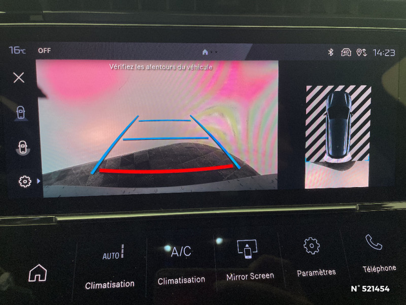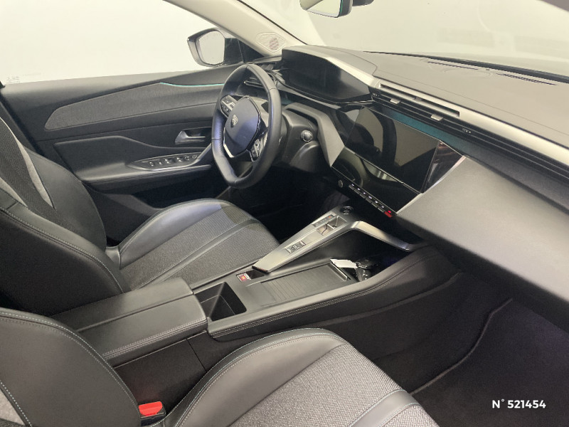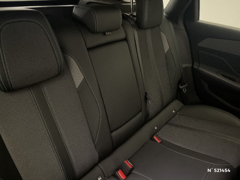 Jupe AR Noir Brillant avec décors chromés / Planche de bord avec jonc transversal chromé et décor textile Texa / Ciel de pavillon clair / Garnissage tri-matières TEP/Tissu Falgo / Kit de dépannage de pneumatique : compresseur 12 volts, flacon de produit de colmatage, anneau de remorquage, deux cales de roue, manivelle de frein de stationnement électrique / Feux diurnes à LED sous projecteurs nouvelle signature Peugeot / 2 télécommandes 3 boutons / Fonction Mirror Screen (Apple CarPlay/Android Auto) sans fil / 2 prises USB-C à l'AR / Banquette AR rabattable 40-20-40 déverrouillable depuis le coffre / Vitres de custode AR et lunette AR chauffante temporisée surteintées / Smart Multidrive: personnalisation du combiné et éclairage d'ambiance LED intérieur associés aux modes de conduite / Diffuseurs d'air AR / Essuie-vitre AV à déclenchement automatique / Rétroviseurs extérieurs avec éclairage d'approche / Airbags frontaux conducteur et passager adaptatifs (passager neutralisable par clé), airbags latéraux conducteur et passager AV, airbags rideaux de tête aux places AV et AR / Navigation connectée avec écran central tactile 10'' et écran avec i-Toggles virtuels personnalisables. Reconnaissance vocale en langage naturel. / Peugeot i-Cockpit avec combiné d'instrumentation numérique 10'' personnalisable / Calandre AV Noir avec inserts chromés et écopes Noir / Prise 12V dans le coffre / Rétroviseurs extérieurs électriques, dégivrants et rabattables électriquement avec répétiteurs de feux clignotants à LED / Jantes alliage 17'' Calgary diamantées / Ceintures de sécurité AV 3 points à enrouleur, avec prétensionneurs et limiteurs d'effort / Navigation connectée / PEUGEOT Connect SOS & Assistance / 2 prises USB sur console AV / Sélecteur mode de conduite Eco et Sport / Ceintures de sécurité AR 3 points à enrouleur (x3) avec prétensionneurs et limiteurs d'effort aux places latérales / Frein de stationnement électrique / Détection de sous gonflage / Fixations pour 2 sièges enfants ISOFIX, aux places AR, inclus Top Tether / Rétroviseur intérieur photosensible sans cadre / Alerte active de franchissement involontaire de ligne et bas côté / Pack Safety Plus / Air Quality System (sonde de pollution, couplée à un filtre à charbon actif Haute Efficacité) / Pare-brise feuilleté acoustique / Lève-vitres électriques AV et AR et séquentiels avec anti-pincement / Alerte attention conducteur / Garnissage tri-matières TEP/Tissu Falgo, surpiqûres Bleu / Réglage lombaire du siège conducteur / Plancher de coffre 2 positions / 4 poignées de maintien (2 à l'AV et 2 à l'AR) / Commutation automatique des feux de route / 2 prises USB-C à l'AV / Lécheurs de vitres latérales Noir Brillant