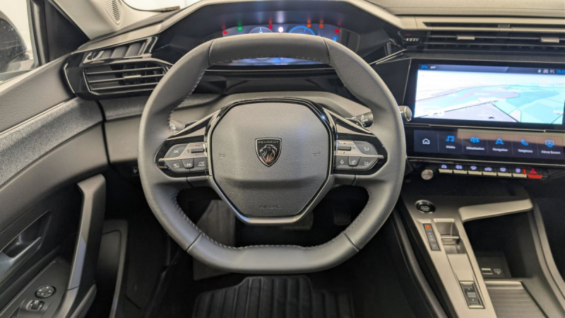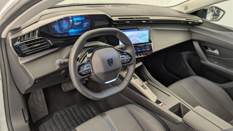 Frein de stationnement électrique / Système stop & go couplé avec l'assistance au positionnement sur la voie / Jantes alliage 17" Halong diamantées / Détection de sous gonflage / Alerte attention conducteur / Commutation automatique des feux de route / Rétroviseur intérieur photosensible / Ceintures de sécurité AR 3 points à enrouleur (x3) avec prétensionneurs et limiteurs d'effort aux places latérales / Airbags frontaux conducteur et passager adaptatifs (passager neutralisable par clé), airbags latéraux conducteur et passager AV.airbags rideaux de tête aux places AV/AR / Alerte active de franchissement involontaire de ligne et bas côté / Essuie-vitre AV à déclenchement automatique / Fixations pour 2 sièges enfants ISOFIX, aux places AR, inclus Top Tether / Sélecteur mode de conduite Eco et Sport / Lève-vitres électriques AV/ AR et séquentiels avec anti-pincement / Rétroviseurs extérieurs électriques, dégivrants et rabattables électriquement, avec répétiteurs de feux clignotants à LED / Ciel de pavillon clair / Calandre AV Noir avec inserts chromés et écopes Noir / Jupe AR Noir Brillant avec décors chromés / Feux diurnes à LED sous projecteurs nouvelle signature Peugeot / Vitres de custode AR et lunette AR chauffante temporisée surteintées / Fonction Mirror Screen (Apple CarPlay/Android Auto) sans fil / Lunette AR surteintée / Ceintures de sécurité AV 3 points à enrouleur, avec prétensionneurs et limiteurs d'effort / 2 prises USB-C à l'AV / ESP avec fonction Hill Assist (Aide au démarrage en pente) / Accoudoir central AV avec compartiment de rangement / Garnissage tri-matières TEP/Tissu Falgo, surpiqûres Bleu / Pare-brise teinté feuilleté acoustique / Pack Drive Assist - Régulateur de vitesse adaptatif avec fonction Stop&Go Maintient automatiquement la vitesse du véhicule à la vitesse de référence définie par le conducteur, et ajuste automatiquement la vitesse du véhicule pour garder une distance de sécurité avec le véhicule qui précède, conformément au réglage sélectionné par le conducteur. Maintient et ajuste la vitesse jusqu'à l'arrêt. Le redémarrage du véhicule est automatique si l'arrêt a été d'une durée inférieure à 3 secondes / Pack Safety Plus : Active Safety Brake piloté par caméra et radar / Peugeot i-Cockpit avec instrumentation numérique 10" personnalisable / Réglage lombaire du siège conducteur / Boîte de vitesse automatique, séquentielle (6 rapports) / Intervalle de maintenance 25 000 km ou 1 an / / Véhicules équivalents: Megane - C4 - Mazda 3