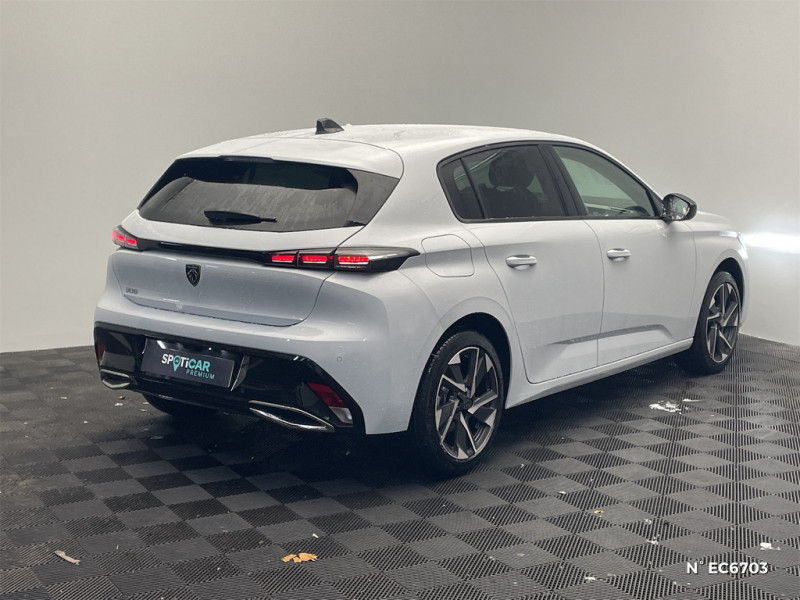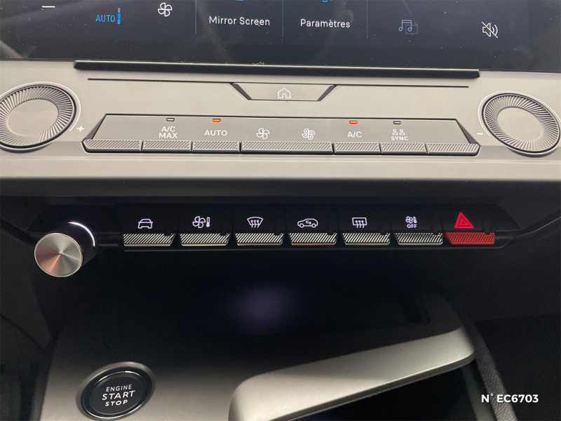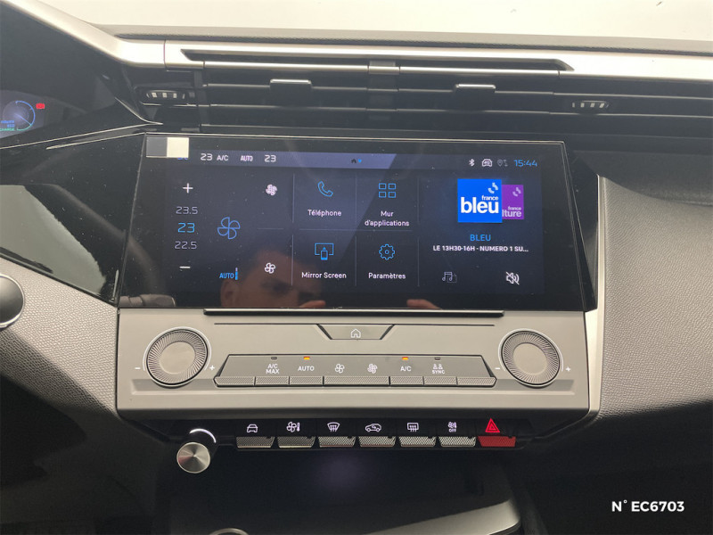 2 prises USB-C à l'AR / 2 télécommandes 3 boutons / 4 poignées de maintien / Commutation automatique des feux de route / Détection de sous gonflage / Diffuseurs d'air aux places AR / ESP avec fonction Hill Assist (Aide au démarrage en pente) / Essuie-vitre AV à déclenchement automatique / Feux diurnes à LED sous projecteurs nouvelle signature Peugeot / Fonction Mirror Screen (Apple CarPlay/Android Auto) sans fil / Frein de stationnement électrique / Garnissage tri-matières TEP/Tissu Falgo, surpiqûres Bleu / Jantes alliage 17" Halong diamantées / Jupe AR Noir Brillant avec décors chromés / Kit de dépannage de pneumatique : compresseur 12 volts, flacon de produit de colmatage, anneau de remorquage, deux cales de roue, manivelle de frein de stationnement électrique / Lécheurs de vitres Noir Brillant / Lève-vitres électriques AV/ AR et séquentiels avec anti-pincement / Navigation connectée / Navigation connectée avec écran central tactile 10'' et écran avec iToggles virtuels personnalisables. Reconnaissance vocale en langage naturel. / Pack Drive Assist - Régulateur de vitesse adaptatif avec fonction Stop&Go Maintient automatiquement la vitesse du véhicule à la vitesse de référence définie par le conducteur, et ajuste automatiquement la vitesse du véhicule pour garder une distance de sécurité avec le véhicule qui précède, conformément au réglage sélectionné par le conducteur. Maintient et ajuste la vitesse jusqu'à l'arrêt. Le redémarrage du véhicule est automatique si l'arrêt a été d'une durée inférieure à 3 secondes / Pack Safety Plus Active Safety Brake piloté par caméra et radar / Pare-brise teinté feuilleté acoustique / Peugeot i-Cockpit avec combiné d'instrumentation numérique 10'' personnalisable / Planche de bord avec jonc transversal peint et décor textile Texa / Pompe à chaleur / Réglage lombaire du siège conducteur / Rétroviseur intérieur photosensible / Rétroviseurs extérieurs électriques, dégivrants et rabattables électriquement, avec répétiteurs de feux clignotants à LED / Sélecteur mode de conduite Eco et Sport / Ciel de pavillon clair / Accoudoir central AV avec compartiment de rangement / Air Quality System / Airbags frontaux conducteur et passager adaptatifs (passager neutralisable par clé), airbags latéraux conducteur et passager AV. airbags rideaux de tête aux places AV/AR / Alerte active de franchissement involontaire de ligne et bas côté / Alerte attention conducteur / Bandeau entre feux AR Noir Brillant / Calandre AV Noir avec inserts chromés et écopes Noir / Ceintures de sécurité AR 3 points à enrouleur (x3) avec prétensionneurs et limiteurs d'effort aux places latérales / Ceintures de sécurité AV 3 points à enrouleur, avec prétensionneurs et limiteurs d'effort / Trappe à ski (Rang 2) / Vitres latérales AR et lunette AR surteintées / 2 prises USB-C à l'AV