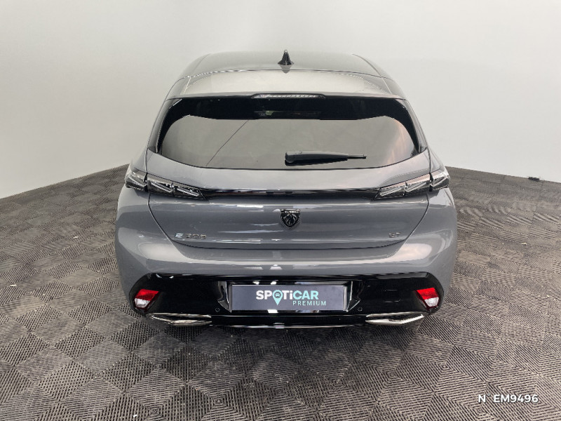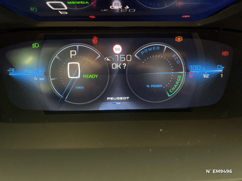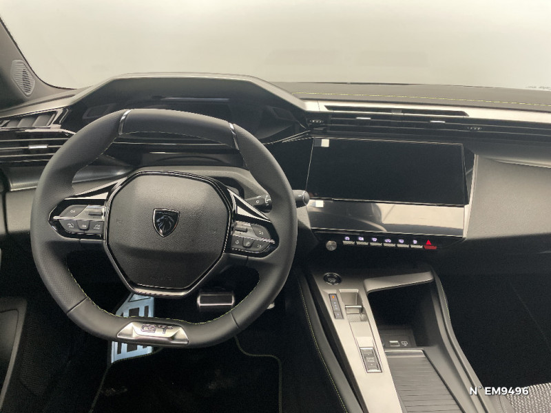 Jupe AR Noir Brillant avec décors chromés / Kit de dépannage de pneumatique : compresseur 12 volts, flacon de produit de colmatage, anneau de remorquage, deux cales de roue, manivelle de frein de stationnement électrique / Lécheurs de vitres Noir Brillant / Lève-vitres électriques AV/ AR et séquentiels avec anti-pincement / Monogramme électrique E308 sur volet de coffre / Navigation connectée / Pack Drive Assist / Pack Drive Assist + Rear warning / Pack Safety Plus / Pare-brise teinté feuilleté acoustique / Pédalier Sport aluminium et repose pied en aluminium / PEUGEOT Connect SOS & Assistance / Peugeot i-Cockpit 3D avec combiné d'instrumentation numérique personnalisable / Planche de bord avec jonc transversal chromé, décor Alu et surpiqûres Vert / Bandeau entre feux AR Noir brillant / Câble électrique mode 3 triphasé 22 kW / Calandre AV spécifique Noir verni avec inserts chromés et écopes Noir Brillant / Capacité batterie 54kWh / Ceintures de sécurité AR 3 points à enrouleur (x3) avec prétensionneurs et limiteurs d'effort aux places latérales / Ceintures de sécurité AV 3 points à enrouleur, avec prétensionneurs et limiteurs d'effort / Chargeur embarqué 11 kW triphasé / Ciel de pavillon noir / Commutation automatique des feux de route / Décor Alu sur panneaux de porte / Accès et démarrage mains libres / Accoudoir central AV avec compartiment de rangement / Air Quality System / Airbags frontaux conducteur et passager adaptatifs (passager neutralisable par clé), airbags latéraux conducteur et passager AV.airbags rideaux de tête aux places AV/AR / Alerte active de franchissement involontaire de ligne et bas côté / Alerte attention conducteur / Détection de sous gonflage / Pré-conditionnement thermique via MyPeugeot ou l'écran central / Projecteurs Peugeot Matrix LED / Réglage lombaire du siège conducteur / Rétroviseur intérieur photosensible sans cadre / Rétroviseurs extérieurs avec éclairage d'accueil à LED et témoins de surveillance d'angles morts / Rétroviseurs extérieurs électriques, dégivrants et rabattables électriquement, avec répétiteurs de feux clignotants à LED / Sélecteur mode de conduite Eco/Normal ou Sport / Seuils de porte AV aluminium / Smart Multidrive: personnalisation du combiné et éclairage d'ambiance LED intérieur associés aux modes de conduite / Surtapis AV/AR / Trappe à ski (Rang 2) / Trip planner via MyPeugeot / Vitres latérales AR et lunette AR surteintées / Driver Sport Pack / Eclairage d'ambiance (8 couleurs) / Elargisseurs de pare chocs AV et de bas de caisse latéraux / ESP avec fonction Hill Assist (Aide au démarrage en pente) / Essuie-vitre AV à déclenchement automatique / Feux AR spécifiques avec allumage dynamique griffe à griffe / Feux diurnes à LED sous projecteurs nouvelle signature Peugeot / Diffuseurs d'air aux places AR / Fonction Mirror Screen (Apple CarPlay/Android Auto) sans fil / Frein de stationnement électrique / Volant Cuir chauffant / 2 prises USB-C à l'AR / 2 prises USB-C à l'AV / 2 télécommandes 3 boutons / 4 poignées de maintien (2 à l'AV et 2 à l'AR) / Garnissage tri-matières TEP/Alcantara Fraxx Knit, surpiqûres Vert