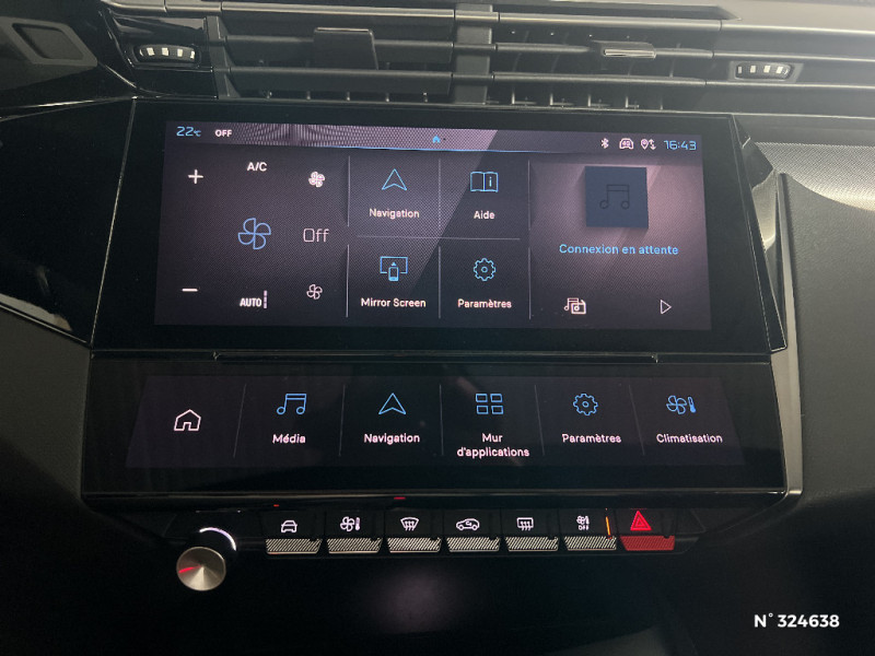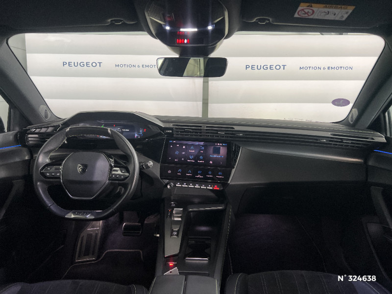 Ciel de pavillon noir / Commutation automatique des feux de route / Décor Alu sur panneaux de porte / Détection de sous gonflage / Diffuseurs d'air aux places AR / Driver Sport Pack / Driver Sport Pack - Personnalisation du combiné spécifique - Sonorité du moteur amplifiée et plus sportive (désactivable) / Eclairage d'ambiance (8 couleurs) / Elargisseurs de pare chocs AV et de bas de caisse latéraux / ESP avec fonction Hill Assist (Aide au démarrage en pente) / Essuie-vitre AV à déclenchement automatique / Feux AR spécifiques avec allumage dynamique griffe à griffe / Feux diurnes à LED sous projecteurs nouvelle signature Peugeot / Fonction Mirror Screen (Apple CarPlay/Android Auto) sans fil / Frein de stationnement électrique / Garnissage tri-matières TEP/Alcantara Fraxx Knit, surpiqûres Vert / Garnissage tri-matières TEP/Tissu New Belomka / Jantes alliage 18" Kamakura diamantées / Jupe AR Noir Brillant avec décors chromés / Kit de dépannage de pneumatique : compresseur 12 volts, flacon de produit de colmatage, anneau de remorquage, deux cales de roue, manivelle de frein de stationnement électrique / Lécheurs de vitres Noir Brillant / Lève-vitres électriques AV/ AR et séquentiels avec anti-pincement / Monogrammes latéraux emblème Lion / Navigation connectée / Navigation connectée avec écran central tactile 10'' et écran avec iToggles virtuels personnalisables. Reconnaissance vocale en langage naturel. / Pack Drive Assist / Pack Drive Assist + Rear warning / Pack Drive Assist - Régulateur de vitesse adaptatif avec fonction Stop&Go Maintient automatiquement la vitesse du véhicule à la vitesse de référence définie par le conducteur, et ajuste automatiquement la vitesse du véhicule pour garder une distance de sécurité avec le véhicule qui précède, conformément au réglage sélectionné par le conducteur. Maintient et ajuste la vitesse jusqu'à l'arrêt. Le redémarrage du véhicule est automatique si l'arrêt a été d'une durée inférieure à 3 secondes / Pack Safety Plus / Pack Safety Plus Active Safety Brake piloté par caméra et radar / Pare-brise teinté feuilleté acoustique / Pédalier Sport aluminium et repose pied en aluminium / Pédalier Sport et repose pied en aluminium / PEUGEOT Connect SOS & Assistance / Peugeot i-Cockpit 3D avec combiné d'instrumentation numérique personnalisable / Planche de bord avec jonc transversal chromé, décor Alu et surpiqûres Vert / Planche de bord avec jonc transversal peint, décor Alu et surpiqûres Vert / Pompe à chaleur / Projecteurs Peugeot Matrix LED / Réglage lombaire du siège conducteur / Rétroviseur intérieur photosensible sans cadre / Rétroviseurs extérieurs avec éclairage d'accueil à LED et témoins de surveillance d'angles morts / Rétroviseurs extérieurs avec éclairage d'approche / Rétroviseurs extérieurs électriques, dégivrants et rabattables électriquement, avec répétiteurs de feux clignotants à LED / Sélecteur mode de conduite Eco et Sport / Seuils de porte AV aluminium / Smart Multidrive: personnalisation du combiné et éclairage d'ambiance LED intérieur associés aux modes de conduite / Surtapis AV/AR / Trappe à ski (Rang 2) / Vitres latérales AR et lunette AR surteintées / 2 prises USB-C à l'AR / 2 prises USB-C à l'AV / 2 télécommandes 3 boutons / 4 poignées de maintien / 4 poignées de maintien (2 à l'AV et 2 à l'AR) / Accès et démarrage mains libres / Accoudoir central AV avec compartiment de rangement / Air Quality System / Air Quality System (sonde de pollution, couplée à un filtre à charbon actif Haute Efficacité) / Airbags frontaux conducteur et passager adaptatifs (passager neutralisable par clé), airbags latéraux conducteur et passager AV. airbags rideaux de tête aux places AV/AR / Alerte active de franchissement involontaire de ligne et bas côté / Alerte attention conducteur / Bandeau entre feux AR Noir Brillant / Barres de toit Alu/Noir Onyx / Calandre AV spécifique Noir verni avec inserts chromés et écopes Noir Brillant / Ceintures de sécurité AR 3 points à enrouleur (x3) avec prétensionneurs et limiteurs d'effort aux places latérales / Ceintures de sécurité AV 3 points à enrouleur, avec prétensionneurs et limiteurs d'effort