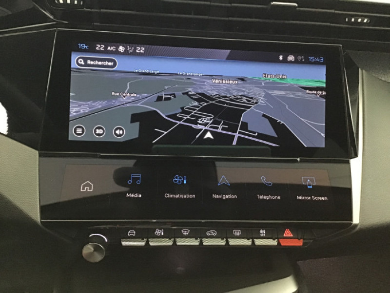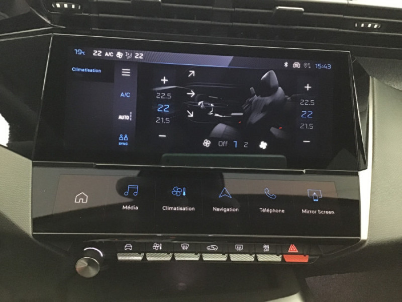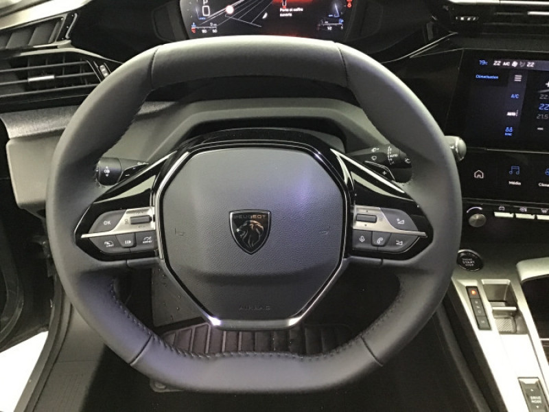 2 prises USB-C a l'AR / 2 prises USB-C a l'AV / 2 télécommandes 3 boutons / 4 poignees de maintien / Accoudoir central AV avec compartiment de rangement / Air Quality System / Airbags frontaux conducteur et passager adaptatifs (passager neutralisable par cle), airbags / Alerte active de franchissement involontaire de ligne et bas cote / Alerte Attention Conducteur / Bandeau entre feux AR noir brillant / Calandre AV Noir avec inserts chromes et ecopes Noir / Ciel de pavillon clair / Commutation automatique des feux de route / Détection de sous gonflage / Diffuseurs d'air AR / ESP avec fonction Hill Assist (Aide au demarrage en pente) / Essuie-vitre AV à déclenchement automatique / Feux diurnes a LED sous projecteurs nouvelle signature Peugeot / Fonction Mirror Screen (Apple CarPlay/Android Auto) sans fil / Frein de stationnement électrique / Garnissage tri-matieres TEP/Tissu Falgo, surpiqures Bleu / Jantes alliage 17'' Calgary diamantees / Jupe AR Noir Brillant avec decors chromes / Kit de depannage de pneumatique : compresseur 12 volts, flacon de produit de colmatage, anneau de / Lecheurs de vitres Noir Brillant / Leve-vitres electriques AV et AR et sequentiels avec anti-pincement / Pack Drive Assist - Regulateur de vitesse adaptatif avec fonction Stop&Go / Pack Safety Plus - Active Safety Brake pilote par camera et radar / Pare-brise teinte feuillete acoustique / Peugeot i-Cockpit avec combine d'instrumentation numerique 10'' personnalisable / Planche de bord avec jonc transversal peint et decor textile Texa / Réglage lombaire du siège conducteur / Rétroviseur intérieur photosensible / Retroviseurs exterieurs avec eclairage d'approche / Selecteur mode de conduite Eco et Sport / Vitres latérales AR et lunette AR surteintées