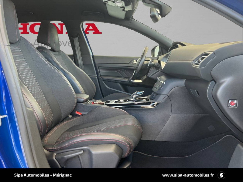 Accès et démarrage mains libres / Air conditionné automatique bi-zone avec filtre à charbon actifs / Alerte visuelle et sonore de débouclage des ceintures de sécurité AR / Alerte visuelle et sonore de non bouclage et de débouclage des ceintures de sécurité AV / Allumage automatique des feux de détresse en cas de forte décélération ou de choc / Appuis-tête à sécurité optimisée réglables en hauteur sur les sièges conducteur et passager AV ainsi que sur les places latérales AR / Avertisseur de temps de conduite / Badge GT Line sur les ailes AV et le pare-chocs AR / Béquet AR couleur caisse / Boitiers de rétroviseurs extérieurs Noir Perla Nera / Bouclier AR intégrant des doubles canules d'échappement de style / Bouclier AV dynamique / Calandre avec jonc périphérique et damiers chromés, intégrant le lion PEUGEOT / Ceintures de sécurité AR centrales sans limiteur d'effort, 3 points / Ceintures de sécurité AR latérales avec limiteur d'effort / Ceintures de sécurité AV à enrouleur pyrotechnique / Clignotants AV à LEDs avec défilement dynamique / Combiné "Haut de gamme" avec matrice couleur 3.5" / Commande de verrouillage à distance (2 plips) / Contrôle dynamique de stabilité ESP avec antipatinage électronique ASR / Décors intérieurs spécifiques avec surpiqûres rouges / Détection de sous-gonflage indirecte / Diffuseur AR noir laqué / Ecran Tactile capacitif 9,7", radio, Bluetooth, USB, 6HP / Enjoliveurs latéraux de bas de caisse / Entourage de vitres chromés / Essuie-vitre AR avec enclenchement automatique en marche AR / Feux AR à LED avec masque noir / Fonction Mirror Screen (Apple Carplay / Android Auto / MirrorLink) / Frein de stationnement électrique / Garnissage TEP/Tissu OXFORD Mistral/Rouge / Habitacle et ciel de pavillon anthracite / Jantes alliage 17" diamantées RUBIS / Kit de dépannage de pneumatique / Lève-vitres AR électriques et séquentiels avec antipincement / Lève-vitres AV électriques et séquentiels avec antipincement / Pack Look extérieur / Pack Safety / Pack Visibilité / Pédalier et repose-pied conducteur en aluminium / Peinture opaque / PEUGEOT CONNECT / PEUGEOT i-Cockpit / Plafonniers AV et AR à LED / Poches aumonières au dos des sièges AV / Pommeau de levier de vitesses et de frein à main en cuir / Prise 12V supplémentaire / Prise USB en rang 2 / Projecteurs 'Peugeot Full LED Technology' / Rangement dans le coffre, spécifique pour triangle de pré-signalisation et trousse de secours / Sécurité enfants électrique des vitres AR / Seuils de porte aluminium / Siège conducteur mécanique avec réglage lombaire / Siège passager AV mécanique avec réglage lombaire / Siège passager AV mécanique réglable en hauteur / Surpiqûres Rouges / Surtapis AV/AR avec surpiqûres rouges / Suspension sport assiette abaissé de 10mm / Système d'antiblocage des roues ABS avec répartiteur électronique de freinage REF et assistance au freinage d'urgence AFU / Visiopark 1 / Vitres latérales AR et lunette AR surteintées / Volant spécifique, Cuir pleine fleur avec surpiqûres rouges