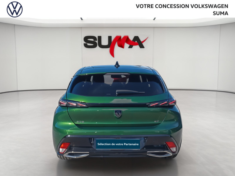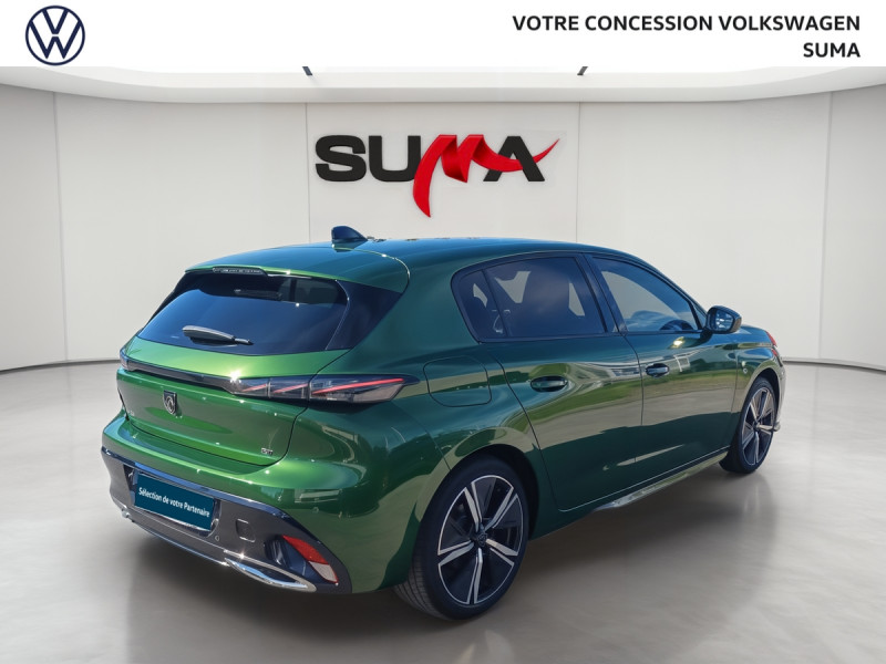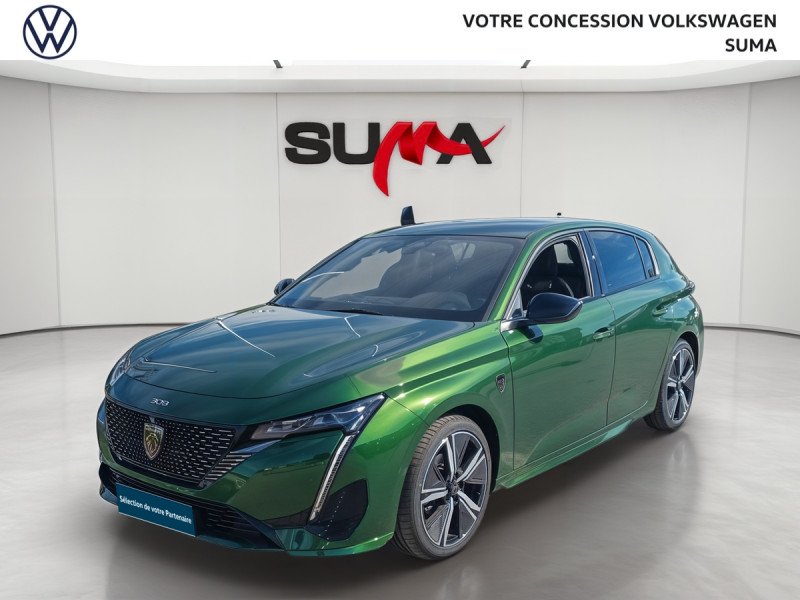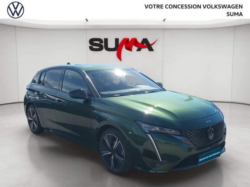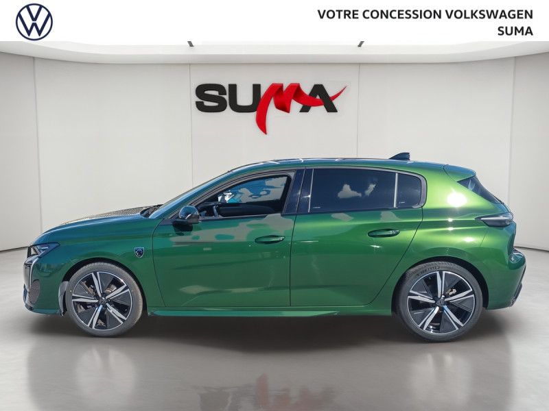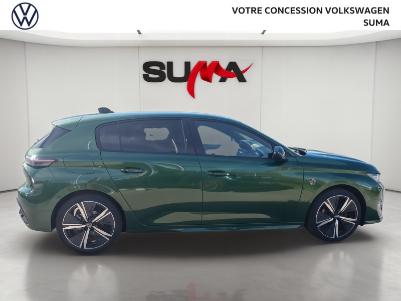 Commutation automatique des feux de route / Driver Sport Pack / Personnalisation du combiné spécifique / Sonorité du moteur amplifiée et plus sportive (désactivable) / Décor Alu sur panneaux de porte / Essuie-vitre AV à déclenchement automatique / Frein de stationnement électrique / Jantes alliage 18 Kamakura diamantées / Kit de dépannage de pneumatique : compresseur 12 volts / flacon de produit de colmatage / anneau de remorquage / deux cales de roue / manivelle de frein de stationnement électrique / Navigation connectée avec écran central tactile 10'' et écran avec i-Toggles virtuels personnalisables. Reconnaissance vocale en langage naturel. / Pack Drive Assist / Pack Safety Plus / Pack Drive Assist + Rear warning / Surveillance d'angles morts longue portée (Lane Change Assit) / Alerte de trafic AR transversal (Rear Cross Traffic Alert) / Pack Safety Plus / Active Safety Brake piloté par caméra et radar / Planche de bord avec jonc transversal chromé / décor Alu et surpiqûres Vert / Projecteurs Peugeot Matrix LED / Pédalier Sport aluminium et repose pied en aluminium / Rétroviseurs extérieurs avec éclairage d'accueil à LED et témoins de surveillance d'angles morts / dégivrants et rabattables électriquement avec répétiteurs de feux clignotants à LED / Seuils de porte AV aluminium / Volant Cuir chauffant / 2 prises USB-C à l'AR / 2 prises USB-C à l'AV / 2 télécommandes 3 boutons / 4 poignées de maintien (2 à l'AV et 2 à l'AR) / Accès et démarrage mains libres / Air Quality System (sonde de pollution / couplée à un filtre à charbon actif Haute Efficacité) / Airbags frontaux conducteur et passager adaptatifs (passager neutralisable par clé) / Alerte active de franchissement involontaire de ligne et bas côté / Alerte attention conducteur / Bandeau entre feux AR noir brillant / Calandre AV spécifique Noir verni avec inserts chromés et écopes Noir Brillant / Ceintures de sécurité AR 3 points à enrouleur (x3) avec prétensionneurs et limiteurs d'effort aux places latérales / Ceintures de sécurité AV 3 points à enrouleur / réglables en hauteur avec prétensionneurs et limiteurs d'effort / Ciel de pavillon noir / Clean cabin avec capteur de particules dans l'habitacle / Coques de rétroviseurs extérieurs Noir Brillant / Diffuseurs d'air AR / Détection de sous gonflage / Elargisseurs de pare chocs AV et de bas de caisse latéraux / Feux AR spécifiques avec allumage dynamique griffe à griffe / Fonction Mirror Screen (Apple CarPlay/Android Auto) sans fil / Jupe AR Noir Brillant avec décors chromés / Lève-vitres électriques AV et AR et séquentiels avec anti-pincement / Lécheurs de vitres Noir Brillant / Monogrammes latéraux emblème Lion / Pare-brise feuilleté acoustique / PEUGEOT Connect SOS & Assistance / Peugeot i-Cockpit 3D avec combiné d'instrumentation numérique personnalisable / Réglage lombaire du siège conducteur / Rétroviseur intérieur photosensible sans cadre / Siège passager réglable en hauteur / Surtapis AV et AR / Sélecteur mode de conduite Eco et Sport / Trappe à skis / Vitres latérales AR et lunette AR surteintées