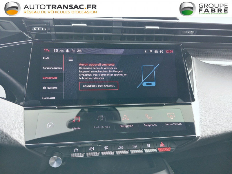 Commutation automatique des feux de route / Driver Sport Pack / Décor Alu sur panneaux de porte / ESP avec fonction Hill Assist (Aide au démarrage en pente) / Essuie-vitre AV à déclenchement automatique / Feux diurnes à LED sous projecteurs nouvelle signature Peugeot / Frein de stationnement électrique / Jantes alliage 18" Kamakura diamantées / Kit de dépannage de pneumatique : compresseur 12 volts, flacon de produit de colmatage, anneau de remorquage, deux cales de roue, manivelle de frein de stationnement électrique / Navigation connectée avec écran central tactile 10'' et écran avec i-Toggles virtuels personnalisables. Reconnaissance vocale en langage naturel. / Pack Drive Assist / Pack Drive Assist + Rear warning / Pack Safety Plus / Planche de bord avec jonc transversal chromé, décor Alu et surpiqûres Vert / Projecteurs Peugeot Matrix LED / Pédalier Sport aluminium et repose pied en aluminium / Rétroviseurs extérieurs avec éclairage d'accueil à LED et témoins de surveillance d'angles morts / Rétroviseurs extérieurs électriques, dégivrants et rabattables électriquement, avec répétiteurs de feux clignotants à LED / Seuils de porte AV aluminium / Smart Multidrive: personnalisation du combiné et éclairage d'ambiance LED intérieur associés aux modes de conduite / Volant Cuir chauffant / 2 prises USB-C à l'AR / 2 prises USB-C à l'AV / 2 télécommandes 3 boutons / 4 poignées de maintien (2 à l'AV et 2 à l'AR) / Accoudoir central AV avec compartiment de rangement / Accès et démarrage mains libres / Air Quality System (sonde de pollution, couplée à un filtre à charbon actif Haute Efficacité) / Airbags frontaux conducteur et passager adaptatifs (passager neutralisable par clé), airbags latéraux conducteur et passager AV. airbags rideaux de tête aux places AV/AR / Alerte active de franchissement involontaire de ligne et bas côté / Alerte attention conducteur / Bandeau entre feux AR Noir Brillant / Calandre AV spécifique Noir verni avec inserts chromés et écopes Noir Brillant / Ceintures de sécurité AR 3 points à enrouleur (x3) avec prétensionneurs et limiteurs d'effort aux places latérales / Ceintures de sécurité AV 3 points à enrouleur, avec prétensionneurs et limiteurs d'effort / Ciel de pavillon noir / Clean cabin avec capteur de particules dans l'habitacle / Diffuseurs d'air aux places AR / Détection de sous gonflage / Elargisseurs de pare chocs AV et de bas de caisse latéraux / Feux AR spécifiques avec allumage dynamique griffe à griffe / Fonction Mirror Screen (Apple CarPlay/Android Auto) sans fil / Garnissage tri-matières TEP/Alcantara Fraxx Knit / Jupe AR Noir Brillant avec décors chromés / Lève-vitres électriques AV/ AR et séquentiels avec anti-pincement / Lécheurs de vitres Noir Brillant / Monogrammes latéraux emblème Lion / Pare-brise feuilleté acoustique / PEUGEOT Connect SOS & Assistance / Peugeot i-Cockpit 3D avec combiné d'instrumentation numérique personnalisable / Réglage lombaire du siège conducteur / Rétroviseur intérieur photosensible sans cadre / Surtapis AV/AR / Sélecteur mode de conduite Eco et Sport / Teinte métallisée Vert Olivine / Trappe à ski (Rang 2) / Vitres latérales AR et lunette AR surteintées