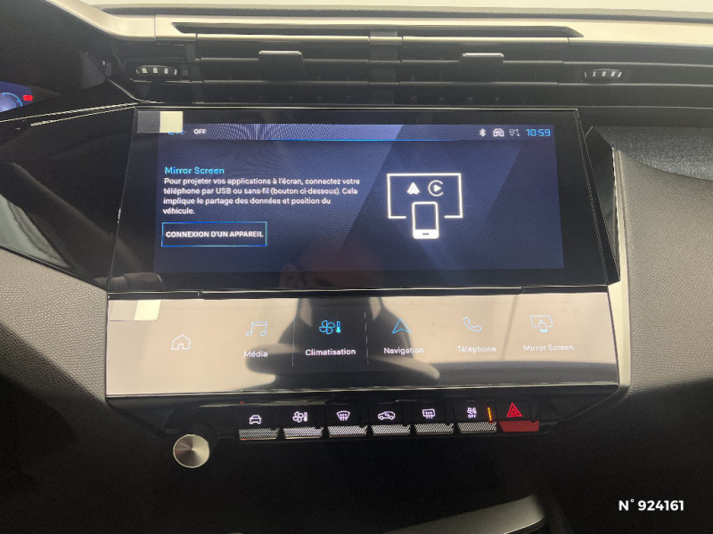 Planche de bord avec jonc transversal peint et décor textile Texa / Ceintures de sécurité AV 3 points à enrouleur, avec prétensionneurs et limiteurs d'effort / Boîte de vitesse automatique, séquentielle (6 rapports) / Rétroviseurs extérieurs électriques, dégivrants et rabattables électriquement avec répétiteurs de feux clignotants à LED / Détection de sous gonflage / Intervalle de maintenance 25 000 km ou 1 an / Lève-vitres électriques AV et AR et séquentiels avec anti-pincement / Vitres latérales AR et lunette AR surteintées / Diffuseurs d'air AR / Alerte active de franchissement involontaire de ligne et bas côté / Jantes alliage 17" Halong diamantées / Fonction Mirror Screen (Apple CarPlay/Android Auto) sans fil / Essuie-vitre AV à déclenchement automatique / Rétroviseur intérieur photosensible / Lécheurs de vitres Noir Brillant / 4 poignées de maintien / Pack Drive Assist - Régulateur de vitesse adaptatif avec fonction Stop&Go Maintient automatiquement la vitesse du véhicule à la vitesse de référence définie par le conducteur, et ajuste automatiquement la vitesse du véhicule pour garder une distance de sécurité avec le véhicule qui précède, conformément au réglage sélectionné par le conducteur. Maintient et ajuste la vitesse jusqu'à l'arrêt Le redémarrage du véhicule est automatique si l'arrêt a été d'une durée inférieure à 3 secondes / Feux diurnes à LED sous projecteurs nouvelle signature Peugeot / 2 prises USB-C à l'AR / Pare-brise teinté feuilleté acoustique / 2 télécommandes 3 boutons / Sélecteur mode de conduite Eco et Sport / Calandre AV Noir avec inserts chromés et écopes Noir / Jupe AR Noir Brillant avec décors chromés / Ciel de pavillon clair / Peugeot i-Cockpit avec combiné d'instrumentation numérique 10'' personnalisable / Ceintures de sécurité AR 3 points à enrouleur (x3) avec prétensionneurs et limiteurs d'effort aux places latérales / Garnissage tri-matières TEP/Tissu Falgo, surpiqûres Bleu / Pack Safety Plus - Active Safety Brake piloté par caméra et radar / Commutation automatique des feux de route / Accoudoir central AV avec compartiment de rangement / Frein de stationnement électrique / Alerte attention conducteur / Réglage lombaire du siège conducteur / ESP avec fonction Hill Assist (Aide au démarrage en pente) / Bandeau entre feux AR noir brillant / 2 prises USB-C à l'AV / Airbags frontaux conducteur et passager adaptatifs (passager neutralisable par clé), airbags latéraux conducteur et passager AV, airbags rideaux de tête aux places AV et AR