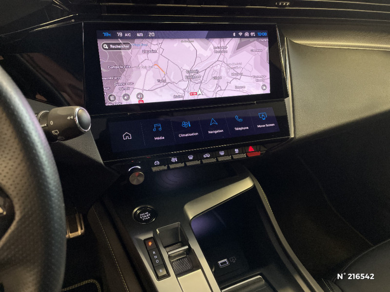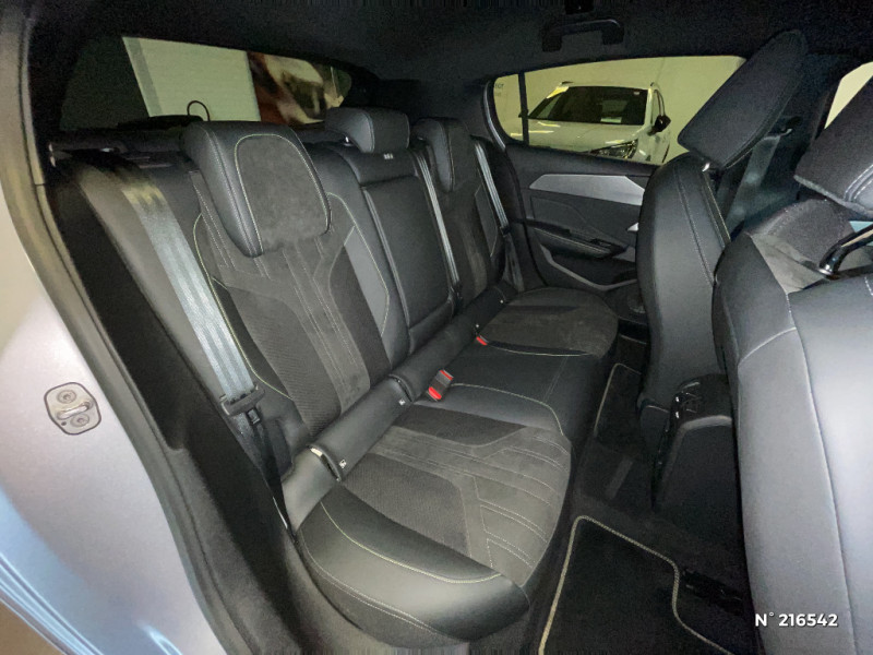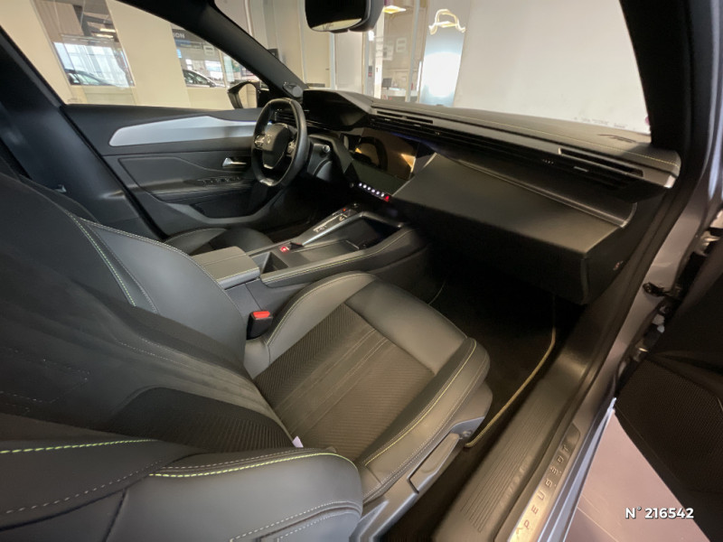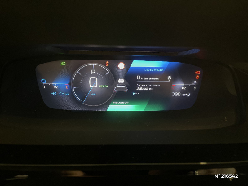 Réglage lombaire du siège conducteur / Trappe à ski (Rang 2) / Accoudoir central AV avec compartiment de rangement / Alerte attention conducteur / Commutation automatique des feux de route / Pare-brise feuilleté acoustique / Pédalier Sport aluminium et repose pied en aluminium / Ecran tactile capacitif 10" et 2 prises USB AV / Pré-conditionnement thermique / Alerte active de franchissement involontaire de ligne et bas côté / Seuils de porte AV aluminium / ESP avec fonction Hill Assist (Aide au démarrage en pente) / Sélecteur de modes (Electric, Hybrid, Sport) / Air Quality System (sonde de pollution, couplée à un filtre à charbon actif Haute Efficacité) / Bandeau entre feux AR noir brillant / Kit de dépannage de pneumatique : compresseur 12 volts, flacon de produit de colmatage, anneau de remorquage, deux cales de roue, manivelle de frein de stationnement électrique / Lécheurs de vitres latérales Noir Brillant / Garnissage tri-matières TEP/Alcantara Fraxx Knit / Jupe AR Noir Brillant avec décors chromés / Rétroviseurs extérieurs avec éclairage d'approche / Diffuseurs d'air AR / Direction assistée électrique, colonne de direction réglable en hauteur et profondeur (mécanique) / Accès et démarrage mains libres / Rétroviseur intérieur photosensible sans cadre, avec témoin lumineux de roulage en mode Electric / Alerte de trafic AR transversal (Rear Cross Traffic Alert) / 2 télécommandes 3 boutons / Lève-vitres électriques AV et AR et séquentiels avec anti-pincement / Rétroviseurs extérieurs électriques, dégivrants et rabattables électriquement avec répétiteurs de feux clignotants à LED / Chargeur embarqué 3,7 kW / Câble de recharge mode 2 (8A, 1,8 kW, pour prise domestique standard) / Monogrammes latéraux Hybrid / Vitres AV feuilletées acoustiques / Fonction "Mirror Screen" (Apple CarPlay / Android Auto ) / Navigation connectée avec i-Toggles / Surveillance d'angles morts longue portée (Lane Change Assit) / Pré-conditionnement thermique via MyPeugeot ou l'écran central / Pack Safety Plus / Pack Drive Assist / Pack Drive Assist + Rear warning / Pack Drive Assist Plus / VisioPark 360 / Siège conducteur AGR électrique à mémoire (longueur, inclinaison, hauteur, site, lombaire pneumatique et nez de coussin manuel). Siège passager à réglage mécanique en hauteur et lombaire pneumatique. Sièges AV chauffants, massants / Volant Cuir fleur chauffant / Système Hi Fi Premium FOCAL 10 HP / PEUGEOT Connect SOS & Assistance / 2 prises USB-C à l'AR / Fonction Mirror Screen (Apple CarPlay/Android Auto) sans fil / Capacité batterie 12,4 kWh / Puissance batterie 100 kW / Rear Warning / Navigation connectée avec écran central tactile 10'' et écran avec i-Toggles virtuels personnalisables. Reconnaissance vocale en langage naturel. / Volant Cuir chauffant / Détection de sous gonflage / Surtapis AV et AR / Frein de stationnement électrique / Airbags frontaux conducteur et passager adaptatifs (passager neutralisable par clé), airbags latéraux conducteur et passager AV, airbags rideaux de tête aux places AV et AR / Trappe à skis / Ceintures de sécurité AV 3 points à enrouleur, réglables en hauteur avec prétensionneurs et limiteurs d'effort / Ceintures de sécurité AR 3 points à enrouleur (x3) avec prétensionneurs et limiteurs d'effort aux places latérales / Fixations pour 2 sièges enfants ISOFIX, aux places AR, inclus Top Tether / Rétroviseur intérieur à réglage jour/nuit manuel / Vitres latérales AR et lunette AR surteintées / 4 poignées de maintien (2 à l'AV et 2 à l'AR) / Essuie-vitre AV à déclenchement automatique / Ceintures de sécurité AV 3 points à enrouleur, avec prétensionneurs et limiteurs d'effort / Driver Sport Pack / Ciel de pavillon noir / 2 prises USB pour les passagers AR / Smart Multidrive: personnalisation du combiné et éclairage d'ambiance LED intérieur associés aux modes de conduite / Projecteurs Peugeot Matrix LED / Feux AR spécifiques avec allumage dynamique griffe à griffe / Calandre AV spécifique Noir verni avec inserts chromés et écopes Noir Brillant / Elargisseurs de pare chocs AV et de bas de caisse latéraux / Monogrammes latéraux emblème Lion / Planche de bord avec jonc transversal chromé, décor Alu et surpiqûres Vert / Décor Alu sur panneaux de porte / Sonorité du moteur amplifiée et plus sportive (désactivable) / Peugeot i-Cockpit 3D avec combiné d'instrumentation numérique personnalisable / Clean Cabin avec capteur de particules dans l'habitacle / Jantes alliage 18" Portland diamantées et vernies en Noir / Feux diurnes à LED sous projecteurs nouvelle signature Peugeot / Eclairage d'ambiance (8 couleurs) / 2 prises USB-C à l'AV / Lécheurs de vitres Noir Brillant