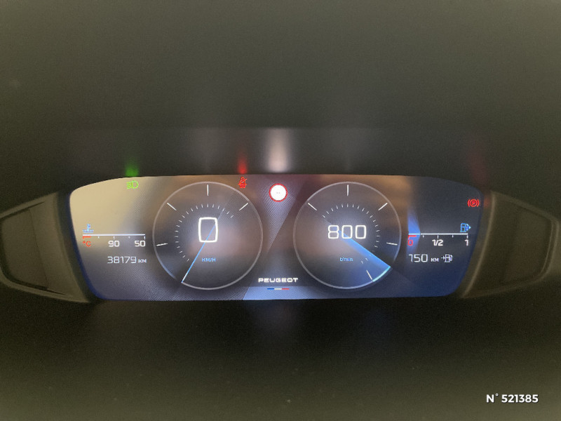 Alerte attention conducteur / Commutation automatique des feux de route / Jantes alliage 17" Halong diamantées / Pare-brise feuilleté acoustique / Rétroviseur intérieur photosensible sans cadre / Bandeau entre feux AR noir brillant / Rear Warning / Frein de stationnement électrique / Ciel de pavillon clair / 4 poignées de maintien (2 à l'AV et 2 à l'AR) / Calandre AV Noir avec inserts chromés et écopes Noir / Jupe AR Noir Brillant avec décors chromés / Planche de bord avec jonc transversal chromé et décor textile Texa / Garnissage tri-matières TEP/Tissu Falgo / Rétroviseurs extérieurs avec éclairage d'approche / ESP avec fonction Hill Assist (Aide au démarrage en pente) / Réglage lombaire du siège conducteur / Trappe à ski (Rang 2) / Accoudoir central AV avec compartiment de rangement / Lécheurs de vitres Noir Brillant / Garnissage tri-matières TEP/Tissu Falgo, surpiqûres Bleu / Navigation connectée / 2 prises USB-C à l'AV / Pare-brise teinté feuilleté acoustique / Trappe à skis / Navigation connectée avec écran central tactile 10'' et écran avec i-Toggles virtuels personnalisables. Reconnaissance vocale en langage naturel. / Kit de dépannage de pneumatique : compresseur 12 volts, flacon de produit de colmatage, anneau de remorquage, deux cales de roue, manivelle de frein de stationnement électrique / Essuie-vitre AV à déclenchement automatique / Ceintures de sécurité AV 3 points à enrouleur, réglables en hauteur avec prétensionneurs et limiteurs d'effort / Ceintures de sécurité AR 3 points à enrouleur (x3) avec prétensionneurs et limiteurs d'effort aux places latérales / 2 prises USB-C à l'AR / Fonction Mirror Screen (Apple CarPlay/Android Auto) sans fil / Ceintures de sécurité AV 3 points à enrouleur, avec prétensionneurs et limiteurs d'effort / Vitres latérales AR et lunette AR surteintées / Pack Safety Plus / Pack Drive Assist / Air Quality System (sonde de pollution, couplée à un filtre à charbon actif Haute Efficacité) / Pack Drive Assist + Rear warning / Lève-vitres électriques AV et AR et séquentiels avec anti-pincement / Détection de sous gonflage / PEUGEOT Connect SOS & Assistance / Surveillance d'angles morts longue portée (Lane Change Assit) / Alerte de trafic AR transversal (Rear Cross Traffic Alert) / 2 télécommandes 3 boutons / Airbags frontaux conducteur et passager adaptatifs (passager neutralisable par clé), airbags latéraux conducteur et passager AV, airbags rideaux de tête aux places AV et AR / Rétroviseurs extérieurs électriques, dégivrants et rabattables électriquement avec répétiteurs de feux clignotants à LED / Feux diurnes à LED sous projecteurs nouvelle signature Peugeot / Accès et démarrage mains libres / Alerte active de franchissement involontaire de ligne et bas côté / Peugeot i-Cockpit avec combiné d'instrumentation numérique 10'' personnalisable / Diffuseurs d'air AR / Smart Multidrive: personnalisation du combiné et éclairage d'ambiance LED intérieur associés aux modes de conduite