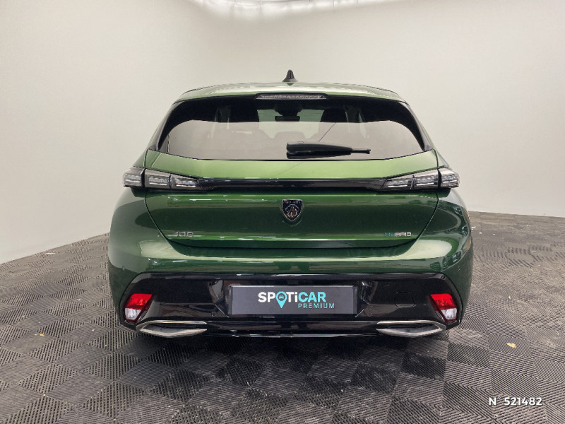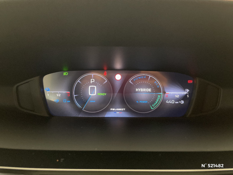 Trappe à ski (Rang 2) / Accoudoir central AV avec compartiment de rangement / ESP avec fonction Hill Assist (Aide au démarrage en pente) / Pare-brise teinté feuilleté acoustique / Navigation connectée / Lécheurs de vitres Noir Brillant / Garnissage tri-matières TEP/Tissu Falgo, surpiqûres Bleu / Rétroviseur intérieur photosensible / Bandeau entre feux AR noir brillant / Câble de recharge mode 2 (10 A, 2,3 kW, pour prise domestique standard) / Planche de bord avec jonc transversal peint et décor textile Texa / Pré-conditionnement thermique via MyPeugeot ou l'écran central / Capacité batterie 12,4 kWh / Puissance batterie 100 kW / Frein de stationnement électrique / 2 télécommandes 3 boutons / Lève-vitres électriques AV et AR et séquentiels avec anti-pincement / Airbags frontaux conducteur et passager adaptatifs (passager neutralisable par clé), airbags latéraux conducteur et passager AV, airbags rideaux de tête aux places AV et AR / PEUGEOT Connect SOS & Assistance / Détection de sous gonflage / Rétroviseur intérieur photosensible sans cadre, avec témoin lumineux de roulage en mode Electric / Sélecteur de modes (Electric, Hybrid, Sport) / Diffuseurs d'air AR / Smart Multidrive: personnalisation du combiné et éclairage d'ambiance LED intérieur associés aux modes de conduite / Alerte active de franchissement involontaire de ligne et bas côté / 2 prises USB-C à l'AV / Alerte attention conducteur / Commutation automatique des feux de route / Pare-brise feuilleté acoustique / Navigation connectée avec écran central tactile 10'' et écran avec i-Toggles virtuels personnalisables. Reconnaissance vocale en langage naturel. / 2 prises USB-C à l'AR / Kit de dépannage de pneumatique : compresseur 12 volts, flacon de produit de colmatage, anneau de remorquage, deux cales de roue, manivelle de frein de stationnement électrique / Pack Safety Plus / Air Quality System (sonde de pollution, couplée à un filtre à charbon actif Haute Efficacité) / Fonction Mirror Screen (Apple CarPlay/Android Auto) sans fil / Vitres latérales AR et lunette AR surteintées / Ceintures de sécurité AR 3 points à enrouleur (x3) avec prétensionneurs et limiteurs d'effort aux places latérales / Ceintures de sécurité AV 3 points à enrouleur, avec prétensionneurs et limiteurs d'effort / Essuie-vitre AV à déclenchement automatique / Rétroviseurs extérieurs électriques, dégivrants et rabattables électriquement avec répétiteurs de feux clignotants à LED / Feux diurnes à LED sous projecteurs nouvelle signature Peugeot / Garnissage tri-matières TEP/Tissu Falgo / Peugeot i-Cockpit avec combiné d'instrumentation numérique 10'' personnalisable / Ciel de pavillon clair / 4 poignées de maintien (2 à l'AV et 2 à l'AR) / Chargeur embarqué 3,7 kW / Câble de recharge mode 2 (8A, 1,8 kW, pour prise domestique standard) / Monogrammes latéraux Hybrid / Jantes alliage 17'' Calgary diamantées / Calandre AV Noir avec inserts chromés et écopes Noir / Jupe AR Noir Brillant avec décors chromés / Planche de bord avec jonc transversal chromé et décor textile Texa / Rétroviseurs extérieurs avec éclairage d'approche / Réglage lombaire du siège conducteur