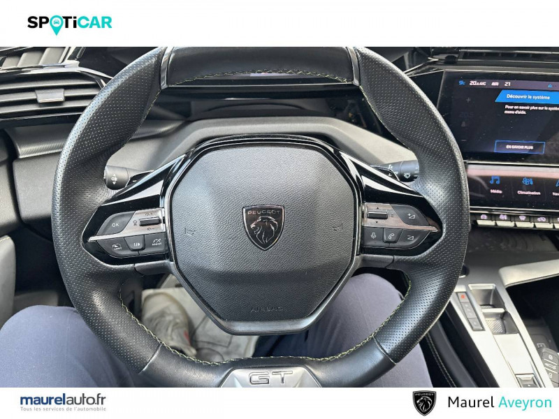 Commutation automatique des feux de route / Driver Sport Pack / Décor Alu sur panneaux de porte / ESP avec fonction Hill Assist (Aide au démarrage en pente) / Essuie-vitre AV à déclenchement automatique / Feux diurnes à LED sous projecteurs nouvelle signature Peugeot / Frein de stationnement électrique / Jantes alliage 18" Kamakura diamantées / Kit de dépannage de pneumatique : compresseur 12 volts, flacon de produit de colmatage, anneau de remorquage, deux cales de roue, manivelle de frein de stationnement électrique / Navigation connectée / Pack Drive Assist / Pack Drive Assist + Rear warning / Pack Safety Plus / Planche de bord avec jonc transversal chromé, décor Alu et surpiqûres Vert / Projecteurs Peugeot Matrix LED / Pédalier Sport aluminium et repose pied en aluminium / Rétroviseurs extérieurs avec éclairage d'accueil à LED et témoins de surveillance d'angles morts / Rétroviseurs extérieurs électriques, dégivrants et rabattables électriquement, avec répétiteurs de feux clignotants à LED / Seuils de porte AV aluminium / Smart Multidrive: personnalisation du combiné et éclairage d'ambiance LED intérieur associés aux modes de conduite / 2 prises USB-C à l'AR / 2 prises USB-C à l'AV / 2 télécommandes 3 boutons / 4 poignées de maintien (2 à l'AV et 2 à l'AR) / Accoudoir central AV avec compartiment de rangement / Accès et démarrage mains libres / Air Quality System / Airbags frontaux conducteur et passager adaptatifs (passager neutralisable par clé), airbags latéraux conducteur et passager AV.airbags rideaux de tête aux places AV/AR / Alerte active de franchissement involontaire de ligne et bas côté / Alerte attention conducteur / Bandeau entre feux AR Noir brillant / Calandre AV spécifique Noir verni avec inserts chromés et écopes Noir Brillant / Capacité batterie 12,4kWh / Ceintures de sécurité AR 3 points à enrouleur (x3) avec prétensionneurs et limiteurs d'effort aux places latérales / Ceintures de sécurité AV 3 points à enrouleur, avec prétensionneurs et limiteurs d'effort / Chargeur embarqué 3,7kW / Ciel de pavillon noir / Câble de recharge mode 2 (10A, 2,3kW) pour prise domestique standard / Diffuseurs d'air aux places AR / Détection de sous gonflage / Eclairage d'ambiance (8 couleurs) / Elargisseurs de pare chocs AV et de bas de caisse latéraux / Feux AR spécifiques avec allumage dynamique griffe à griffe / Fonction Mirror Screen (Apple CarPlay/Android Auto) sans fil / Garnissage tri-matières TEP/Alcantara Fraxx Knit, surpiqûres Vert / Jupe AR Noir Brillant avec décors chromés / Lève-vitres électriques AV/ AR et séquentiels avec anti-pincement / Lécheurs de vitres Noir Brillant / Monogrammes latéraux Hybrid / Pare-brise teinté feuilleté acoustique / PEUGEOT Connect SOS & Assistance / Peugeot i-Cockpit 3D avec combiné d'instrumentation numérique personnalisable / Pré-conditionnement thermique via MyPeugeot ou l'écran central / Réglage lombaire du siège conducteur / Rétroviseur intérieur photosensible sans cadre / Surtapis AV/AR / Sélecteur de modes de conduite (Electric, Hybrid, Sport) / Trappe à ski (Rang 2) / Vitres latérales AR et lunette AR surteintées