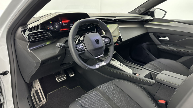 Sellerie tri-matières tissu / TEP « New Belomka » / Calandre avant spécifique Noir verni avec inserts chromés et écopes Noir Brillant / Ciel de pavillon Noir / Elargisseurs de pare-chocs avant et de bas de caisse latéraux / Feux arrière spécifiques avec allumage dynamique / Jantes alliage 18'' KAMAKURA diamantées / Projecteurs Peugeot Matrix LED / Pédalier Sport et repose-pied Alu / Seuils de portes avant en aluminium / Vitres latérales arrière et lunette arrière surteintées / Accès et démarrage mains-libres / Allumage automatique des feux de croisement et essuie-vitre / Commutation automatique des feux de route / Fonction Mirror Screen (Apple Carplay / Android Auto) sans fil / Navigation connectée (inclus Peugeot Connect&Assistance) / Peugeot i-Cockpit® avec combiné d'instrumentation numérique 10'' personnalisable / Rétroviseur intérieur photosensible / Smart Multidrive : personnalisation du combiné et éclairage d'ambiance LED / Détection de sous-gonflage / Frein de stationnement électrique / Peugeot Connect SOS & Assistance / / Véhicules équivalents: Megane - C4 - Mazda 3