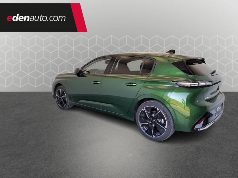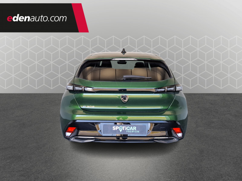 2 prises USB-C à l'AR / 2 prises USB-C à l'AV / 2 télécommandes 3 boutons / 4 poignées de maintien (2 à l'AV et 2 à l'AR) / Accoudoir central AV avec compartiment de rangement / Airbags frontaux conducteur et passager adaptatifs (passager neutralisable par clé), airbags latéraux conducteur et passager AV, airbags rideaux de tête aux places AV et AR / Air Quality System / Alerte active de franchissement involontaire de ligne et bas côté / Alerte attention conducteur / Bandeau entre feux AR noir brillant / Câble électrique mode 3 triphasé 22 kW / Calandre AV Noir avec inserts chromés et écopes Noir / Capacité batterie 54 kWh / Ceintures de sécurité AR 3 points à enrouleur (x3) avec prétensionneurs et limiteurs d'effort aux places latérales / Ceintures de sécurité AV 3 points à enrouleur, avec prétensionneurs et limiteurs d'effort / Chargeur embarqué 11 kW triphasé / Ciel de pavillon clair / Commutation automatique des feux de route / Détection de sous gonflage / Diffuseurs d'air aux places AR / ESP avec fonction Hill Assist (Aide au démarrage en pente) / Essuie-vitre AV à déclenchement automatique / Feux diurnes à LED sous projecteurs nouvelle signature Peugeot / Fonction Mirror Screen (Apple CarPlay/Android Auto) sans fil / Frein de stationnement électrique / Garnissage tri-matières TEP/Tissu Falgo, surpiqûres Bleu / Jupe AR Noir Brillant avec décors chromés / Kit de dépannage de pneumatique : compresseur 12 volts, flacon de produit de colmatage, anneau de remorquage, deux cales de roue, manivelle de frein de stationnement électrique / Lécheurs de vitres Noir Brillant / Lève-vitres électriques AV et AR et séquentiels avec anti-pincement / Monogramme électrique E308 sur volet de coffre / Navigation connectée avec écran central tactile 10'' et écran avec iToggles virtuels personnalisables. Reconnaissance vocale en langage naturel. / Pack Drive Assist / Pack Safety Plus / Pare-brise teinté feuilleté acoustique / Peugeot i-Cockpit avec combiné d'instrumentation numérique 10'' personnalisable / Planche de bord avec jonc transversal peint et décor textile Texa / Pré-conditionnement thermique via MyPeugeot ou l'écran central / Réglage lombaire du siège conducteur / Rétroviseur intérieur photosensible / Rétroviseurs extérieurs électriques, dégivrants et rabattables électriquement avec répétiteurs de feux clignotants à LED / Sélecteur mode de conduite Eco/Normal ou Sport / Trappe à ski (Rang 2) / Vitres latérales AR et lunette AR surteintées / Volant chauffant