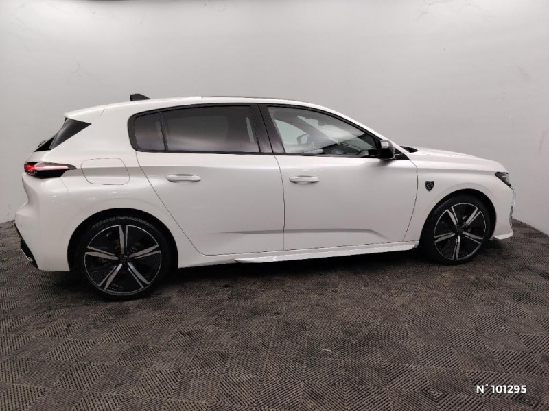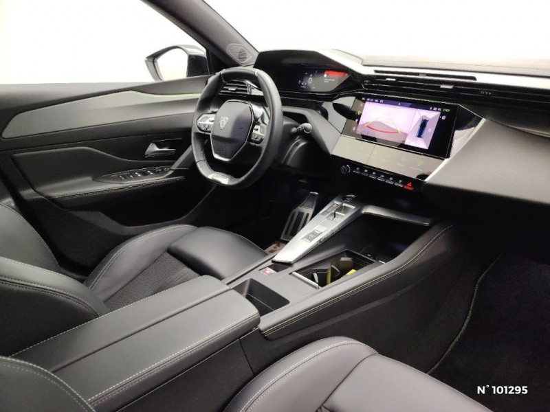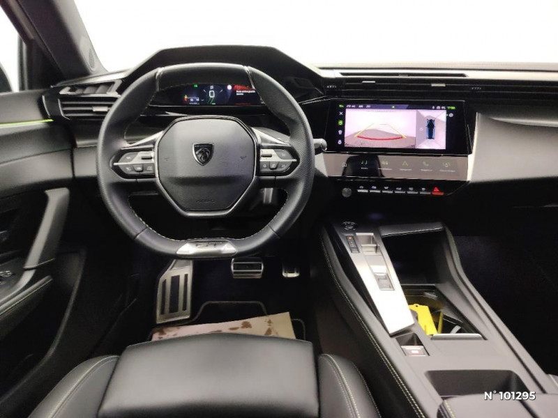 Jupe AR Noir Brillant avec décors chromés / Rétroviseurs extérieurs avec éclairage d'approche / Diffuseurs d'air AR / Smart Multidrive: personnalisation du combiné et éclairage d'ambiance LED intérieur associés aux modes de conduite / Projecteurs Peugeot Matrix LED / Feux AR spécifiques avec allumage dynamique griffe à griffe / Calandre AV spécifique Noir verni avec inserts chromés et écopes Noir Brillant / Elargisseurs de pare chocs AV et de bas de caisse latéraux / Monogrammes latéraux emblème Lion / Jantes alliage 18" Kamakura diamantées / Planche de bord avec jonc transversal chromé, décor Alu et surpiqures Vert / Décor Alu sur panneaux de porte / Peugeot i-Cockpit 3D avec combiné d'instrumentation numérique personnalisable / Garnissage tri-matières TEP/Alcantara Fraxx Knit, surpiqures Vert / Pare-brise teinté feuilleté acoustique / Frein de stationnement électrique / Ciel de pavillon noir / Détection de sous gonflage / Kit de dépannage de pneumatique : compresseur 12 volts, flacon de produit de colmatage, anneau de remorquage, deux cales de roue, manivelle de frein de stationnement électrique / Essuie-vitre AV à déclenchement automatique / Seuils de porte AV aluminium / Air Quality System / Alerte active de franchissement involontaire de ligne et bas côté / 4 poignées de maintien (2 à l'AV et 2 à l'AR) / Bandeau entre feux arrière noir brillant / Driver Sport Pack / Rétroviseur intérieur photosensible sans cadre / Pack Safety Plus / Pack Drive Assist / Pack Drive Assist + Rear warning / 2 télécommandes 3 boutons / Sélecteur mode de conduite Eco et Sport / Lève-vitres électriques AV et AR et séquentiels avec anti-pincement / Rétroviseurs extérieurs électriques, dégivrants et rabattables électriquement avec répétiteurs de feux clignotants à LED / Navigation connectée / Vitres latérales AR et lunette AR surteintées / Surtapis AV et AR / Alerte attention conducteur / Commutation automatique des feux de route / Pédalier Sport aluminium et repose pied en aluminium / Accès et démarrage mains libres / Ceintures de sécurité AR 3 points à enrouleur (x3) avec prétensionneurs et limiteurs d'effort aux places latérales / Airbags frontaux conducteur et passager adaptatifs (passager neutralisable par clé), airbags latéraux conducteur et passager AV, airbags rideaux de tête aux places AV et AR / PEUGEOT Connect SOS & Assistance / Réglage lombaire du siège conducteur / Feux diurnes à LED sous projecteurs nouvelle signature Peugeot / Eclairage d'ambiance (8 couleurs) / 2 prises USB-C à l'AR / Fonction Mirror Screen (Apple CarPlay/Android Auto) sans fil / Ceintures de sécurité AV 3 points à enrouleur, avec prétensionneurs et limiteurs d'effort / 2 prises USB-C à l'AV / Lécheurs de vitres Noir Brillant / ESP avec fonction Hill Assist (Aide au démarrage en pente) / Trappe à ski (Rang 2) / Accoudoir central AV avec compartiment de rangement
