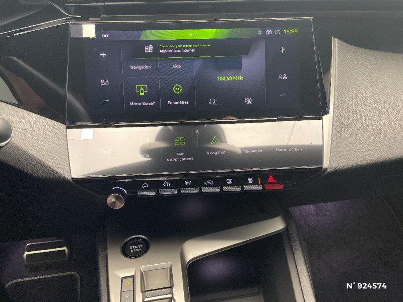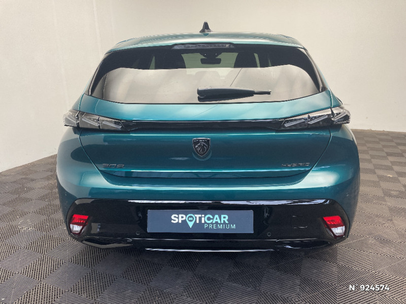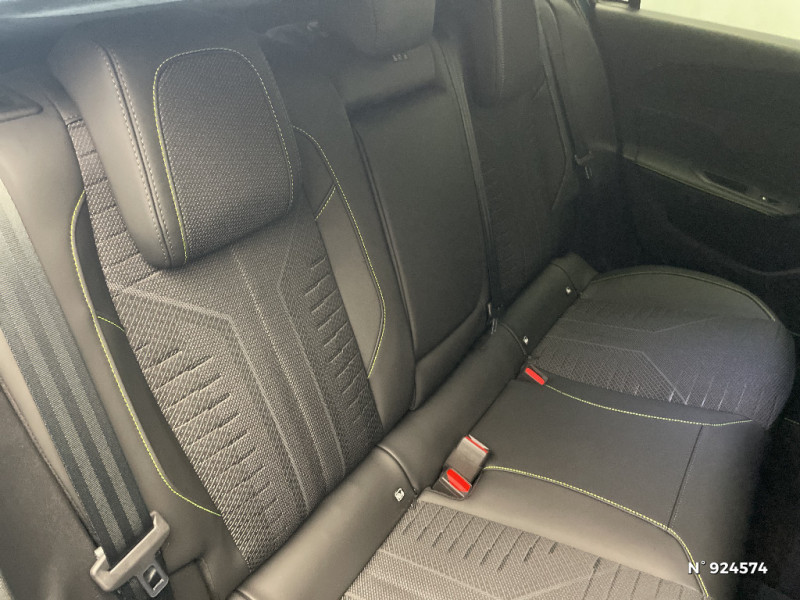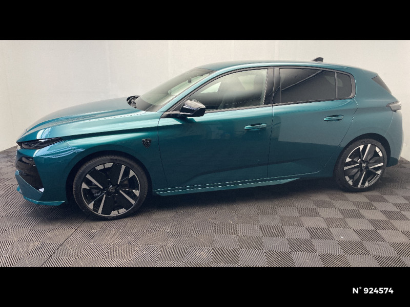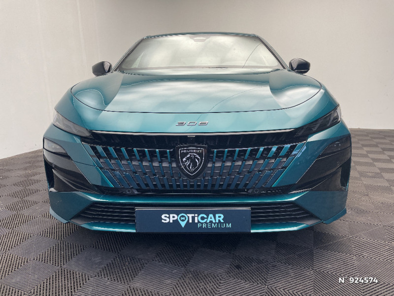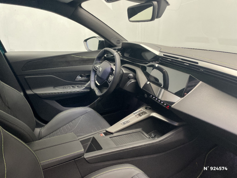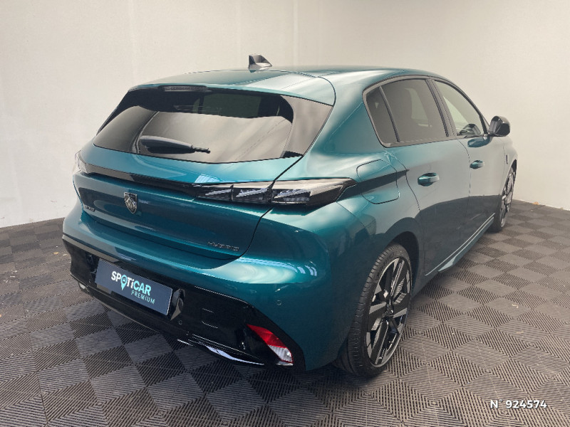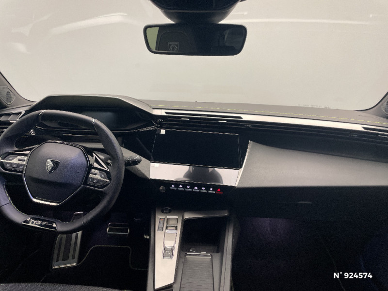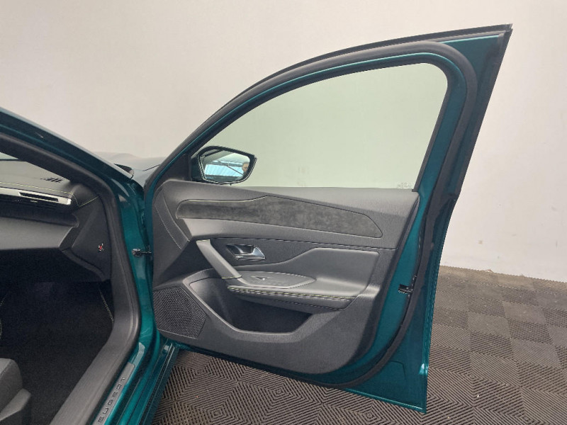 Accès et démarrage mains libres Proximity / Frein de stationnement électrique / Feux AR 3 griffes à LED Allumage dynamique griffe à griffe / Peugeot Connect SOS & Assistance / ESP avec aide au démarrage en pente, et détection de sous-gonflage indirect / 6 airbags Airbags frontaux conducteur et passager (passager neutralisable par clé) Airbags latéraux conducteur et passager AV Airbags rideaux aux places AV et AR / Monogrammes 'GT' sur volet de coffre / Peugeot i-Cockpit avec combiné numérique 10" personnalisable / Surtapis GT AV et AR avec surpiqûres vert Adamite / Sellerie tissu noir UZILA embossé, tri-matières avec accompagnement TEP Isabella Mistral, doubles surpiqûres vert / gris / Jantes alliage 18'' HELSINKI diamantées bi-tons Noir Onyx et inserts Noir Onyx mat / Plancher de coffre modulable 2 positions / Siège conducteur et passager AV avec réglage manuel de la hauteur d'assise / Eclairage intérieur Plafonnier AV et liseuses arrière à LED, Boite à gants et rangement de console éclairés à LED, Eclairage de coffre à lampe / Pack Safety Plus Régulateur / Limiteur de vitesse, Freinage d'urgence automatique avec alerte risque de collision, piloté par caméra et radar Alerte active de franchissement involontaire de ligne et bas-côté, Reconnaissance étendue des panneaux de signalisation et préconisation de vitesse, Alerte attention conducteur / Trip planner Planification des trajets et de la recharge, intégré au système de navigation / Rétroviseurs extérieurs avec éclairage d'approche / Système audio avec 6 HP 2 tweeters et 2 woofers à l'AV, 2 haut-parleurs large bande à l'AR / Peugeot i-Connect Advanced Navigation 3D connectée, et i-Toogles virtuels personnalisables, Pack Connect Plus (Abonnement inclus 6 mois) / Vitrage portes AV feuilleté / Volant compact GT en cuir pleine fleur avec surpiqûres vert Adamite / Eléments de design intérieur Planche de bord moussée avec décor Alcantara, jonc chromé transversal, et surpiqûres vert Adamite, Panneaux de portes avec décor Alcantara, poignée de portes en similicuir avec doubles surpiqûres vert Adamite / gris Tramontane, Planche de bord et panneaux de portes AV avec éclairage d'ambiance (8 couleurs), Accoudoirs de portes en similicuir avec doubles surpiqûres vert Adamite / gris Tramontane, Ciel de pavillon Noir, Pédalier sport et repose-pied en aluminium, Seuils de porte AV en alu / Eléments de design extérieur Calandre AV avec grille supérieure et blason PEUGEOT illuminés, à?largisseurs de pare-chocs AV et de bas de caisse, Monogrammes blason PEUGEOT sur ailes AV, Lécheurs de vitre Noir brillant / Rétroviseur intérieur électrochrome / 2 prises USB-C à l'AR / 4 poignées de maintien / Visiopark 1 Caméra de recul & aide au stationnement AR, graphique et sonore / Projecteurs Peugeot Matrix LED Technology / Pare-brise teinté feuilleté acoustique / Pack Drive Assist - Régulateur de vitesse adaptatif avec fonction Stop & Go / Essuie-vitre AV à déclenchement automatique / Diffuseurs d'air AR / Vitres de custode AR et lunette AR chauffante temporisée surteintées / Aide au stationnement AV et AR, graphique et sonore / Driver Sport Pack - Personnalisation du combiné spécifique - Sonorité du moteur amplifiée et plus sportive / Navigation connectée / 6 airbags (Frontaux adaptatifs, latéraux AV, rideaux AV et AR) / Boîte de vitesse automatique, séquentielle (6 rapports) / Lève-vitres AV et AR électriques, séquentiels et antipincement / Siège conducteur avec réglage lombaire / Vitres latérales AR et lunette AR chauffante surteintées
