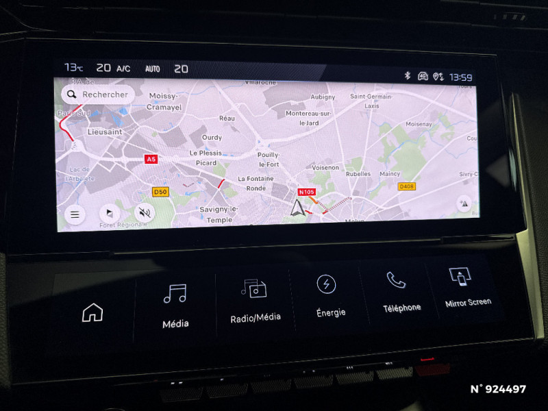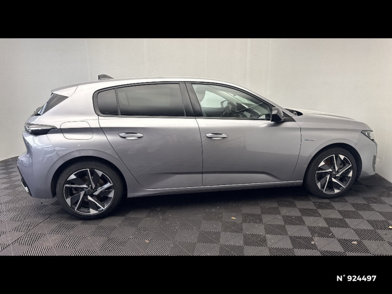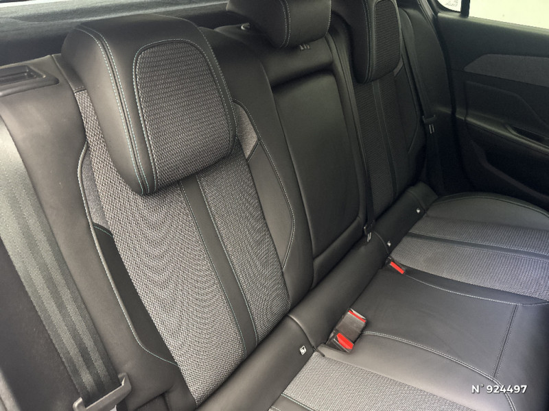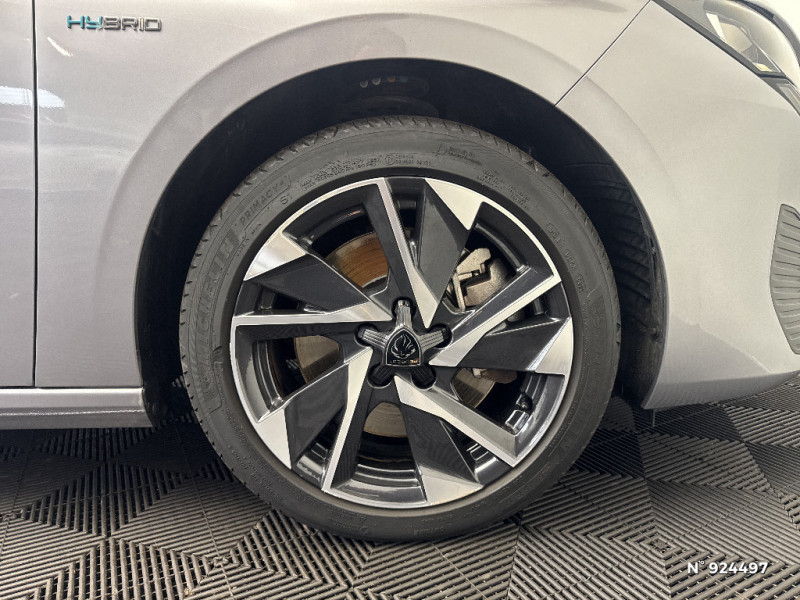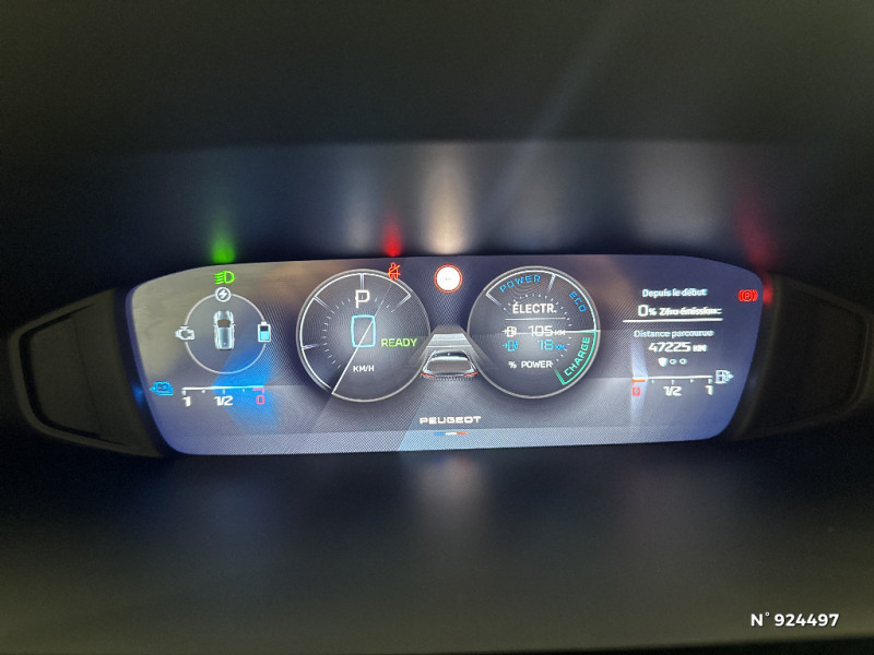 4 poignées de maintien (2 à l'AV et 2 à l'AR) / Accoudoir central AV avec compartiment de rangement / Rétroviseur intérieur photosensible / Réglage lombaire du siège conducteur / Lécheurs de vitres Noir Brillant / Air Quality System / Alerte active de franchissement involontaire de ligne et bas côté / Rétroviseurs extérieurs avec éclairage d'approche / Câble de recharge mode 2 (10 A, 2,3 kW, pour prise domestique standard) / Air Quality System (sonde de pollution, couplée à un filtre à charbon actif Haute Efficacité) / Planche de bord avec jonc transversal peint et décor textile Texa / Navigation connectée / 2 prises USB-C à l'AV / Frein de stationnement électrique / Ceintures de sécurité AV 3 points à enrouleur, avec prétensionneurs et limiteurs d'effort / Rétroviseurs extérieurs électriques, dégivrants et rabattables électriquement avec répétiteurs de feux clignotants à LED / Essuie-vitre AV à déclenchement automatique / Ciel de pavillon clair / ESP avec fonction Hill Assist (Aide au démarrage en pente) / Pare-brise teinté feuilleté acoustique / Trappe à ski (Rang 2) / Pack Safety Plus / Pack Drive Assist / Pack Drive Assist + Rear warning / Garnissage tri-matières TEP/Tissu Falgo, surpiqûres Bleu / Peugeot i-Cockpit avec combiné d'instrumentation numérique 10'' personnalisable / Calandre AV Noir avec inserts chromés et écopes Noir / Jupe AR Noir Brillant avec décors chromés / Kit de dépannage de pneumatique : compresseur 12 volts, flacon de produit de colmatage, anneau de remorquage, deux cales de roue, manivelle de frein de stationnement électrique / Fonction Mirror Screen (Apple CarPlay/Android Auto) sans fil / Diffuseurs d'air AR / Feux diurnes à LED sous projecteurs nouvelle signature Peugeot / Chargeur embarqué 3,7 kW / Monogrammes latéraux Hybrid / Puissance batterie 100 kW / Lève-vitres électriques AV et AR et séquentiels avec anti-pincement / 2 prises USB-C à l'AR / 2 télécommandes 3 boutons / Airbags frontaux conducteur et passager adaptatifs (passager neutralisable par clé), airbags latéraux conducteur et passager AV, airbags rideaux de tête aux places AV et AR / Jantes alliage 17" Halong diamantées / Bandeau entre feux AR noir brillant / Ceintures de sécurité AR 3 points à enrouleur (x3) avec prétensionneurs et limiteurs d'effort aux places latérales / Détection de sous gonflage / Accès et démarrage mains libres / Capacité batterie 12,4 kWh / Vitres latérales AR et lunette AR surteintées / Pré-conditionnement thermique via MyPeugeot ou l'écran central / Sélecteur de modes (Electric, Hybrid, Sport) / Commutation automatique des feux de route / Alerte attention conducteur