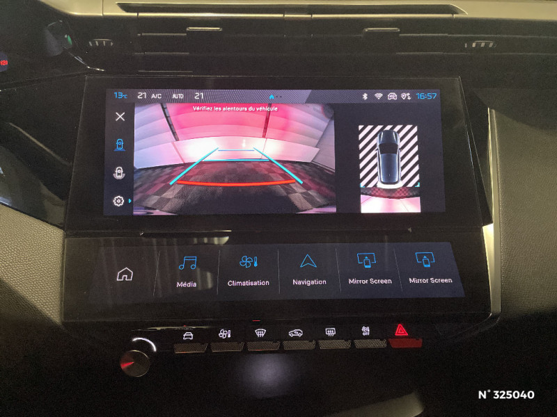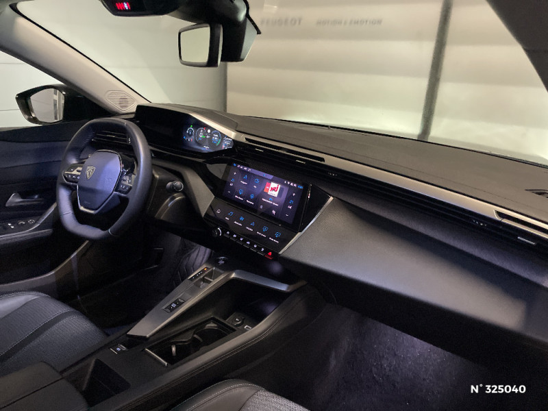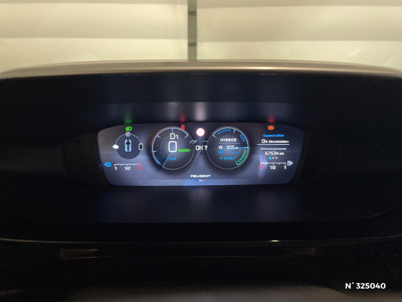 Accoudoir central AV avec compartiment de rangement / Ceintures de sécurité AV 3 points à enrouleur, avec prétensionneurs et limiteurs d'effort / Pompe à chaleur / 4 poignées de maintien / Réglage lombaire du siège conducteur / Airbags frontaux conducteur et passager adaptatifs (passager neutralisable par clé), airbags latéraux conducteur et passager AV.airbags rideaux de tête aux places AV/AR / Lève-vitres électriques AV/ AR et séquentiels avec anti-pincement / Chargeur embarqué 3,7kW / Lécheurs de vitres Noir Brillant / Pack Safety Plus Active Safety Brake piloté par caméra et radar / Air Quality System / Essuie-vitre AV à déclenchement automatique / Garnissage tri-matières TEP/Tissu Falgo, surpiqûres Bleu / Navigation connectée / Jantes alliage 17" Halong diamantées / Frein de stationnement électrique / Navigation connectée avec écran central tactile 10'' et écran avec iToggles virtuels personnalisables. Reconnaissance vocale en langage naturel. / Jantes alliage 17'' Calgary diamantées / Calandre AV Noir avec inserts chromés et écopes Noir / Capacité batterie 12,4kWh / Pare-brise teinté feuilleté acoustique / Rétroviseurs extérieurs avec éclairage d'accueil à LED et témoins de surveillance d'angles morts / Fonction Mirror Screen (Apple CarPlay/Android Auto) sans fil / Rétroviseurs extérieurs avec éclairage d'approche / Pré-conditionnement thermique et charge différée via l'écran central / Détection de sous gonflage / Sélecteur de modes de conduite (Electric, Hybrid, Sport) / Ciel de pavillon clair / Peugeot i-Cockpit avec combiné d'instrumentation numérique 10'' personnalisable / 2 prises USB-C à l'AV / Pré-conditionnement thermique via MyPeugeot ou l'écran central / Puissance batterie 100kW / Boîte de vitesse automatique (8 rapports) / Commutation automatique des feux de route / Rétroviseur intérieur photosensible / Câble de recharge mode 2 (10A, 2,3kW) pour prise domestique standard / Volant chauffant / Rétroviseurs extérieurs électriques, dégivrants et rabattables électriquement, avec répétiteurs de feux clignotants à LED / Pack Drive Assist - Régulateur de vitesse adaptatif avec fonction Stop&Go Maintient automatiquement la vitesse du véhicule à la vitesse de référence définie par le conducteur, et ajuste automatiquement la vitesse du véhicule pour garder une distance de sécurité avec le véhicule qui précède, conformément au réglage sélectionné par le conducteur. Maintient et ajuste la vitesse jusqu'à l'arrêt. Le redémarrage du véhicule est automatique si l'arrêt a été d'une durée inférieure à 3 secondes / Feux diurnes à LED sous projecteurs nouvelle signature Peugeot / 2 prises USB-C à l'AR / Kit de dépannage de pneumatique : compresseur 12 volts, flacon de produit de colmatage, anneau de remorquage, deux cales de roue, manivelle de frein de stationnement électrique / ESP avec fonction Hill Assist (Aide au démarrage en pente) / Vitres latérales AR et lunette AR surteintées / Alerte attention conducteur / Ceintures de sécurité AR 3 points à enrouleur (x3) avec prétensionneurs et limiteurs d'effort aux places latérales / Alerte active de franchissement involontaire de ligne et bas côté / Bandeau entre feux AR Noir brillant / 2 télécommandes 3 boutons / Air Quality System (sonde de pollution, couplée à un filtre à charbon actif Haute Efficacité) / 4 poignées de maintien (2 à l'AV et 2 à l'AR) / Pack Safety Plus / Monogrammes latéraux Hybrid / Jupe AR Noir Brillant avec décors chromés / Diffuseurs d'air aux places AR / Trappe à ski (Rang 2) / Planche de bord avec jonc transversal peint et décor textile Texa