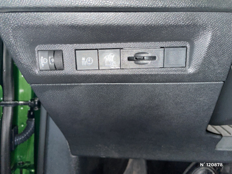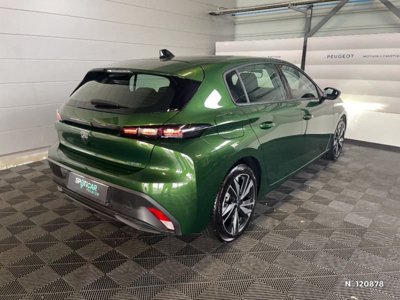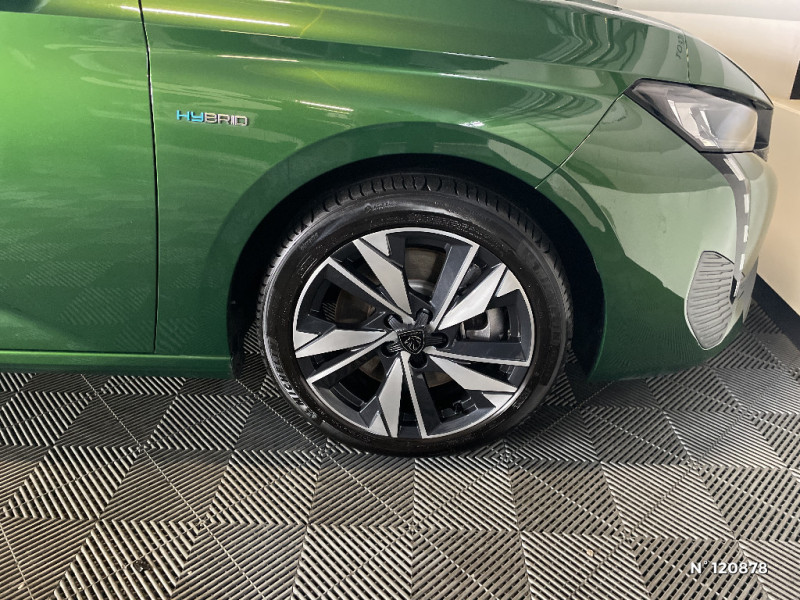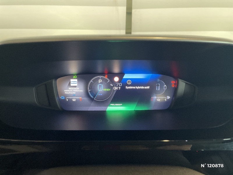 Réglage lombaire du siège conducteur / Kit de dépannage de pneumatique : compresseur 12 volts, flacon de produit de colmatage, anneau de remorquage, deux cales de roue, manivelle de frein de stationnement électrique / Feux diurnes à LED sous projecteurs / Alerte active de franchissement involontaire de ligne et bas côté / Pré-conditionnement thermique via MyPeugeot ou l'écran central / 2 prises USB-C à l'AV / Câble de recharge mode 2 (10 A, 2,3 kW, pour prise domestique standard) / Ceintures de sécurité AV 3 points à enrouleur, avec prétensionneurs et limiteurs d'effort / Pare-brise teinté feuilleté acoustique / Fonction Mirror Screen (Apple CarPlay/Android Auto) sans fil / Détection de sous gonflage / Rétroviseur intérieur photosensible / Ceintures de sécurité AR 3 points à enrouleur (x3) avec prétensionneurs et limiteurs d'effort aux places latérales / Alerte attention conducteur / Jupe AR Noir / Ciel de pavillon clair / ESP avec fonction Hill Assist (Aide au démarrage en pente) / Accoudoir central AV avec compartiment de rangement / Peugeot i-Cockpit avec combiné d'instrumentation numérique 10'' personnalisable / Rétroviseurs extérieurs avec éclairage d'approche / Pack Safety Plus / PEUGEOT Connect SOS & Assistance / Garnissage tri-matières Tissu Renze / 2 télécommandes 3 boutons / Lève-vitres électriques AV et AR et séquentiels avec anti-pincement / Rétroviseurs extérieurs électriques, dégivrants et rabattables électriquement avec répétiteurs de feux clignotants à LED / Chargeur embarqué 3,7 kW / Monogrammes latéraux Hybrid / Calandre AV et écopes Noir / Jantes alliage 17'' Calgary diamantées / Planche de bord avec jonc transversal peint et décor grain Traxx / Frein de stationnement électrique / 4 poignées de maintien (2 à l'AV et 2 à l'AR) / Sélecteur de modes (Electric, Hybrid, Sport) / Bandeau entre feux AR noir brillant / Essuie-vitre AV à déclenchement automatique / Capacité batterie 12,4 kWh / Puissance batterie 100 kW / Airbags frontaux conducteur et passager adaptatifs (passager neutralisable par clé), airbags latéraux conducteur et passager AV, airbags rideaux de tête aux places AV et AR