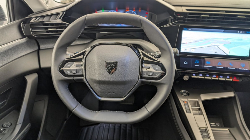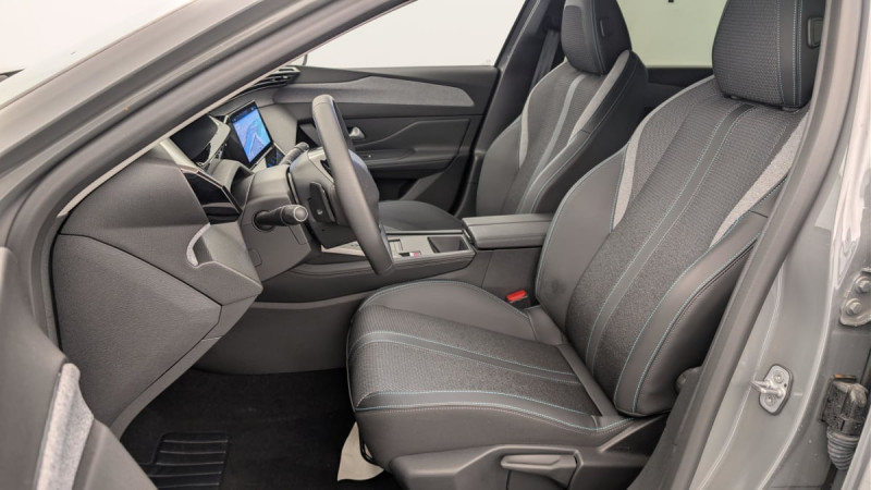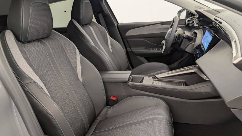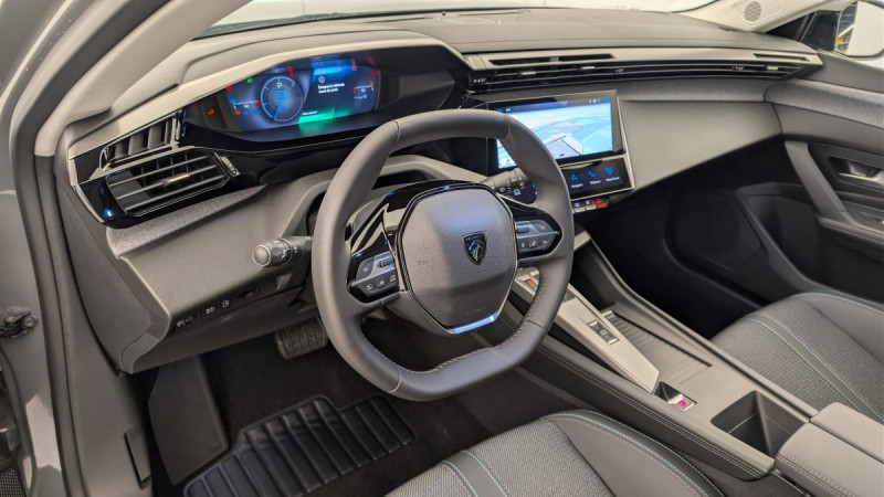 Frein de stationnement électrique / Jantes alliage 17" Halong diamantées / Détection de sous gonflage / Vitres latérales AR et lunette AR surteintées / Alerte attention conducteur / Commutation automatique des feux de route / Rétroviseur intérieur photosensible / Airbags frontaux conducteur et passager adaptatifs (passager neutralisable par clé), airbags latéraux conducteur et passager AV.airbags rideaux de tête aux places AV/AR / Essuie-vitre AV à déclenchement automatique / Alerte active de franchissement involontaire de ligne et bas côté / Sélecteur de modes de conduite (Electric, Hybrid, Sport) / Lève-vitres électriques AV/ AR et séquentiels avec anti-pincement / Rétroviseurs extérieurs électriques, dégivrants et rabattables électriquement, avec répétiteurs de feux clignotants à LED / Peugeot i-Cockpit avec combiné d'instrumentation numérique 10'' personnalisable / Feux diurnes à LED sous projecteurs nouvelle signature Peugeot / Fonction Mirror Screen (Apple CarPlay/Android Auto) sans fil / Accoudoir central AV avec compartiment de rangement / Garnissage tri-matières TEP/Tissu Falgo, surpiqûres Bleu / Pare-brise teinté feuilleté acoustique / Câble de recharge mode 2 (10A, 2,3kW) pour prise domestique standard / Pack Drive Assist : Régulateur de vitesse adaptatif avec fonction Stop&Go / Pack Safety Plus : Active Safety Brake piloté par caméra et radar / Réglage lombaire du siège conducteur / Boîte de vitesse automatique (8 rapports) / / Véhicules équivalents: Megane - C4 - Mazda 3