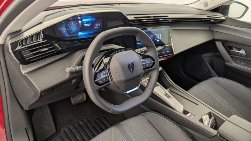Frein de stationnement électrique / Jantes alliage 17" Halong diamantées / Détection de sous gonflage / Vitres latérales AR et lunette AR surteintées / Alerte attention conducteur / Commutation automatique des feux de route / Rétroviseur intérieur photosensible / Airbags frontaux conducteur et passager adaptatifs (passager neutralisable par clé), airbags latéraux conducteur et passager AV.airbags rideaux de tête aux places AV/AR / Essuie-vitre AV à déclenchement automatique / Sélecteur mode de conduite Eco et Sport / Lève-vitres électriques AV/ AR et séquentiels avec anti-pincement / Rétroviseurs extérieurs électriques, dégivrants et rabattables électriquement, avec répétiteurs de feux clignotants à LED / Peugeot i-Cockpit avec combiné d'instrumentation numérique 10'' personnalisable / Feux diurnes à LED sous projecteurs nouvelle signature Peugeot / Fonction Mirror Screen (Apple CarPlay/Android Auto) sans fil / ESP avec fonction Hill Assist (Aide au démarrage en pente) / Accoudoir central AV avec compartiment de rangement / Garnissage tri-matières TEP/Tissu Falgo, surpiqûres Bleu / Pare-brise teinté feuilleté acoustique / 4 poignées de maintien / Pack Drive Assist : Régulateur de vitesse adaptatif avec fonction Stop&Go / Pack Safety Plus : Active Safety Brake piloté par caméra et radar / Réglage lombaire du siège conducteur / Boîte de vitesse automatique, séquentielle (6 rapports) / / Véhicules équivalents: Megane - C4 - Mazda 3