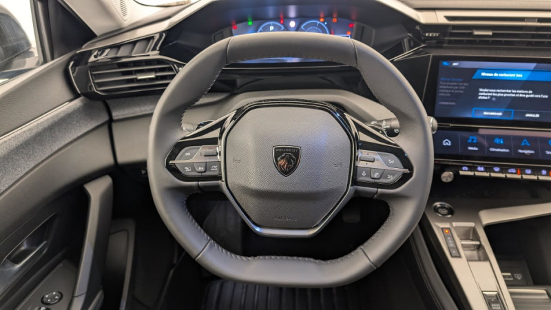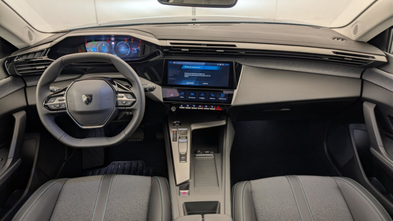 Frein de stationnement électrique / Jantes alliage 17" Halong diamantées / Détection de sous gonflage / Vitres latérales AR et lunette AR surteintées / Alerte attention conducteur / Commutation automatique des feux de route / Rétroviseur intérieur photosensible / Airbags frontaux conducteur et passager adaptatifs (passager neutralisable par clé), airbags latéraux conducteur et passager AV.airbags rideaux de tête aux places AV/AR / Essuie-vitre AV à déclenchement automatique / Alerte active de franchissement involontaire de ligne et bas côté / Sélecteur de modes de conduite (Electric, Hybrid, Sport) / Lève-vitres électriques AV/ AR et séquentiels avec anti-pincement / Rétroviseurs extérieurs électriques, dégivrants et rabattables électriquement, avec répétiteurs de feux clignotants à LED / Peugeot i-Cockpit avec combiné d'instrumentation numérique 10'' personnalisable / Feux diurnes à LED sous projecteurs nouvelle signature Peugeot / Fonction Mirror Screen (Apple CarPlay/Android Auto) sans fil / Accoudoir central AV avec compartiment de rangement / Garnissage tri-matières TEP/Tissu Falgo, surpiqûres Bleu / Pare-brise teinté feuilleté acoustique / Câble de recharge mode 2 (10A, 2,3kW) pour prise domestique standard / Pack Drive Assist : Régulateur de vitesse adaptatif avec fonction Stop&Go / Pack Safety Plus : Active Safety Brake piloté par caméra et radar / Réglage lombaire du siège conducteur / Boîte de vitesse automatique (8 rapports) / / Véhicules équivalents: Megane - C4 - Mazda 3
