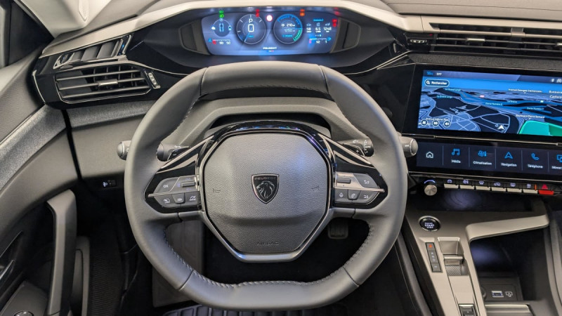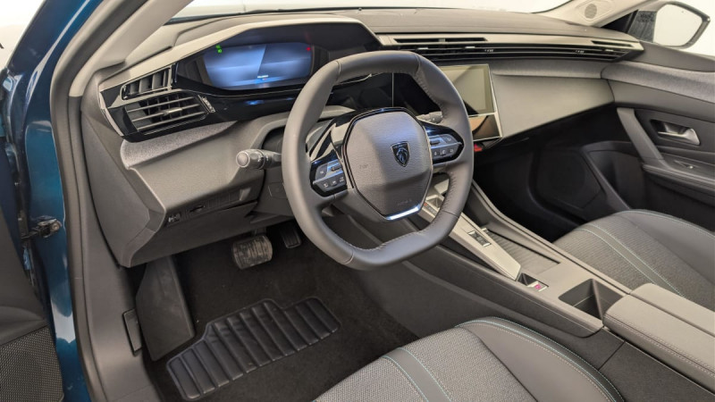 Frein de stationnement électrique / Jantes alliage 17" Halong diamantées / Détection de sous gonflage / Vitres latérales AR et lunette AR surteintées / Alerte attention conducteur / Commutation automatique des feux de route / Rétroviseur intérieur photosensible / Airbags frontaux conducteur et passager adaptatifs (passager neutralisable par clé), airbags latéraux conducteur et passager AV.airbags rideaux de tête aux places AV/AR / Essuie-vitre AV à déclenchement automatique / Sélecteur mode de conduite Eco et Sport / Lève-vitres électriques AV/ AR et séquentiels avec anti-pincement / Rétroviseurs extérieurs électriques, dégivrants et rabattables électriquement, avec répétiteurs de feux clignotants à LED / Peugeot i-Cockpit avec combiné d'instrumentation numérique 10'' personnalisable / Feux diurnes à LED sous projecteurs nouvelle signature Peugeot / Fonction Mirror Screen (Apple CarPlay/Android Auto) sans fil / ESP avec fonction Hill Assist (Aide au démarrage en pente) / Accoudoir central AV avec compartiment de rangement / Garnissage tri-matières TEP/Tissu Falgo, surpiqûres Bleu / Pare-brise teinté feuilleté acoustique / 4 poignées de maintien / Pack Drive Assist : Régulateur de vitesse adaptatif avec fonction Stop&Go / Pack Safety Plus : Active Safety Brake piloté par caméra et radar / Réglage lombaire du siège conducteur / Boîte de vitesse automatique, séquentielle (6 rapports) / / Véhicules équivalents: Megane - C4 - Mazda 3