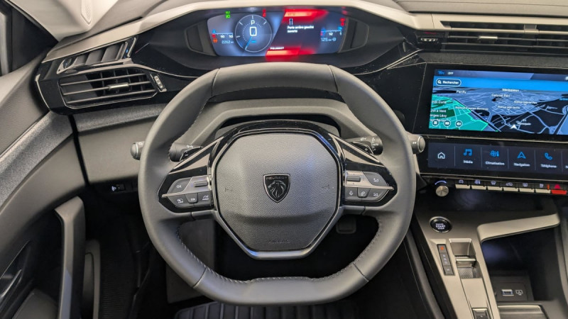 Frein de stationnement électrique / Jantes alliage 17" Halong diamantées / Détection de sous gonflage / Vitres latérales AR et lunette AR surteintées / Alerte attention conducteur / Commutation automatique des feux de route / Rétroviseur intérieur photosensible / Airbags frontaux conducteur et passager adaptatifs (passager neutralisable par clé), airbags latéraux conducteur et passager AV.airbags rideaux de tête aux places AV/AR / Essuie-vitre AV à déclenchement automatique / Sélecteur mode de conduite Eco et Sport / Lève-vitres électriques AV/ AR et séquentiels avec anti-pincement / Rétroviseurs extérieurs électriques, dégivrants et rabattables électriquement, avec répétiteurs de feux clignotants à LED / Peugeot i-Cockpit avec combiné d'instrumentation numérique 10'' personnalisable / Feux diurnes à LED sous projecteurs nouvelle signature Peugeot / Fonction Mirror Screen (Apple CarPlay/Android Auto) sans fil / ESP avec fonction Hill Assist (Aide au démarrage en pente) / Accoudoir central AV avec compartiment de rangement / Garnissage tri-matières TEP/Tissu Falgo, surpiqûres Bleu / Pare-brise teinté feuilleté acoustique / 4 poignées de maintien / Pack Drive Assist : Régulateur de vitesse adaptatif avec fonction Stop&Go / Pack Safety Plus : Active Safety Brake piloté par caméra et radar / Réglage lombaire du siège conducteur / Boîte de vitesse automatique, séquentielle (6 rapports) / / Véhicules équivalents: Megane - C4 - Mazda 3
