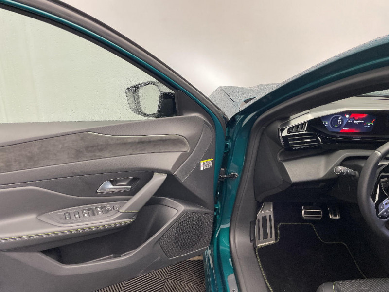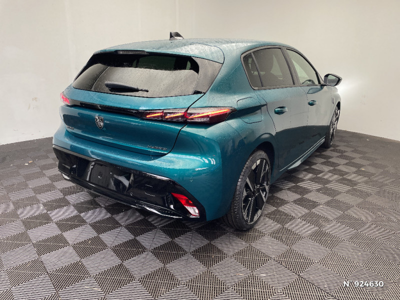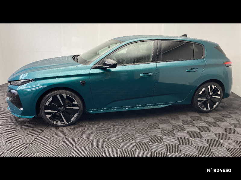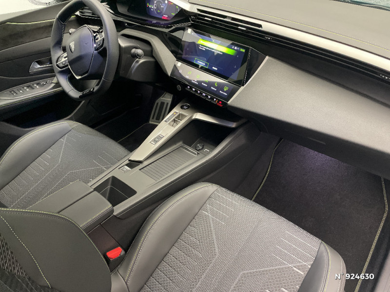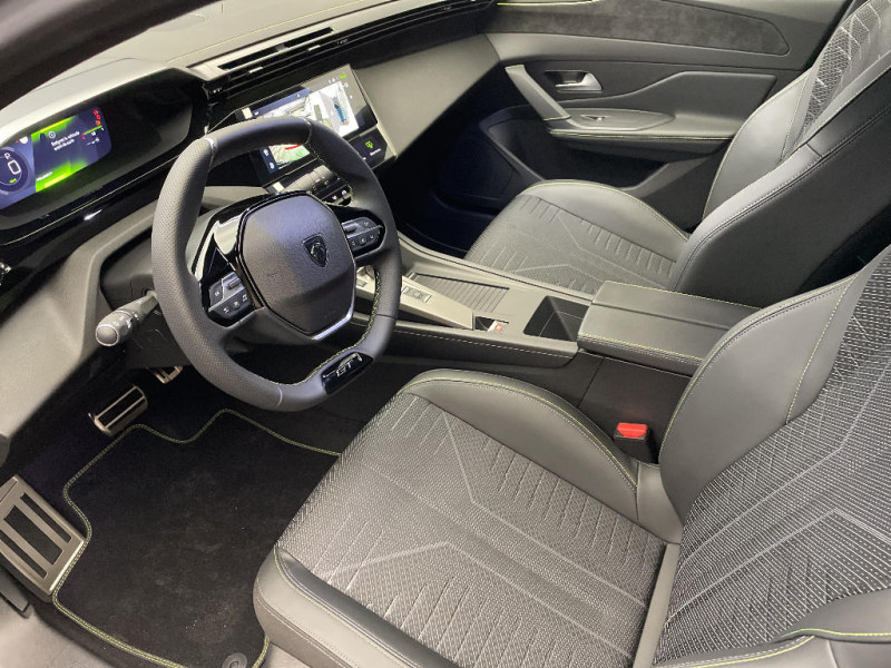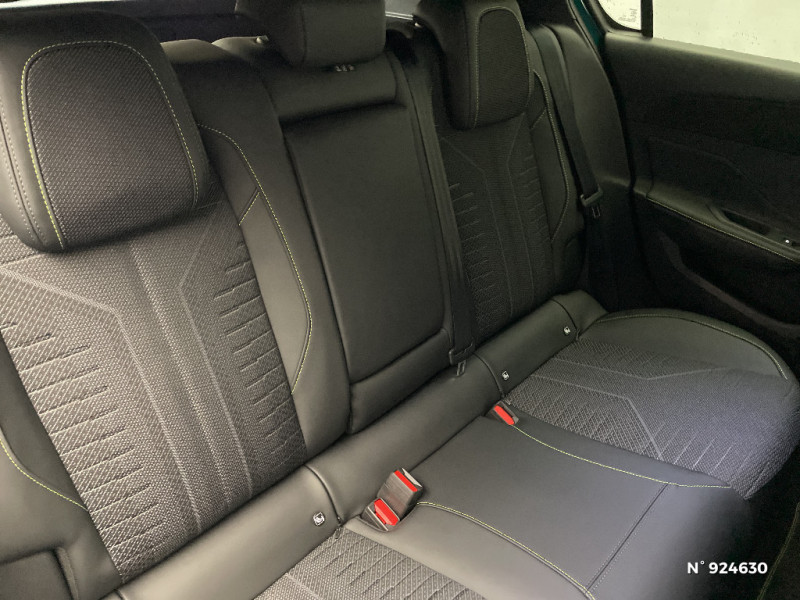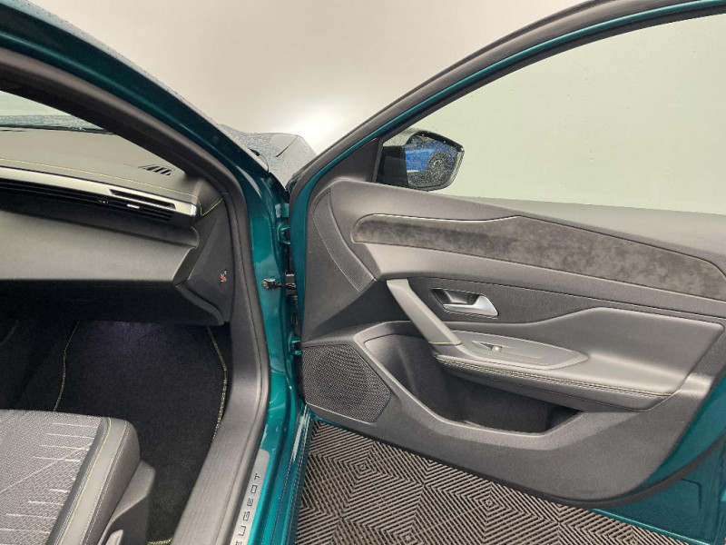 Lève-vitres AV et AR électriques, séquentiels et antipincement / Driver Sport Pack - Personnalisation du combiné spécifique - Sonorité du moteur amplifiée et plus sportive / 6 airbags (Frontaux adaptatifs, latéraux AV, rideaux AV et AR) / Boîte de vitesse automatique, séquentielle (6 rapports) / Siège conducteur avec réglage lombaire / Vitres latérales AR et lunette AR chauffante surteintées / Frein de stationnement électrique / Navigation connectée / Accès et démarrage mains libres Proximity / Aide au stationnement AV et AR, graphique et sonore / Essuie-vitre AV à déclenchement automatique / Diffuseurs d'air AR / Pare-brise teinté feuilleté acoustique / Rétroviseurs extérieurs avec éclairage d'approche / 2 prises USB-C à l'AR / Vitres de custode AR et lunette AR chauffante temporisée surteintées / Visiopark 1 Caméra de recul & aide au stationnement AR, graphique et sonore / Pack Drive Assist - Régulateur de vitesse adaptatif avec fonction Stop & Go / Projecteurs Peugeot Matrix LED Technology / Rétroviseur intérieur électrochrome / Sellerie tissu noir UZILA embossé, tri-matières avec accompagnement TEP Isabella Mistral, doubles surpiqûres vert / gris / Peugeot Connect SOS & Assistance / Trip planner Planification des trajets et de la recharge, intégré au système de navigation / Système audio avec 6 HP 2 tweeters et 2 woofers à l'AV, 2 haut-parleurs large bande à l'AR / Peugeot i-Connect Advanced Navigation 3D connectée, et i-Toogles virtuels personnalisables, Pack Connect Plus (Abonnement inclus 6 mois) / Vitrage portes AV feuilleté / Jantes alliage 18'' HELSINKI diamantées bi-tons Noir Onyx et inserts Noir Onyx mat / Peugeot i-Cockpit avec combiné numérique 10" personnalisable / Surtapis GT AV et AR avec surpiqûres vert Adamite / Plancher de coffre modulable 2 positions / Pack Safety Plus Régulateur / Limiteur de vitesse, Freinage d'urgence automatique avec alerte risque de collision, piloté par caméra et radar Alerte active de franchissement involontaire de ligne et bas-côté, Reconnaissance étendue des panneaux de signalisation et préconisation de vitesse, Alerte attention conducteur / Siège conducteur et passager AV avec réglage manuel de la hauteur d'assise / Eclairage intérieur Plafonnier AV et liseuses arrière à LED, Boite à gants et rangement de console éclairés à LED, Eclairage de coffre à lampe / Volant compact GT en cuir pleine fleur avec surpiqûres vert Adamite / Feux AR 3 griffes à LED Allumage dynamique griffe à griffe / ESP avec aide au démarrage en pente, et détection de sous-gonflage indirect / 6 airbags Airbags frontaux conducteur et passager (passager neutralisable par clé) Airbags latéraux conducteur et passager AV Airbags rideaux aux places AV et AR / Monogrammes 'GT' sur volet de coffre / 4 poignées de maintien / Eléments de design intérieur Planche de bord moussée avec décor Alcantara, jonc chromé transversal, et surpiqûres vert Adamite, Panneaux de portes avec décor Alcantara, poignée de portes en similicuir avec doubles surpiqûres vert Adamite / gris Tramontane, Planche de bord et panneaux de portes AV avec éclairage d'ambiance (8 couleurs), Accoudoirs de portes en similicuir avec doubles surpiqûres vert Adamite / gris Tramontane, Ciel de pavillon Noir, Pédalier sport et repose-pied en aluminium, Seuils de porte AV en alu / Eléments de design extérieur Calandre AV avec grille supérieure et blason PEUGEOT illuminés, à?largisseurs de pare-chocs AV et de bas de caisse, Monogrammes blason PEUGEOT sur ailes AV, Lécheurs de vitre Noir brillant