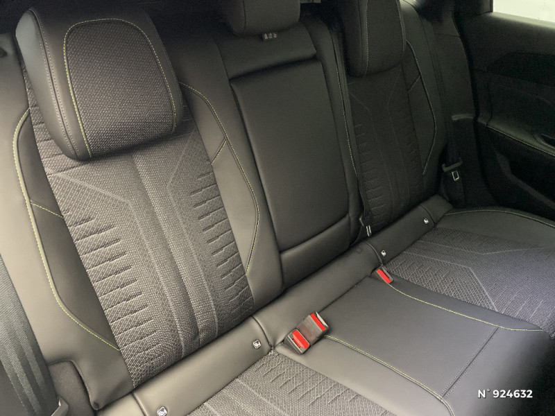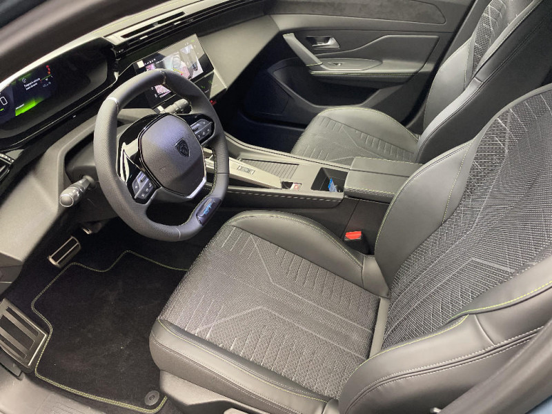 Driver Sport Pack - Personnalisation du combiné spécifique - Sonorité du moteur amplifiée et plus sportive / Pare-brise teinté feuilleté acoustique / Lève-vitres AV et AR électriques, séquentiels et antipincement / 6 airbags (Frontaux adaptatifs, latéraux AV, rideaux AV et AR) / Siège conducteur avec réglage lombaire / Vitres latérales AR et lunette AR chauffante surteintées / Navigation connectée / Boîte de vitesse automatique, séquentielle (6 rapports) / Essuie-vitre AV à déclenchement automatique / Accès et démarrage mains libres Proximity / Aide au stationnement AV et AR, graphique et sonore / Frein de stationnement électrique / Diffuseurs d'air AR / Rétroviseurs extérieurs avec éclairage d'approche / Vitres de custode AR et lunette AR chauffante temporisée surteintées / 2 prises USB-C à l'AR / Pack Drive Assist - Régulateur de vitesse adaptatif avec fonction Stop & Go / Projecteurs Peugeot Matrix LED Technology / Visiopark 1 Caméra de recul & aide au stationnement AR, graphique et sonore / Rétroviseur intérieur électrochrome / 6 airbags Airbags frontaux conducteur et passager (passager neutralisable par clé) Airbags latéraux conducteur et passager AV Airbags rideaux aux places AV et AR / Monogrammes 'GT' sur volet de coffre / Trip planner Planification des trajets et de la recharge, intégré au système de navigation / Système audio avec 6 HP 2 tweeters et 2 woofers à l'AV, 2 haut-parleurs large bande à l'AR / Peugeot i-Connect Advanced Navigation 3D connectée, et i-Toogles virtuels personnalisables, Pack Connect Plus (Abonnement inclus 6 mois) / Vitrage portes AV feuilleté / Sellerie tissu noir UZILA embossé, tri-matières avec accompagnement TEP Isabella Mistral, doubles surpiqûres vert / gris / Jantes alliage 18'' HELSINKI diamantées bi-tons Noir Onyx et inserts Noir Onyx mat / Peugeot i-Cockpit avec combiné numérique 10" personnalisable / Surtapis GT AV et AR avec surpiqûres vert Adamite / Barres de toit en aluminium et peinture Noir Onyx / Eclairage intérieur Plafonnier AV et liseuses arrière à LED, Boite à gants et rangement de console éclairés à LED, Eclairage de coffre à lampe / Prise 12V dans le coffre / Siège conducteur et passager AV avec réglage manuel de la hauteur d'assise / Feux AR 3 griffes à LED Allumage dynamique griffe à griffe / ESP avec aide au démarrage en pente, et détection de sous-gonflage indirect / Plancher de coffre modulable 2 positions / Peugeot Connect SOS & Assistance / 4 poignées de maintien / Banquette AR avec dossier rabattable 40/20/40 / Volant compact GT en cuir pleine fleur avec surpiqûres vert Adamite / Pack Safety Plus Régulateur / Limiteur de vitesse, Freinage d'urgence automatique avec alerte risque de collision, piloté par caméra et radar Alerte active de franchissement involontaire de ligne et bas-côté, Reconnaissance étendue des panneaux de signalisation et préconisation de vitesse, Alerte attention conducteur / Eléments de design intérieur Planche de bord moussée avec décor Alcantara, jonc chromé transversal, et surpiqûres vert Adamite, Panneaux de portes avec décor Alcantara, poignée de portes en similicuir avec doubles surpiqûres vert Adamite / gris Tramontane, Planche de bord et panneaux de portes AV avec éclairage d'ambiance (8 couleurs), Accoudoirs de portes en similicuir avec doubles surpiqûres vert Adamite / gris Tramontane, Ciel de pavillon Noir, Pédalier sport et repose-pied en aluminium, Seuils de porte AV en alu / Eléments de design extérieur Calandre AV avec grille supérieure et blason PEUGEOT illuminés, à?largisseurs de pare-chocs AV et de bas de caisse, Monogrammes blason PEUGEOT sur ailes AV, Lécheurs de vitre Noir brillant