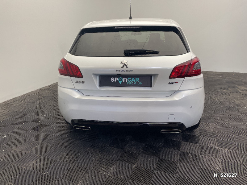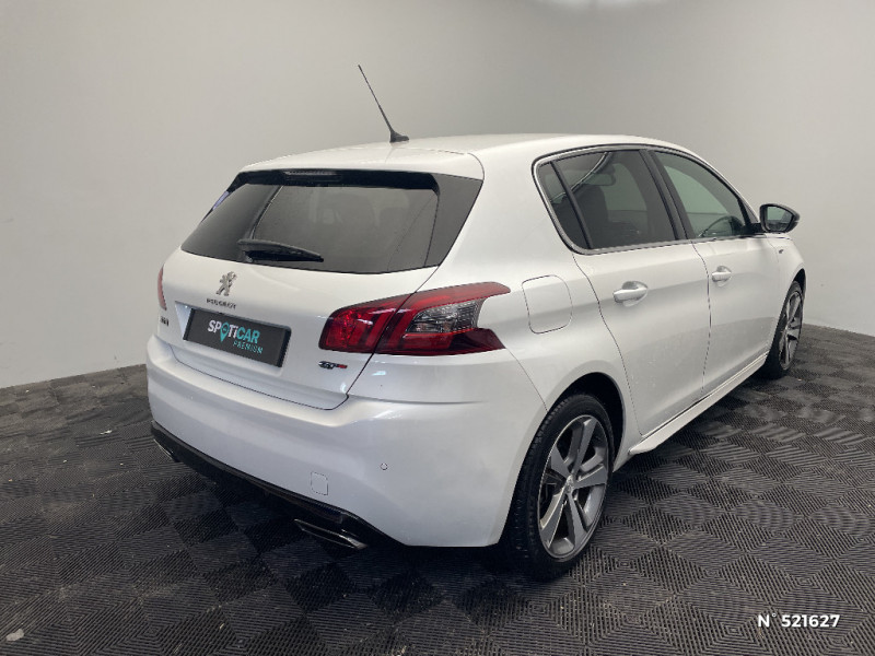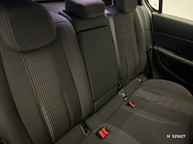 Surtapis AV/AR avec surpiqûres rouges / Pack Safety / Visiopark 1 Caméra de recul avec restitution sur l'écran tactile d'une vue AR, et d'une vue de dessus de l'environnement AR du véhicule / Ceintures de sécurité AR centrales sans limiteur d'effort, 3 points / Fonction DAB (Radio Numérique Terrestre) / Air conditionné automatique bi-zone avec filtre à charbon actifs / Alerte visuelle et sonore de non bouclage et de débouclage des ceintures de sécurité AV / Contrôle dynamique de stabilité ESP avec antipatinage électronique ASR / Calandre avec jonc périphérique et damiers chromés, intégrant le lion PEUGEOT / Bouclier AR couleur caisse, intégrant des doubles canules d'échappement de style / Badge GT sur les ailes AV et le pare-chocs AR / Siège conducteur mécanique avec réglage lombaire / Poches aumonières au dos des sièges AV / Combiné numérique 10" tête haute personalisable / Ecran tactile 10" avec "effet glossy"- Radio 6HP, connectivité Bluetooth (audio streaming, kit mains libres), commandes au volant / Garnissage dynamique TEP/Tissu OXFORD Mistral/Rouge / Alerte visuelle et sonore de débouclage des ceintures de sécurité AR / Siège passager AV mécanique avec réglage lombaire / Pack Drive Assist / Projecteurs 'Peugeot Full LED Technology' - Bouclier AV dynamique, Projecteurs antibrouillard à LED, Clignotants AV à LED avec défilement dynamique / PEUGEOT CONNECT / Coques de rétroviseurs extérieurs Noir Perla Nera / Rangement dans le coffre, spécifique pour triangle de pré-signalisation et trousse de secours / Seuils de portes AV en Inox / PEUGEOT Connect SOS & Assistance et Teleservices / Pack Look extérieur / Accès et démarrage mains libres / Pack Visibilité / Habitacle et ciel de pavillon anthracite / Pédalier et repose-pied conducteur en aluminium / Jantes alliage 17" diamantées RUBIS / Teinte opaque Blanc Banquise / Aide graphique et sonore au stationnement AV / Avertisseur de temps de conduite / Commande de verrouillage à distance (2 plips) / Décors intérieurs spécifiques: Frein de stationnement noir laqué, poignées de portes intérieures en cuir, planche de bord, panneaux de portes et soufflet de levier de vitesses avec surpiqûres rouges / Sécurité enfants électrique des vitres AR / Enjoliveur de bas de caisse / Essuie-vitre AR avec enclenchement automatique en marche AR / Système d'antiblocage des roues ABS avec répartiteur électronique de freinage REF et assistance au freinage d'urgence AFU / Peugeot i-Cockpit avec combiné tête haute numérique reconfigurable, écran tactile capacitif 10" et volant compact multi-fonctions / Appuis-tête à sécurité optimisée réglables en hauteur sur les sièges conducteur et passager AV ainsi que sur les places latérales AR / Prise USB (dans la zone connectique) / Becquet AR couleur caisse / Allumage automatique des feux de détresse en cas de forte décélération / Fonction Mirror Screen / Diffuseur AR noir laqué / Lève-vitres AV et AR électriques séquentiels avec antipincement / Fixations pour sièges enfants ISOFIX, sur places latérales en rang 2 / Prise USB en rang 2 / Pack Safety Plus / Ceintures de sécurité AV à enrouleur pyrotechnique / Eclairage du plafonnier à LED AV et AR / Détection de sous-gonflage indirecte / Kit de dépannage de pneumatique / Vitres latérales AR et lunette AR surteintées / Airbags frontaux conducteur et passager adaptatifs (passager neutralisable par clé), airbags latéraux conducteur et passager AV, airbags rideaux de tête aux places AV et AR / Ceintures de sécurité AR 3 points avec limiteur d'effort aux places latérales / Peugeot i-Cockpit avec combiné tête haute analogique et matrice couleur 3"5 / Aide graphique et sonore au stationnement AR / Volant spécifique, Cuir pleine fleur avec surpiqûres rouges / Entourage de vitres chromés / Driver Sport Pack / Ecran tactile thème RedLine