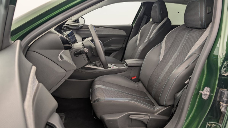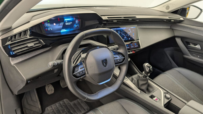Frein de stationnement électrique / Système stop & go couplé avec l'assistance au positionnement sur la voie / Jantes alliage 17" Halong diamantées / Détection de sous gonflage / Vitres latérales AR et lunette AR surteintées / Alerte attention conducteur / Commutation automatique des feux de route / Rétroviseur intérieur photosensible / Airbags frontaux conducteur et passager adaptatifs (passager neutralisable par clé), airbags latéraux conducteur et passager AV.airbags rideaux de tête aux places AV/AR / Kit de dépannage de pneumatique : compresseur 12 volts, flacon de produit de colmatage, anneau de remorquage, deux cales de roue, manivelle de frein de stationnement électrique : 2 cales de roue Anneau remorquage Compresseur 12 V et flacon de produit de colmatage Manivelle de frein de stationnement électrique / Essuie-vitre AV à déclenchement automatique / Alerte active de franchissement involontaire de ligne et bas côté / Bandeau entre feux AR Noir brillant / 2 télécommandes 3 boutons / Lève-vitres électriques AV/ AR et séquentiels avec anti-pincement / Rétroviseurs extérieurs électriques, dégivrants et rabattables électriquement, avec répétiteurs de feux clignotants à LED / Peugeot i-Cockpit avec combiné d'instrumentation numérique 10'' personnalisable / Jupe AR Noir Brillant avec décors chromés / Diffuseurs d'air aux places AR / Feux diurnes à LED sous projecteurs nouvelle signature Peugeot / 2 prises USB-C à l'AR / Fonction Mirror Screen (Apple CarPlay/Android Auto) sans fil / 2 prises USB-C à l'AV / Lécheurs de vitres Noir Brillant / ESP avec fonction Hill Assist (Aide au démarrage en pente) / Trappe à ski (Rang 2) / Accoudoir central AV avec compartiment de rangement / Garnissage tri-matières TEP/Tissu Falgo, surpiqûres Bleu / Pare-brise teinté feuilleté acoustique / Navigation connectée avec écran central tactile 10'' et écran avec iToggles virtuels personnalisables. Reconnaissance vocale en langage naturel. / Planche de bord avec jonc transversal peint et décor textile Texa / Air Quality System / 4 poignées de maintien / Pack Drive Assist - Régulateur de vitesse adaptatif avec fonction 30 km/h Après un freinage entrainant un ralentissement en deçà de 30 km/h, le régulateur se met en pause, le conducteur doit reprendre la main, débrayer et freiner jusqu'à l'arrêt du véhicule : Régulateur de vitesse adaptatif avec fonction 30 km/h / Pack Safety Plus Active Safety Brake piloté par caméra et radar : Active Safety Brake piloté par caméra et radar / Réglage lombaire du siège conducteur / / Véhicules équivalents: Megane - C4 - Mazda 3