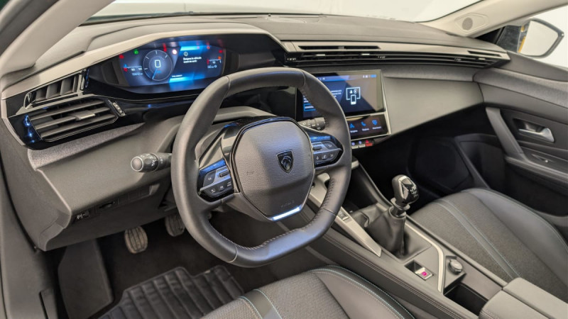 Frein de stationnement électrique / Système stop & go couplé avec l'assistance au positionnement sur la voie / Jantes alliage 17" Halong diamantées / Détection de sous gonflage / Vitres latérales AR et lunette AR surteintées / Alerte attention conducteur / Commutation automatique des feux de route / Rétroviseur intérieur photosensible / Airbags frontaux conducteur et passager adaptatifs (passager neutralisable par clé), airbags latéraux conducteur et passager AV.airbags rideaux de tête aux places AV/AR / Kit de dépannage de pneumatique : compresseur 12 volts, flacon de produit de colmatage, anneau de remorquage, deux cales de roue, manivelle de frein de stationnement électrique : 2 cales de roue Anneau remorquage Compresseur 12 V et flacon de produit de colmatage Manivelle de frein de stationnement électrique / Essuie-vitre AV à déclenchement automatique / Alerte active de franchissement involontaire de ligne et bas côté / Bandeau entre feux AR Noir brillant / 2 télécommandes 3 boutons / Lève-vitres électriques AV/ AR et séquentiels avec anti-pincement / Rétroviseurs extérieurs électriques, dégivrants et rabattables électriquement, avec répétiteurs de feux clignotants à LED / Peugeot i-Cockpit avec combiné d'instrumentation numérique 10'' personnalisable / Jupe AR Noir Brillant avec décors chromés / Diffuseurs d'air aux places AR / Feux diurnes à LED sous projecteurs nouvelle signature Peugeot / 2 prises USB-C à l'AR / Fonction Mirror Screen (Apple CarPlay/Android Auto) sans fil / 2 prises USB-C à l'AV / Lécheurs de vitres Noir Brillant / ESP avec fonction Hill Assist (Aide au démarrage en pente) / Trappe à ski (Rang 2) / Accoudoir central AV avec compartiment de rangement / Garnissage tri-matières TEP/Tissu Falgo, surpiqûres Bleu / Pare-brise teinté feuilleté acoustique / Navigation connectée avec écran central tactile 10'' et écran avec iToggles virtuels personnalisables. Reconnaissance vocale en langage naturel. / Planche de bord avec jonc transversal peint et décor textile Texa / Air Quality System / 4 poignées de maintien / Pack Drive Assist - Régulateur de vitesse adaptatif avec fonction 30 km/h Après un freinage entrainant un ralentissement en deçà de 30 km/h, le régulateur se met en pause, le conducteur doit reprendre la main, débrayer et freiner jusqu'à l'arrêt du véhicule : Régulateur de vitesse adaptatif avec fonction 30 km/h / Pack Safety Plus Active Safety Brake piloté par caméra et radar : Active Safety Brake piloté par caméra et radar / Réglage lombaire du siège conducteur / / Véhicules équivalents: Megane - C4 - Mazda 3