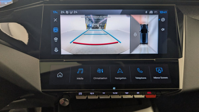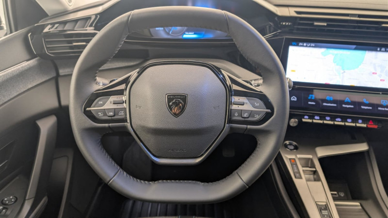 Frein de stationnement électrique / Jantes alliage 17" Halong diamantées / Détection de sous gonflage / Vitres latérales AR et lunette AR surteintées / Alerte attention conducteur / Commutation automatique des feux de route / Rétroviseur intérieur photosensible / Ceintures de sécurité AR 3 points à enrouleur (x3) avec prétensionneurs et limiteurs d'effort aux places latérales / Airbags frontaux conducteur et passager adaptatifs (passager neutralisable par clé), airbags latéraux conducteur et passager AV.airbags rideaux de tête aux places AV/AR / Essuie-vitre AV à déclenchement automatique / Alerte active de franchissement involontaire de ligne et bas côté / Bandeau entre feux AR Noir brillant / Sélecteur mode de conduite Eco et Sport / Lève-vitres électriques AV/ AR et séquentiels avec anti-pincement / Rétroviseurs extérieurs électriques, dégivrants et rabattables électriquement, avec répétiteurs de feux clignotants à LED / Peugeot i-Cockpit avec combiné d'instrumentation numérique 10'' personnalisable / Feux diurnes à LED sous projecteurs nouvelle signature Peugeot / Fonction Mirror Screen (Apple CarPlay/Android Auto) sans fil / Ceintures de sécurité AV 3 points à enrouleur, avec prétensionneurs et limiteurs d'effort / ESP avec fonction Hill Assist (Aide au démarrage en pente) / Accoudoir central AV avec compartiment de rangement / Garnissage tri-matières TEP/Tissu Falgo, surpiqûres Bleu / Pare-brise teinté feuilleté acoustique / Pack Drive Assist : Régulateur de vitesse adaptatif avec fonction Stop&Go / Pack Safety Plus : Active Safety Brake piloté par caméra et radar / Réglage lombaire du siège conducteur / Boîte de vitesse automatique, séquentielle (6 rapports) / / Véhicules équivalents: Megane - C4 - Mazda 3