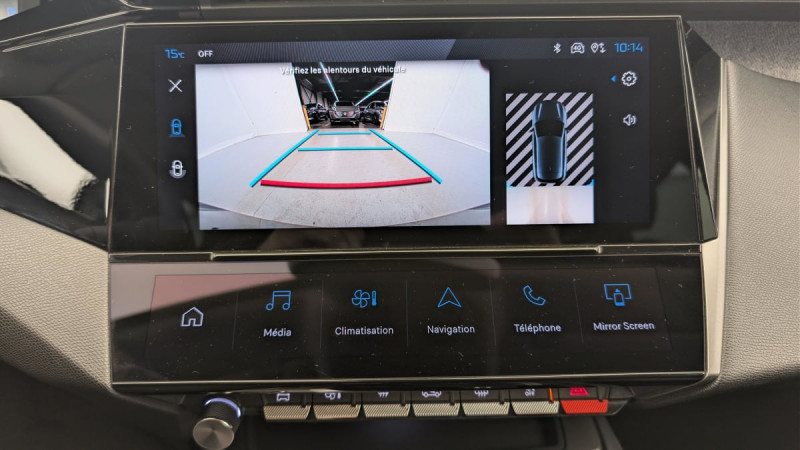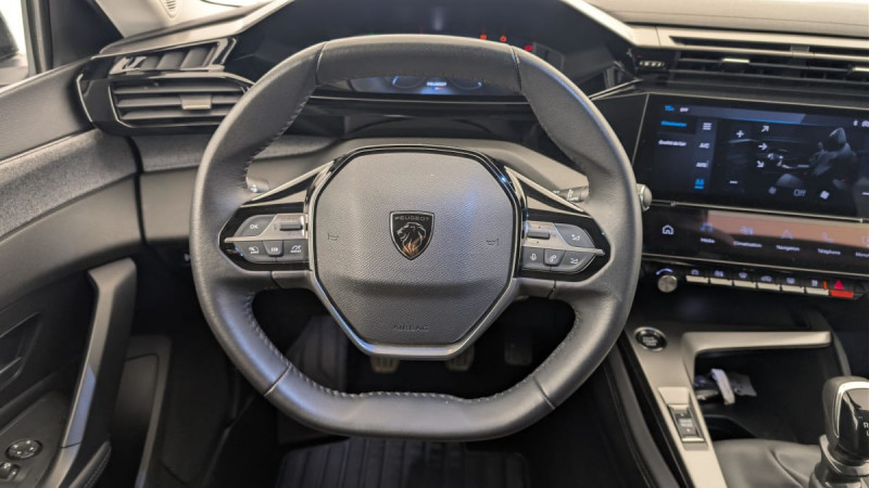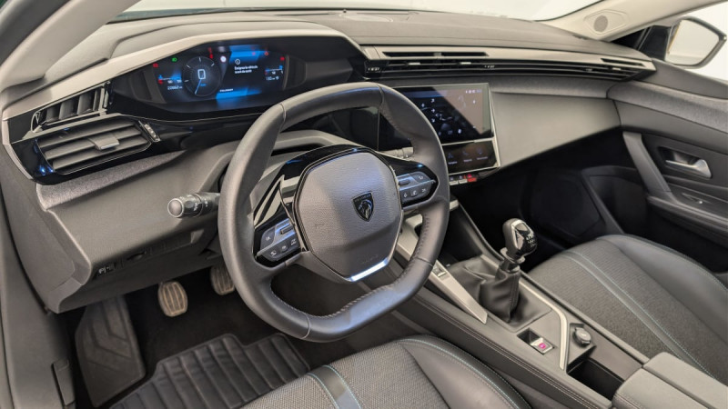 Frein de stationnement électrique / Système stop & go couplé avec l'assistance au positionnement sur la voie / Jantes alliage 17" Halong diamantées / Détection de sous gonflage / Vitres latérales AR et lunette AR surteintées / Alerte attention conducteur / Commutation automatique des feux de route / Rétroviseur intérieur photosensible / Airbags frontaux conducteur et passager adaptatifs (passager neutralisable par clé), airbags latéraux conducteur et passager AV.airbags rideaux de tête aux places AV/AR / Kit de dépannage de pneumatique : compresseur 12 volts, flacon de produit de colmatage, anneau de remorquage, deux cales de roue, manivelle de frein de stationnement électrique : 2 cales de roue Anneau remorquage Compresseur 12 V et flacon de produit de colmatage Manivelle de frein de stationnement électrique / Essuie-vitre AV à déclenchement automatique / Alerte active de franchissement involontaire de ligne et bas côté / Bandeau entre feux AR Noir brillant / 2 télécommandes 3 boutons / Lève-vitres électriques AV/ AR et séquentiels avec anti-pincement / Rétroviseurs extérieurs électriques, dégivrants et rabattables électriquement, avec répétiteurs de feux clignotants à LED / Peugeot i-Cockpit avec combiné d'instrumentation numérique 10'' personnalisable / Jupe AR Noir Brillant avec décors chromés / Diffuseurs d'air aux places AR / Feux diurnes à LED sous projecteurs nouvelle signature Peugeot / 2 prises USB-C à l'AR / Fonction Mirror Screen (Apple CarPlay/Android Auto) sans fil / 2 prises USB-C à l'AV / Lécheurs de vitres Noir Brillant / ESP avec fonction Hill Assist (Aide au démarrage en pente) / Trappe à ski (Rang 2) / Accoudoir central AV avec compartiment de rangement / Garnissage tri-matières TEP/Tissu Falgo, surpiqûres Bleu / Pare-brise teinté feuilleté acoustique / Navigation connectée avec écran central tactile 10'' et écran avec iToggles virtuels personnalisables. Reconnaissance vocale en langage naturel. / Planche de bord avec jonc transversal peint et décor textile Texa / Air Quality System / 4 poignées de maintien / Pack Drive Assist - Régulateur de vitesse adaptatif avec fonction 30 km/h Après un freinage entrainant un ralentissement en deçà de 30 km/h, le régulateur se met en pause, le conducteur doit reprendre la main, débrayer et freiner jusqu'à l'arrêt du véhicule : Régulateur de vitesse adaptatif avec fonction 30 km/h / Pack Safety Plus Active Safety Brake piloté par caméra et radar : Active Safety Brake piloté par caméra et radar / Réglage lombaire du siège conducteur / / Véhicules équivalents: Megane - C4 - Mazda 3