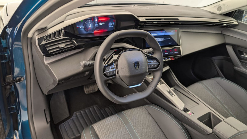 Frein de stationnement électrique / Jantes alliage 17" Halong diamantées / Détection de sous gonflage / Vitres latérales AR et lunette AR surteintées / Alerte attention conducteur / Commutation automatique des feux de route / Rétroviseur intérieur photosensible / Ceintures de sécurité AR 3 points à enrouleur (x3) avec prétensionneurs et limiteurs d'effort aux places latérales / Airbags frontaux conducteur et passager adaptatifs (passager neutralisable par clé), airbags latéraux conducteur et passager AV.airbags rideaux de tête aux places AV/AR / Essuie-vitre AV à déclenchement automatique / Sélecteur mode de conduite Eco et Sport / Lève-vitres électriques AV/ AR et séquentiels avec anti-pincement / Rétroviseurs extérieurs électriques, dégivrants et rabattables électriquement, avec répétiteurs de feux clignotants à LED / Peugeot i-Cockpit avec combiné d'instrumentation numérique 10'' personnalisable / Feux diurnes à LED sous projecteurs nouvelle signature Peugeot / Fonction Mirror Screen (Apple CarPlay/Android Auto) sans fil / Ceintures de sécurité AV 3 points à enrouleur, avec prétensionneurs et limiteurs d'effort / ESP avec fonction Hill Assist (Aide au démarrage en pente) / Accoudoir central AV avec compartiment de rangement / Garnissage tri-matières TEP/Tissu Falgo, surpiqûres Bleu / Pare-brise teinté feuilleté acoustique / 4 poignées de maintien / Pack Drive Assist : Régulateur de vitesse adaptatif avec fonction Stop&Go / Pack Safety Plus : Active Safety Brake piloté par caméra et radar / Réglage lombaire du siège conducteur / Boîte de vitesse automatique, séquentielle (6 rapports) / / Véhicules équivalents: Megane - C4 - Mazda 3