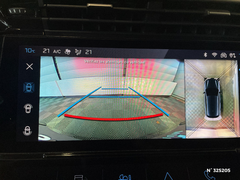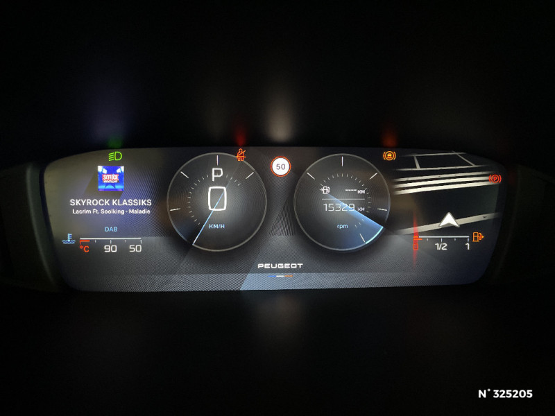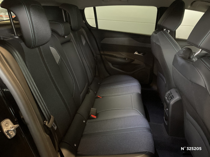 2 prises USB-C à l'AR / 2 prises USB-C à l'AV / 2 télécommandes 3 boutons / 4 poignées de maintien / 4 poignées de maintien (2 à l'AV et 2 à l'AR) / Accoudoir central AV avec compartiment de rangement / Air Quality System / Air Quality System (sonde de pollution, couplée à un filtre à charbon actif Haute Efficacité) / Airbags frontaux conducteur et passager adaptatifs (passager neutralisable par clé), airbags latéraux conducteur et passager AV.airbags rideaux de tête aux places AV/AR / Alerte active de franchissement involontaire de ligne et bas côté / Alerte attention conducteur / Bandeau entre feux AR Noir brillant / Boîte de vitesse automatique (8 rapports) / Calandre AV Noir avec inserts chromés et écopes Noir / Ceintures de sécurité AR 3 points à enrouleur (x3) avec prétensionneurs et limiteurs d'effort aux places latérales / Ceintures de sécurité AV 3 points à enrouleur, avec prétensionneurs et limiteurs d'effort / Ciel de pavillon clair / Commutation automatique des feux de route / Détection de sous gonflage / Diffuseurs d'air aux places AR / ESP avec fonction Hill Assist (Aide au démarrage en pente) / Essuie-vitre AV à déclenchement automatique / Feux diurnes à LED sous projecteurs nouvelle signature Peugeot / Fonction Mirror Screen (Apple CarPlay/Android Auto) sans fil / Frein de stationnement électrique / Garnissage tri-matières TEP/Tissu Falgo, surpiqûres Bleu / Intervalle de maintenance 30 000 km ou 1 an / Jantes alliage 17'' Calgary diamantées / Jantes alliage 17" Halong diamantées / Navigation connectée avec écran central tactile 10'' et écran avec iToggles virtuels personnalisables. Reconnaissance vocale en langage naturel. / Pack Drive Assist - Régulateur de vitesse adaptatif avec fonction Stop&Go Maintient automatiquement la vitesse du véhicule à la vitesse de référence définie par le conducteur, et ajuste automatiquement la vitesse du véhicule pour garder une distance de sécurité avec le véhicule qui précède, conformément au réglage sélectionné par le conducteur. Maintient et ajuste la vitesse jusqu'à l'arrêt. Le redémarrage du véhicule est automatique si l'arrêt a été d'une durée inférieure à 3 secondes / Pack Safety Plus Active Safety Brake piloté par caméra et radar / Jupe AR Noir Brillant avec décors chromés / Kit de dépannage de pneumatique : compresseur 12 volts, flacon de produit de colmatage, anneau de remorquage, deux cales de roue, manivelle de frein de stationnement électrique / Lécheurs de vitres Noir Brillant / Lève-vitres électriques AV/ AR et séquentiels avec anti-pincement / Navigation connectée / Pare-brise teinté feuilleté acoustique / Peugeot i-Cockpit avec combiné d'instrumentation numérique 10'' personnalisable / Planche de bord avec jonc transversal peint et décor textile Texa / Pompe à chaleur / Réglage lombaire du siège conducteur / Rétroviseur intérieur photosensible / Rétroviseurs extérieurs avec éclairage d'accueil à LED et témoins de surveillance d'angles morts / Rétroviseurs extérieurs avec éclairage d'approche / Rétroviseurs extérieurs électriques, dégivrants et rabattables électriquement, avec répétiteurs de feux clignotants à LED / Sélecteur mode de conduite Eco et Sport / Système stop & go couplé avec l'assistance au positionnement sur la voie / Trappe à ski (Rang 2) / Vitres latérales AR et lunette AR surteintées / Volant chauffant