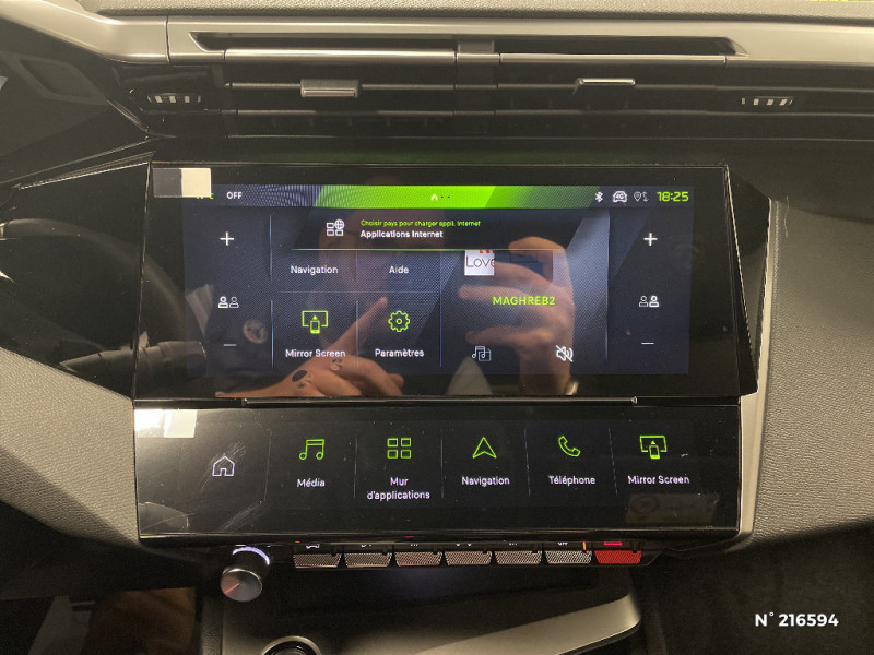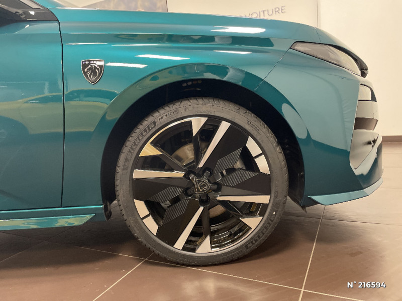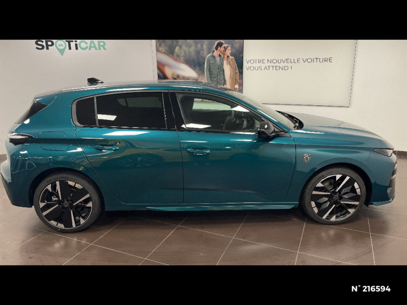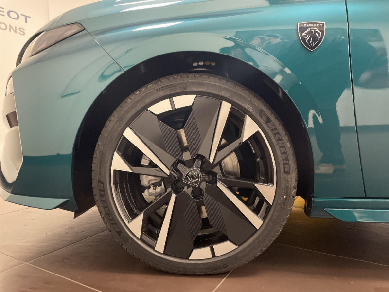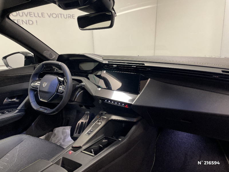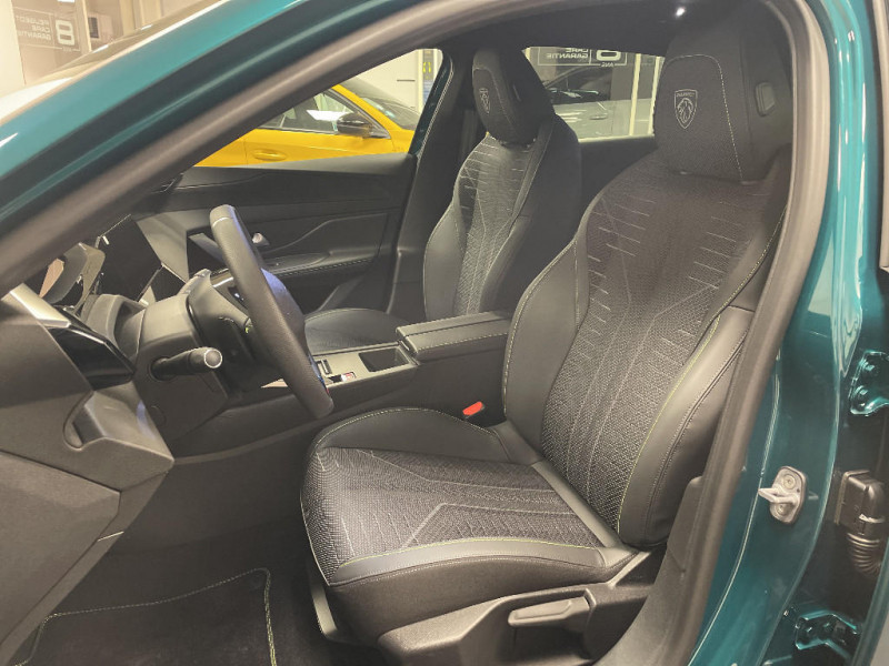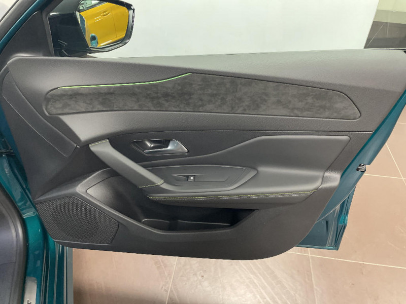 Accès et démarrage mains libres Proximity / Eléments de design intérieur Planche de bord moussée avec décor Alcantara, jonc chromé transversal, et surpiqûres vert Adamite, Panneaux de portes avec décor Alcantara, poignée de portes en similicuir avec doubles surpiqûres vert Adamite / gris Tramontane, Planche de bord et panneaux de portes AV avec éclairage d'ambiance (8 couleurs), Accoudoirs de portes en similicuir avec doubles surpiqûres vert Adamite / gris Tramontane, Ciel de pavillon Noir, Pédalier sport et repose-pied en aluminium, Seuils de porte AV en alu / Pack Drive Assist - Régulateur de vitesse adaptatif avec fonction Stop & Go / Système audio avec 6 HP 2 tweeters et 2 woofers à l?AV, 2 haut-parleurs large bande à l?AR / Peugeot i-Connect Advanced Navigation 3D connectée, et i-Toogles virtuels personnalisables, Pack Connect Plus (Abonnement inclus 6 mois) / Vitrage portes AV feuilleté / Volant compact GT en cuir pleine fleur avec surpiqûres vert Adamite / 4 poignées de maintien / Driver Sport Pack - Personnalisation du combiné spécifique - Sonorité du moteur amplifiée et plus sportive / Jantes alliage 18'' HELSINKI diamantées bi-tons Noir Onyx et inserts Noir Onyx mat / Monogrammes 'GT' sur volet de coffre / Trip planner Planification des trajets et de la recharge, intégré au système de navigation / Diffuseurs d'air AR / Feux AR 3 griffes à LED Allumage dynamique griffe à griffe / ESP avec aide au démarrage en pente, et détection de sous-gonflage indirect / 6 airbags Airbags frontaux conducteur et passager (passager neutralisable par clé) Airbags latéraux conducteur et passager AV Airbags rideaux aux places AV et AR / Sellerie tissu noir UZILA embossé, tri-matières avec accompagnement TEP Isabella Mistral, doubles surpiqûres vert / gris / Pare-brise teinté feuilleté acoustique / 2 prises USB-C à l'AR / Vitres de custode AR et lunette AR chauffante temporisée surteintées / Essuie-vitre AV à déclenchement automatique / Aide au stationnement AV et AR, graphique et sonore / Boîte de vitesse automatique, séquentielle (6 rapports) / Peugeot Connect SOS & Assistance / Lève-vitres AV et AR électriques, séquentiels et antipincement / Visiopark 1 Caméra de recul & aide au stationnement AR, graphique et sonore / Vitres latérales AR et lunette AR chauffante surteintées / Frein de stationnement électrique / Peugeot i-Cockpit avec combiné numérique 10" personnalisable / Surtapis GT AV et AR avec surpiqûres vert Adamite / Rétroviseur intérieur électrochrome / Pack Safety Plus Régulateur / Limiteur de vitesse, Freinage d'urgence automatique avec alerte risque de collision, piloté par caméra et radar Alerte active de franchissement involontaire de ligne et bas-côté, Reconnaissance étendue des panneaux de signalisation et préconisation de vitesse, Alerte attention conducteur / Rétroviseurs extérieurs avec éclairage d?approche / Navigation connectée / Projecteurs Peugeot Matrix LED Technology / 6 airbags (Frontaux adaptatifs, latéraux AV, rideaux AV et AR) / Siège conducteur et passager AV avec réglage manuel de la hauteur d'assise / Eclairage intérieur Plafonnier AV et liseuses arrière à LED, Boite à gants et rangement de console éclairés à LED, Eclairage de coffre à lampe / Eléments de design extérieur Calandre AV avec grille supérieure et blason PEUGEOT illuminés, Élargisseurs de pare-chocs AV et de bas de caisse, Monogrammes blason PEUGEOT sur ailes AV, Lécheurs de vitre Noir brillant / Siège conducteur avec réglage lombaire / Plancher de coffre modulable 2 positions