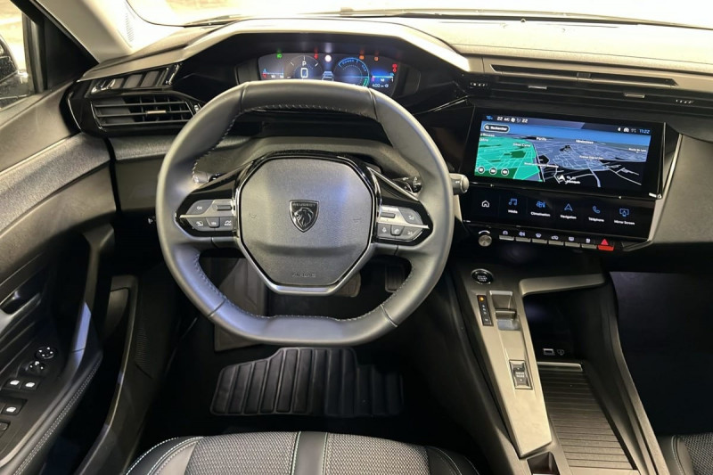 Frein de stationnement électrique / Jantes alliage 17" Halong diamantées / Détection de sous gonflage / Vitres latérales AR et lunette AR surteintées / Alerte attention conducteur / Commutation automatique des feux de route / Rétroviseur intérieur photosensible / Ceintures de sécurité AR 3 points à enrouleur (x3) avec prétensionneurs et limiteurs d'effort aux places latérales / Airbags frontaux conducteur et passager adaptatifs (passager neutralisable par clé), airbags latéraux conducteur et passager AV.airbags rideaux de tête aux places AV/AR / Essuie-vitre AV à déclenchement automatique / Alerte active de franchissement involontaire de ligne et bas côté / Bandeau entre feux AR Noir brillant / Sélecteur mode de conduite Eco et Sport / Lève-vitres électriques AV/ AR et séquentiels avec anti-pincement / Rétroviseurs extérieurs électriques, dégivrants et rabattables électriquement, avec répétiteurs de feux clignotants à LED / Peugeot i-Cockpit avec combiné d'instrumentation numérique 10'' personnalisable / Feux diurnes à LED sous projecteurs nouvelle signature Peugeot / Fonction Mirror Screen (Apple CarPlay/Android Auto) sans fil / Ceintures de sécurité AV 3 points à enrouleur, avec prétensionneurs et limiteurs d'effort / ESP avec fonction Hill Assist (Aide au démarrage en pente) / Accoudoir central AV avec compartiment de rangement / Garnissage tri-matières TEP/Tissu Falgo, surpiqûres Bleu / Pare-brise teinté feuilleté acoustique / Pack Drive Assist : Régulateur de vitesse adaptatif avec fonction Stop&Go / Pack Safety Plus : Active Safety Brake piloté par caméra et radar / Réglage lombaire du siège conducteur / Boîte de vitesse automatique, séquentielle (6 rapports) / / Véhicules équivalents: Megane - C4 - Mazda 3