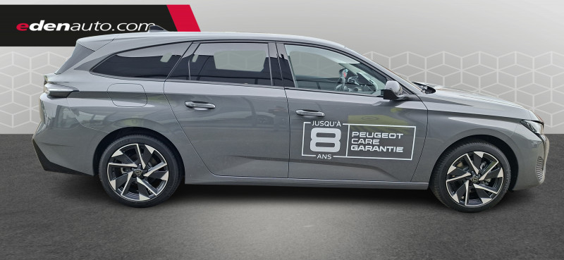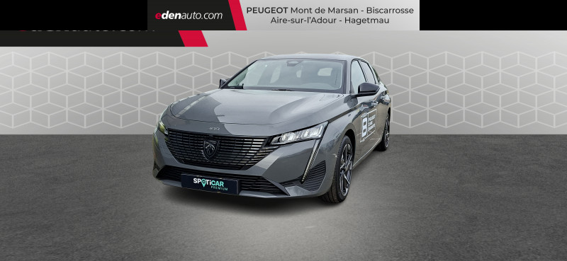 2 prises USB-C à l'AR / 2 prises USB-C à l'AV / 2 télécommandes 3 boutons / 4 poignées de maintien / Accoudoir central AV avec compartiment de rangement / Airbags frontaux conducteur et passager adaptatifs (passager neutralisable par clé), airbags latéraux conducteur et passager AV.airbags rideaux de tête aux places AV/AR / Alerte active de franchissement involontaire de ligne et bas côté / Alerte attention conducteur / Banquette AR rabattable 40 - 20 - 40 déverrouillable depuis le coffre / Boîte de vitesse automatique (8 rapports) / Calandre AV Noir avec inserts chromés et écopes Noir / Ceintures de sécurité AR 3 points à enrouleur (x3) avec prétensionneurs et limiteurs d'effort aux places latérales / Ceintures de sécurité AV 3 points à enrouleur, avec prétensionneurs et limiteurs d'effort / Ciel de pavillon clair / Commutation automatique des feux de route / Détection de sous gonflage / Diffuseurs d'air aux places AR / ESP avec fonction Hill Assist (Aide au démarrage en pente) / Essuie-vitre AV à déclenchement automatique / Feux diurnes à LED sous projecteurs nouvelle signature Peugeot / Fixations pour 2 sièges enfants ISOFIX, aux places AR, inclus Top Tether / Fonction Mirror Screen (Apple CarPlay/Android Auto) sans fil / Frein de stationnement électrique / Garnissage tri-matières TEP/Tissu Falgo, surpiqûres Bleu / Intervalle de maintenance 30 000 km ou 1 an / Jantes alliage 17" Halong diamantées / Jupe AR Noir Brillant avec décors chromés / Lécheurs de vitres Noir Brillant / Lève-vitres électriques AV/ AR et séquentiels avec anti-pincement / Lunette AR surteintée / Pack Drive Assist - Régulateur de vitesse adaptatif avec fonction Stop&Go Maintient automatiquement la vitesse du véhicule à la vitesse de référence définie par le conducteur, et ajuste automatiquement la vitesse du véhicule pour garder une distance de sécurité avec le véhicule qui précède, conformément au réglage sélectionné par le conducteur. Maintient et ajuste la vitesse jusqu'à l'arrêt. Le redémarrage du véhicule est automatique si l'arrêt a été d'une durée inférieure à 3 secondes / Pack Safety Plus Active Safety Brake piloté par caméra et radar / Pare-brise teinté feuilleté acoustique / Peugeot i-Cockpit avec instrumentation numérique 10" personnalisable / Planche de bord avec jonc transversal peint et décor textile Texa / Réglage lombaire du siège conducteur / Rétroviseur intérieur photosensible / Rétroviseurs extérieurs électriques, dégivrants et rabattables électriquement, avec répétiteurs de feux clignotants à LED / Sélecteur mode de conduite Eco et Sport / Système stop & go couplé avec l'assistance au positionnement sur la voie / Vitres de custode AR et lunette AR chauffante temporisée surteintées