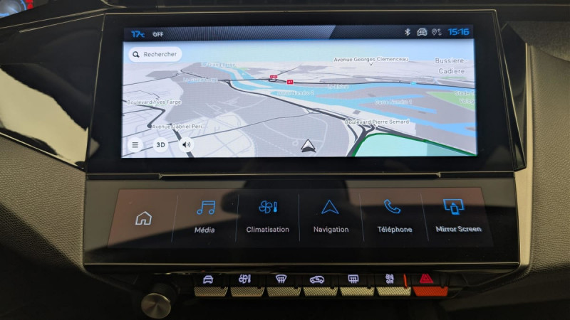 Frein de stationnement électrique / Système stop & go couplé avec l'assistance au positionnement sur la voie / Jantes alliage 17" Halong diamantées / Détection de sous gonflage / Vitres latérales AR et lunette AR surteintées / Alerte attention conducteur / Commutation automatique des feux de route / Rétroviseur intérieur photosensible / Ceintures de sécurité AR 3 points à enrouleur (x3) avec prétensionneurs et limiteurs d'effort aux places latérales / Airbags frontaux conducteur et passager adaptatifs (passager neutralisable par clé), airbags latéraux conducteur et passager AV.airbags rideaux de tête aux places AV/AR / Essuie-vitre AV à déclenchement automatique / Alerte active de franchissement involontaire de ligne et bas côté / Bandeau entre feux AR Noir brillant / Sélecteur mode de conduite Eco et Sport / Lève-vitres électriques AV/ AR et séquentiels avec anti-pincement / Rétroviseurs extérieurs électriques, dégivrants et rabattables électriquement, avec répétiteurs de feux clignotants à LED / Peugeot i-Cockpit avec combiné d'instrumentation numérique 10'' personnalisable / Calandre AV Noir avec inserts chromés et écopes Noir / Jupe AR Noir Brillant avec décors chromés / Diffuseurs d'air aux places AR / Feux diurnes à LED sous projecteurs nouvelle signature Peugeot / Fonction Mirror Screen (Apple CarPlay/Android Auto) sans fil / Ceintures de sécurité AV 3 points à enrouleur, avec prétensionneurs et limiteurs d'effort / 2 prises USB-C à l'AV / ESP avec fonction Hill Assist (Aide au démarrage en pente) / Accoudoir central AV avec compartiment de rangement / Garnissage tri-matières TEP/Tissu Falgo, surpiqûres Bleu / Pare-brise teinté feuilleté acoustique / Planche de bord avec jonc transversal peint et décor textile Texa / 4 poignées de maintien / Pack Drive Assist Régulateur de vitesse adaptatif avec fonction Stop&Go Maintient automatiquement la vitesse du véhicule à la vitesse de référence définie par le conducteur, et ajuste automatiquement la vitesse du véhicule pour garder une distance de sécurité avec le véhicule qui précède, conformément au réglage sélectionné par le conducteur. Maintient et ajuste la vitesse jusqu'à l'arrêt. Le redémarrage du véhicule est automatique si l'arrêt a été d'une durée inférieure à 3 secondes. / Pack Safety Plus : Active Safety Brake piloté par caméra et radar / Réglage lombaire du siège conducteur / / Véhicules équivalents: Megane - C4 - Mazda 3