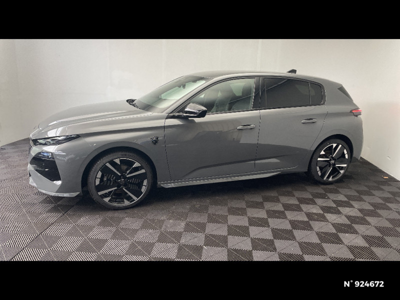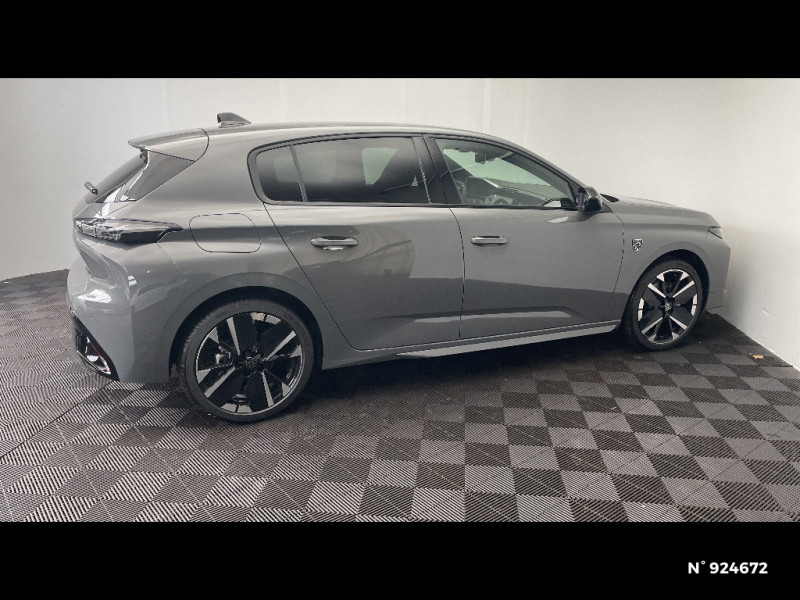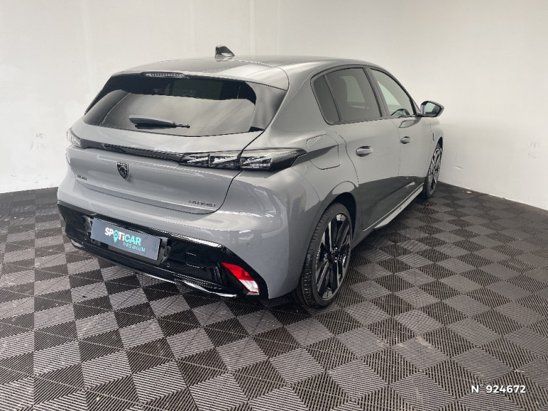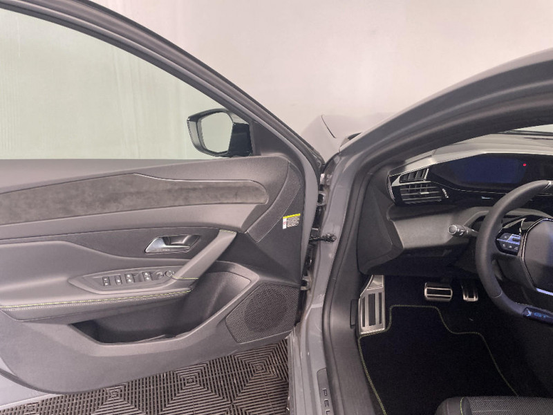 Navigation connectée / Peugeot Connect SOS & Assistance / Lève-vitres AV et AR électriques, séquentiels et antipincement / Frein de stationnement électrique / 6 airbags Airbags frontaux conducteur et passager (passager neutralisable par clé) Airbags latéraux conducteur et passager AV Airbags rideaux aux places AV et AR / ESP avec aide au démarrage en pente, et détection de sous-gonflage indirect / Sellerie tissu noir UZILA embossé, tri-matières avec accompagnement TEP Isabella Mistral, doubles surpiqûres vert / gris / Jantes alliage 18'' HELSINKI diamantées bi-tons Noir Onyx et inserts Noir Onyx mat / Monogrammes 'GT' sur volet de coffre / Driver Sport Pack - Personnalisation du combiné spécifique - Sonorité du moteur amplifiée et plus sportive / Eléments de design extérieur Calandre AV avec grille supérieure et blason PEUGEOT illuminés, Élargisseurs de pare-chocs AV et de bas de caisse, Monogrammes blason PEUGEOT sur ailes AV, Lécheurs de vitre Noir brillant / Rétroviseurs extérieurs avec éclairage d?approche / Pare-brise teinté feuilleté acoustique / Feux AR 3 griffes à LED Allumage dynamique griffe à griffe / Siège conducteur avec réglage lombaire / Vitres latérales AR et lunette AR chauffante surteintées / 6 airbags (Frontaux adaptatifs, latéraux AV, rideaux AV et AR) / Boîte de vitesse automatique, séquentielle (6 rapports) / Diffuseurs d'air AR / Essuie-vitre AV à déclenchement automatique / Visiopark 1 Caméra de recul HD et aide au stationnement AR, graphique et sonore / Sellerie tissu noir UZILA embossé, tri-matières avec accompagnement TEP Isabella Mistral, doubles surpiqûres vert Adamite / gris Tramontane, et blason PEUGEOT sur appuie-têtes AV / Trip planner Planification des trajets et de la recharge, intégré au système de navigation / Rétroviseur intérieur électrochrome / Système audio avec 6 HP 2 tweeters et 2 woofers à l?AV, 2 haut-parleurs large bande à l?AR / Peugeot i-Connect Advanced Navigation 3D connectée, et i-Toogles virtuels personnalisables, Pack Connect Plus (Abonnement inclus 6 mois) / Vitrage portes AV feuilleté / Volant compact GT en cuir pleine fleur avec surpiqûres vert Adamite / Peugeot i-Cockpit avec combiné numérique 10" personnalisable / Surtapis GT AV et AR avec surpiqûres vert Adamite / Eléments de design intérieur Planche de bord moussée avec décor Alcantara, jonc chromé transversal, et surpiqûres vert Adamite, Panneaux de portes avec décor Alcantara, poignée de portes en similicuir avec doubles surpiqûres vert Adamite / gris Tramontane, Planche de bord et panneaux de portes AV avec éclairage d'ambiance (8 couleurs), Accoudoirs de portes en similicuir avec doubles surpiqûres vert Adamite / gris Tramontane, Ciel de pavillon Noir, Pédalier sport et repose-pied en aluminium, Seuils de porte AV en alu / Accès et démarrage mains libres Proximity / Siège conducteur et passager AV avec réglage manuel de la hauteur d'assise / Eclairage intérieur Plafonnier AV et liseuses arrière à LED, Boite à gants et rangement de console éclairés à LED, Eclairage de coffre à lampe / Pack Safety Plus Régulateur / Limiteur de vitesse, Freinage d'urgence automatique avec alerte risque de collision, piloté par caméra et radar Alerte active de franchissement involontaire de ligne et bas-côté, Reconnaissance étendue des panneaux de signalisation et préconisation de vitesse, Alerte attention conducteur / Projecteurs Peugeot Matrix LED Technology / Visiopark 1 Caméra de recul & aide au stationnement AR, graphique et sonore / 4 poignées de maintien / Aide au stationnement AV et AR, graphique et sonore / Plancher de coffre modulable 2 positions / Pack Drive Assist - Régulateur de vitesse adaptatif avec fonction Stop & Go / 2 prises USB-C à l'AR / Vitres de custode AR et lunette AR chauffante temporisée surteintées