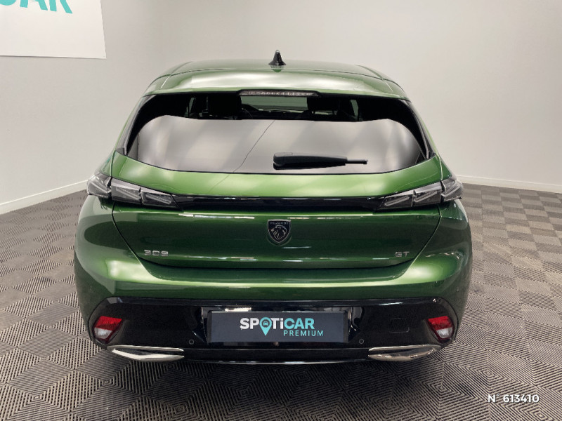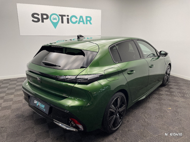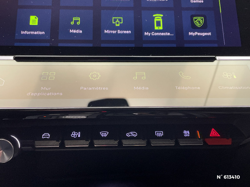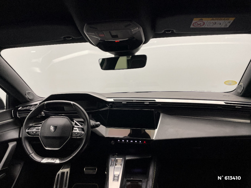 Kit de dépannage de pneumatique : compresseur 12 volts, flacon de produit de colmatage, anneau de remorquage, deux cales de roue, manivelle de frein de stationnement électrique / Airbags frontaux conducteur et passager adaptatifs (passager neutralisable par clé), airbags latéraux conducteur et passager AV, airbags rideaux de tête aux places AV et AR / Pédalier Sport aluminium et repose pied en aluminium / Pare-brise feuilleté acoustique / 2 télécommandes 3 boutons / Sélecteur mode de conduite Eco et Sport / Lève-vitres électriques AV et AR et séquentiels avec anti-pincement / Rétroviseurs extérieurs électriques, dégivrants et rabattables électriquement avec répétiteurs de feux clignotants à LED / Garnissage tri-matières TEP/Alcantara Fraxx Knit / Essuie-vitre AV à déclenchement automatique / Ceintures de sécurité AR 3 points à enrouleur (x3) avec prétensionneurs et limiteurs d'effort aux places latérales / Surtapis AV et AR / Pack Safety Plus / Pack Drive Assist / Pack Drive Assist + Rear warning / Pack Drive Assist Plus / VisioPark 360 / Siège conducteur AGR électrique à mémoire (longueur, inclinaison, hauteur, site, lombaire pneumatique et nez de coussin manuel). Siège passager à réglage mécanique en hauteur et lombaire pneumatique. Sièges AV chauffants, massants / Système Hi Fi Premium FOCAL 10 HP / PEUGEOT Connect SOS & Assistance / Feux diurnes à LED sous projecteurs nouvelle signature Peugeot / Peugeot i-Cockpit 3D avec combiné d'instrumentation numérique personnalisable / Clean Cabin avec capteur de particules dans l'habitacle / Jantes alliage 18" Portland diamantées et vernies en Noir / Fonction Mirror Screen (Apple CarPlay/Android Auto) sans fil / Calandre AV spécifique Noir verni avec inserts chromés et écopes Noir Brillant / Elargisseurs de pare chocs AV et de bas de caisse latéraux / Monogrammes latéraux emblème Lion / Planche de bord avec jonc transversal chromé, décor Alu et surpiqûres Vert / Garnissage tri-matières TEP/Alcantara Fraxx Knit, surpiqûres Vert / Navigation connectée / Pare-brise teinté feuilleté acoustique / Accès et démarrage mains libres / 2 prises USB-C à l'AR / Jupe AR Noir Brillant avec décors chromés / Rétroviseurs extérieurs avec éclairage d'approche / Diffuseurs d'air AR / Smart Multidrive: personnalisation du combiné et éclairage d'ambiance LED intérieur associés aux modes de conduite / Projecteurs Peugeot Matrix LED / Feux AR spécifiques avec allumage dynamique griffe à griffe / Driver Sport Pack / Navigation connectée avec écran central tactile 10'' et écran avec i-Toggles virtuels personnalisables. Reconnaissance vocale en langage naturel. / Volant Cuir chauffant / Air Quality System (sonde de pollution, couplée à un filtre à charbon actif Haute Efficacité) / 4 poignées de maintien (2 à l'AV et 2 à l'AR) / Ciel de pavillon noir / Accoudoir central AV avec compartiment de rangement / Ceintures de sécurité AV 3 points à enrouleur, avec prétensionneurs et limiteurs d'effort / ESP avec fonction Hill Assist (Aide au démarrage en pente) / Trappe à ski (Rang 2) / 2 prises USB-C à l'AV / Lécheurs de vitres Noir Brillant / Seuils de porte AV aluminium / Détection de sous gonflage / Alerte active de franchissement involontaire de ligne et bas côté / Vitres latérales AR et lunette AR surteintées / Frein de stationnement électrique / Alerte attention conducteur / Commutation automatique des feux de route / Rétroviseur intérieur photosensible sans cadre / Réglage lombaire du siège conducteur / Bandeau entre feux AR noir brillant / Décor Alu sur panneaux de porte