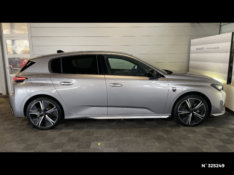 ESP avec fonction Hill Assist (Aide au démarrage en pente) / Essuie-vitre AV à déclenchement automatique / Feux AR spécifiques avec allumage dynamique griffe à griffe / Feux diurnes à LED sous projecteurs nouvelle signature Peugeot / Fonction Mirror Screen (Apple CarPlay/Android Auto) sans fil / Accès et démarrage mains libres / Accoudoir central AV avec compartiment de rangement / Frein de stationnement électrique / Garnissage tri-matières TEP/Tissu New Belomka / Intervalle de maintenance 25 000 km ou 1 an / Jantes alliage 18" Kamakura diamantées / Jupe AR Noir Brillant avec décors chromés / Lécheurs de vitres Noir Brillant / Airbags frontaux conducteur et passager adaptatifs (passager neutralisable par clé), airbags latéraux conducteur et passager AV.airbags rideaux de tête aux places AV/AR / Alerte active de franchissement involontaire de ligne et bas côté / Alerte attention conducteur / Bandeau entre feux AR Noir brillant / Boîte de vitesse automatique, séquentielle (6 rapports) / Calandre AV spécifique Noir verni avec inserts chromés et écopes Noir Brillant / Ceintures de sécurité AR 3 points à enrouleur (x3) avec prétensionneurs et limiteurs d'effort aux places latérales / Lève-vitres électriques AV/ AR et séquentiels avec anti-pincement / Monogrammes latéraux emblème Lion / Navigation connectée avec écran central tactile 10'' et i-Toggles virtuels personnalisables / Pack Drive Assist - Régulateur de vitesse adaptatif avec fonction Stop&Go Maintient automatiquement la vitesse du véhicule à la vitesse de référence définie par le conducteur, et ajuste automatiquement la vitesse du véhicule pour garder une distance de sécurité avec le véhicule qui précède, conformément au réglage sélectionné par le conducteur. Maintient et ajuste la vitesse jusqu'à l'arrêt. Le redémarrage du véhicule est automatique si l'arrêt a été d'une durée inférieure à 3 secondes / Pack Safety Plus Active Safety Brake piloté par caméra et radar / Pare-brise teinté feuilleté acoustique / Pédalier Sport et repose pied en aluminium / Peugeot Connect SOS & Assistance / Peugeot i-Cockpit avec combiné d'instrumentation numérique 10'' personnalisable / Planche de bord avec jonc transversal peint, décor Alu et surpiqûres Vert / Projecteurs Peugeot Matrix LED / Réglage lombaire du siège conducteur / Rétroviseur intérieur photosensible / Rétroviseurs extérieurs électriques, dégivrants et rabattables électriquement, avec répétiteurs de feux clignotants à LED / Sélecteur mode de conduite Eco et Sport / Seuils de porte AV aluminium / Smart Multidrive: personnalisation du combiné et éclairage d'ambiance LED intérieur associés aux modes de conduite / Surtapis AV/AR / Système stop & go couplé avec l'assistance au positionnement sur la voie / Vitres latérales AR et lunette AR surteintées / 2 prises USB-C à l'AR / 2 prises USB-C à l'AV / 2 télécommandes 3 boutons / 4 poignées de maintien / Vitres AV feuilletées acoustiques / Ceintures de sécurité AV 3 points à enrouleur, avec prétensionneurs et limiteurs d'effort / Ciel de pavillon noir / Commutation automatique des feux de route / Décor Alu sur panneaux de porte / Détection de sous gonflage / Diffuseurs d'air aux places AR / Driver Sport Pack - Personnalisation du combiné spécifique - Sonorité du moteur amplifiée et plus sportive (désactivable) / Eclairage d'ambiance (8 couleurs) / Elargisseurs de pare chocs AV et de bas de caisse latéraux