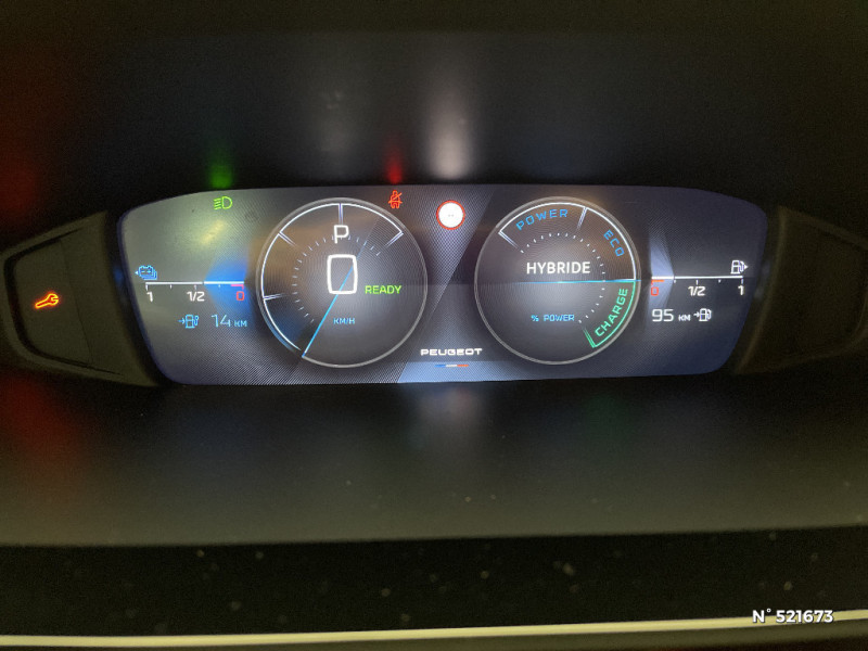 Capacité batterie 12,4 kWh / Puissance batterie 100 kW / Alerte attention conducteur / Jantes alliage 17" Halong diamantées / Pack Safety Plus / Kit de dépannage de pneumatique : compresseur 12 volts, flacon de produit de colmatage, anneau de remorquage, deux cales de roue, manivelle de frein de stationnement électrique / Rétroviseur intérieur photosensible / Pack Safety Plus - Active Safety Brake piloté par caméra et radar / Essuie-vitre AV à déclenchement automatique / Rétroviseurs extérieurs avec éclairage d?approche / Fonction Mirror Screen (Apple CarPlay/Android Auto) sans fil / Pare-brise teinté feuilleté acoustique / 2 prises USB-C à l'AV / Pré-conditionnement thermique via MyPeugeot ou l?écran central / Alerte active de franchissement involontaire de ligne et bas côté / Accoudoir central AV avec compartiment de rangement / 4 poignées de maintien (2 à l'AV et 2 à l'AR) / Réglage lombaire du siège conducteur / ESP avec fonction Hill Assist (Aide au démarrage en pente) / Détection de sous gonflage / Jupe AR Noir / Ceintures de sécurité AV 3 points à enrouleur, avec prétensionneurs et limiteurs d'effort / Frein de stationnement électrique / Pack Drive Assist - Régulateur de vitesse adaptatif avec fonction Stop&Go Maintient automatiquement la vitesse du véhicule à la vitesse de référence définie par le conducteur, et ajuste automatiquement la vitesse du véhicule pour garder une distance de sécurité avec le véhicule qui précède, conformément au réglage sélectionné par le conducteur. Maintient et ajuste la vitesse jusqu?à l'arrêt Le redémarrage du véhicule est automatique si l'arrêt a été d'une durée inférieure à 3 secondes / Peugeot i-Cockpit avec combiné d'instrumentation numérique 10'' personnalisable / Chargeur embarqué 3,7 kW / Monogrammes latéraux Hybrid / Calandre AV et écopes Noir / Jantes alliage 17'' Calgary diamantées / Planche de bord avec jonc transversal peint et décor grain Traxx / Ciel de pavillon clair / Feux diurnes à LED sous projecteurs / Rétroviseurs extérieurs électriques, dégivrants et rabattables électriquement avec répétiteurs de feux clignotants à LED / 4 poignées de maintien / Câble de recharge mode 2 (10 A, 2,3 kW, pour prise domestique standard) / Ceintures de sécurité AR 3 points à enrouleur (x3) avec prétensionneurs et limiteurs d'effort aux places latérales / Garnissage tri-matières Tissu Renze / 2 télécommandes 3 boutons / Lève-vitres électriques AV et AR et séquentiels avec anti-pincement / Rétroviseurs extérieurs avec éclairage d'approche / PEUGEOT Connect SOS & Assistance / Bandeau entre feux AR noir brillant / Sélecteur de modes (Electric, Hybrid, Sport) / Airbags frontaux conducteur et passager adaptatifs (passager neutralisable par clé), airbags latéraux conducteur et passager AV, airbags rideaux de tête aux places AV et AR / Pré-conditionnement thermique et charge différée via l?écran central