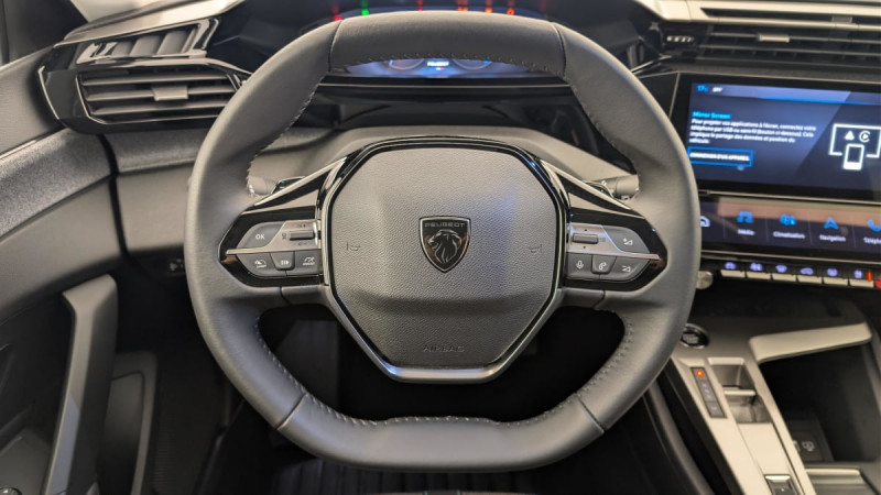Frein de stationnement électrique / Système stop & go couplé avec l'assistance au positionnement sur la voie / Jantes alliage 17" Halong diamantées / Détection de sous gonflage / Vitres latérales AR et lunette AR surteintées / Alerte attention conducteur / Commutation automatique des feux de route / Rétroviseur intérieur photosensible / Ceintures de sécurité AR 3 points à enrouleur (x3) avec prétensionneurs et limiteurs d'effort aux places latérales / Airbags frontaux conducteur et passager adaptatifs (passager neutralisable par clé), airbags latéraux conducteur et passager AV.airbags rideaux de tête aux places AV/AR / Essuie-vitre AV à déclenchement automatique / Alerte active de franchissement involontaire de ligne et bas côté / Bandeau entre feux AR Noir brillant / Sélecteur mode de conduite Eco et Sport / Lève-vitres électriques AV/ AR et séquentiels avec anti-pincement / Rétroviseurs extérieurs électriques, dégivrants et rabattables électriquement, avec répétiteurs de feux clignotants à LED / Peugeot i-Cockpit avec combiné d'instrumentation numérique 10'' personnalisable / Calandre AV Noir avec inserts chromés et écopes Noir / Jupe AR Noir Brillant avec décors chromés / Feux diurnes à LED sous projecteurs nouvelle signature Peugeot / Fonction Mirror Screen (Apple CarPlay/Android Auto) sans fil / Ceintures de sécurité AV 3 points à enrouleur, avec prétensionneurs et limiteurs d'effort / 2 prises USB-C à l'AV / Lécheurs de vitres Noir Brillant / ESP avec fonction Hill Assist (Aide au démarrage en pente) / Accoudoir central AV avec compartiment de rangement / Garnissage tri-matières TEP/Tissu Falgo, surpiqûres Bleu / Pare-brise teinté feuilleté acoustique / Planche de bord avec jonc transversal peint et décor textile Texa / 4 poignées de maintien / Pack Drive Assist : Régulateur de vitesse adaptatif avec fonction Stop&Go / Pack Safety Plus : Active Safety Brake piloté par caméra et radar / Réglage lombaire du siège conducteur / Boîte de vitesse automatique, séquentielle (6 rapports) / / Véhicules équivalents: Megane - C4 - Mazda 3