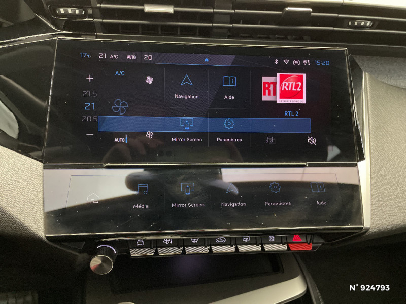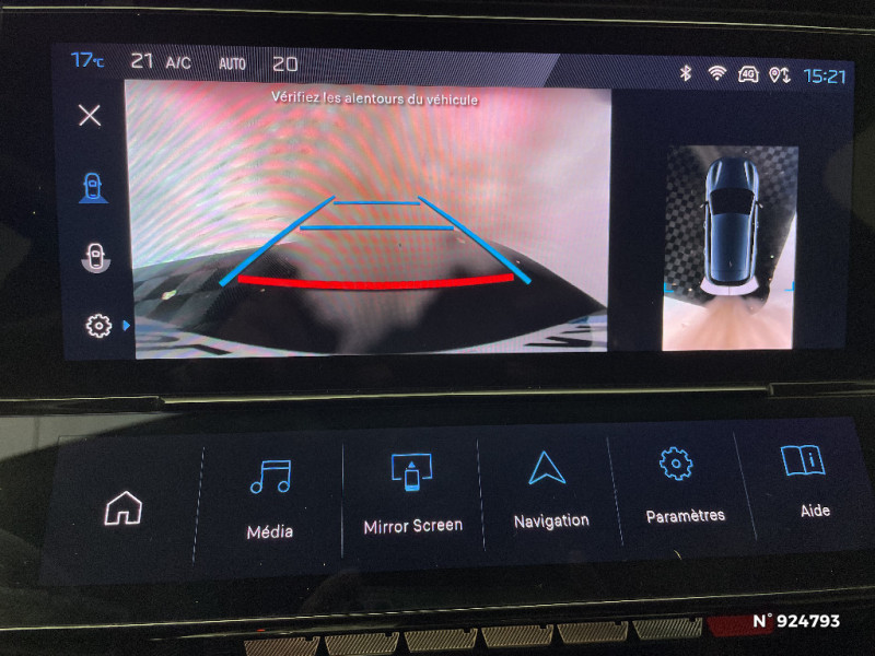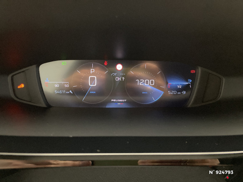 4 poignées de maintien (2 à l'AV et 2 à l'AR) / Alerte attention conducteur / Commutation automatique des feux de route / Rétroviseur intérieur photosensible / Trappe à ski (Rang 2) / Accoudoir central AV avec compartiment de rangement / ESP avec fonction Hill Assist (Aide au démarrage en pente) / Vitres latérales AR et lunette AR surteintées / Pare-brise teinté feuilleté acoustique / Garnissage tri-matières TEP/Tissu Falgo, surpiqûres Bleu / Bandeau entre feux AR noir brillant / Air Quality System (sonde de pollution, couplée à un filtre à charbon actif Haute Efficacité) / Sélecteur mode de conduite Eco et Sport / Kit de dépannage de pneumatique : compresseur 12 volts, flacon de produit de colmatage, anneau de remorquage, deux cales de roue, manivelle de frein de stationnement électrique / Ceintures de sécurité AR 3 points à enrouleur (x3) avec prétensionneurs et limiteurs d'effort aux places latérales / Lécheurs de vitres Noir Brillant / 2 télécommandes 3 boutons / Rétroviseurs extérieurs électriques, dégivrants et rabattables électriquement avec répétiteurs de feux clignotants à LED / Air Quality System / Détection de sous gonflage / Essuie-vitre AV à déclenchement automatique / Airbags frontaux conducteur et passager adaptatifs (passager neutralisable par clé), airbags latéraux conducteur et passager AV, airbags rideaux de tête aux places AV et AR / Fonction Mirror Screen (Apple CarPlay/Android Auto) sans fil / Réglage lombaire du siège conducteur / Rétroviseurs extérieurs avec éclairage d'approche / Peugeot i-Cockpit avec combiné d'instrumentation numérique 10'' personnalisable / Calandre AV Noir avec inserts chromés et écopes Noir / Jupe AR Noir Brillant avec décors chromés / Jantes alliage 17'' Calgary diamantées / Ciel de pavillon clair / Ceintures de sécurité AV 3 points à enrouleur, avec prétensionneurs et limiteurs d'effort / Navigation connectée / Planche de bord avec jonc transversal peint et décor textile Texa / Feux diurnes à LED sous projecteurs nouvelle signature Peugeot / Diffuseurs d'air AR / 2 prises USB-C à l'AV / 2 prises USB-C à l'AR / Lève-vitres électriques AV et AR et séquentiels avec anti-pincement / Frein de stationnement électrique / Alerte active de franchissement involontaire de ligne et bas côté