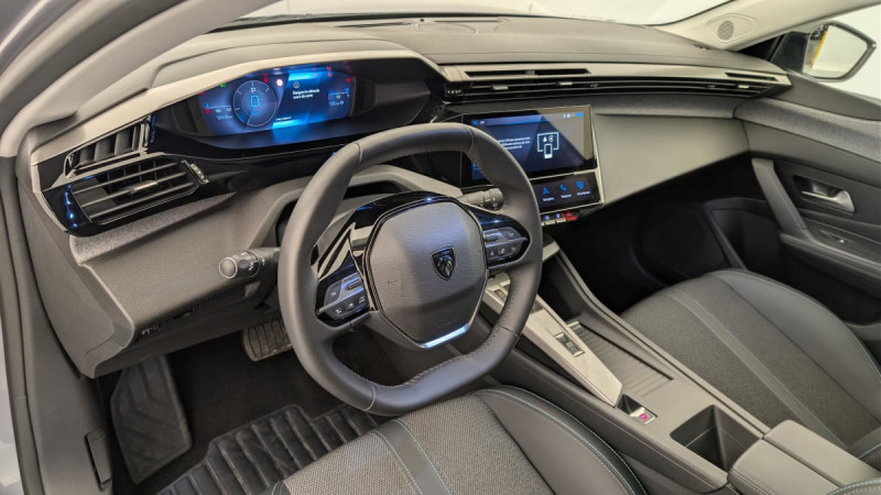 Frein de stationnement électrique / Système stop & go couplé avec l'assistance au positionnement sur la voie / Jantes alliage 17" Halong diamantées / Détection de sous gonflage / Vitres latérales AR et lunette AR surteintées / Alerte attention conducteur / Commutation automatique des feux de route / Rétroviseur intérieur photosensible / Ceintures de sécurité AR 3 points à enrouleur (x3) avec prétensionneurs et limiteurs d'effort aux places latérales / Airbags frontaux conducteur et passager adaptatifs (passager neutralisable par clé), airbags latéraux conducteur et passager AV.airbags rideaux de tête aux places AV/AR / Essuie-vitre AV à déclenchement automatique / Alerte active de franchissement involontaire de ligne et bas côté / Bandeau entre feux AR Noir brillant / Sélecteur mode de conduite Eco et Sport / Lève-vitres électriques AV/ AR et séquentiels avec anti-pincement / Rétroviseurs extérieurs électriques, dégivrants et rabattables électriquement, avec répétiteurs de feux clignotants à LED / Peugeot i-Cockpit avec combiné d'instrumentation numérique 10'' personnalisable / Calandre AV Noir avec inserts chromés et écopes Noir / Jupe AR Noir Brillant avec décors chromés / Diffuseurs d'air aux places AR / Feux diurnes à LED sous projecteurs nouvelle signature Peugeot / Fonction Mirror Screen (Apple CarPlay/Android Auto) sans fil / Ceintures de sécurité AV 3 points à enrouleur, avec prétensionneurs et limiteurs d'effort / 2 prises USB-C à l'AV / ESP avec fonction Hill Assist (Aide au démarrage en pente) / Accoudoir central AV avec compartiment de rangement / Garnissage tri-matières TEP/Tissu Falgo, surpiqûres Bleu / Pare-brise teinté feuilleté acoustique / Planche de bord avec jonc transversal peint et décor textile Texa / 4 poignées de maintien / Pack Drive Assist Régulateur de vitesse adaptatif avec fonction Stop&Go Maintient automatiquement la vitesse du véhicule à la vitesse de référence définie par le conducteur, et ajuste automatiquement la vitesse du véhicule pour garder une distance de sécurité avec le véhicule qui précède, conformément au réglage sélectionné par le conducteur. Maintient et ajuste la vitesse jusqu'à l'arrêt. Le redémarrage du véhicule est automatique si l'arrêt a été d'une durée inférieure à 3 secondes. / Pack Safety Plus : Active Safety Brake piloté par caméra et radar / Réglage lombaire du siège conducteur / / Véhicules équivalents: Megane - C4 - Mazda 3