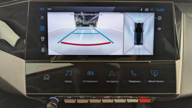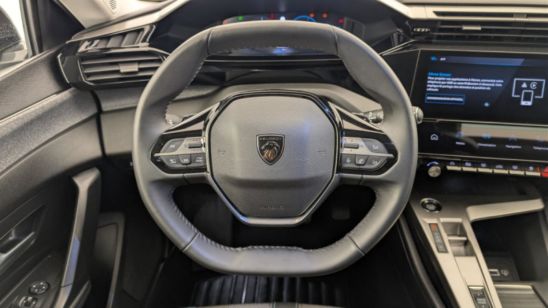 Frein de stationnement électrique / Système stop & go couplé avec l'assistance au positionnement sur la voie / Jantes alliage 17" Halong diamantées / Détection de sous gonflage / Vitres latérales AR et lunette AR surteintées / Alerte attention conducteur / Commutation automatique des feux de route / Rétroviseur intérieur photosensible / Ceintures de sécurité AR 3 points à enrouleur (x3) avec prétensionneurs et limiteurs d'effort aux places latérales / Airbags frontaux conducteur et passager adaptatifs (passager neutralisable par clé), airbags latéraux conducteur et passager AV.airbags rideaux de tête aux places AV/AR / Essuie-vitre AV à déclenchement automatique / Alerte active de franchissement involontaire de ligne et bas côté / Bandeau entre feux AR Noir brillant / Sélecteur mode de conduite Eco et Sport / Lève-vitres électriques AV/ AR et séquentiels avec anti-pincement / Rétroviseurs extérieurs électriques, dégivrants et rabattables électriquement, avec répétiteurs de feux clignotants à LED / Ciel de pavillon clair / Peugeot i-Cockpit avec combiné d'instrumentation numérique 10'' personnalisable / Calandre AV Noir avec inserts chromés et écopes Noir / Jupe AR Noir Brillant avec décors chromés / Feux diurnes à LED sous projecteurs nouvelle signature Peugeot / Fonction Mirror Screen (Apple CarPlay/Android Auto) sans fil / Ceintures de sécurité AV 3 points à enrouleur, avec prétensionneurs et limiteurs d'effort / 2 prises USB-C à l'AV / Lécheurs de vitres Noir Brillant / ESP avec fonction Hill Assist (Aide au démarrage en pente) / Accoudoir central AV avec compartiment de rangement / Garnissage tri-matières TEP/Tissu Falgo, surpiqûres Bleu / Pare-brise teinté feuilleté acoustique / 4 poignées de maintien / Pack Drive Assist : Régulateur de vitesse adaptatif avec fonction Stop&Go / Pack Safety Plus : Active Safety Brake piloté par caméra et radar / Réglage lombaire du siège conducteur / / Véhicules équivalents: Megane - C4 - Mazda 3