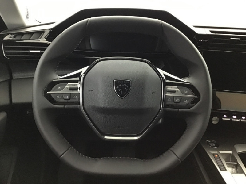 2 prises USB-C a l'AV / 2 telecommandes 3 boutons / 4 poignees de maintien / Accoudoir central AV avec compartiment de rangement / Air Quality System / Airbags frontaux conducteur et passager adaptatifs (passager neutralisable par cle), airbags / Alerte active de franchissement involontaire de ligne et bas cote / Alerte attention conducteur / Bandeau entre feux AR Noir brillant / Calandre AV Noir avec inserts chromes et ecopes Noir / Commutation automatique des feux de route / Diffuseurs d'air aux places AR / ESP avec fonction Hill Assist (Aide au demarrage en pente) / Essuie-vitre AV a declenchement automatique / Feux diurnes a LED sous projecteurs nouvelle signature Peugeot / Fonction Mirror Screen (Apple CarPlay/Android Auto) sans fil / Frein de stationnement electrique / Garnissage tri-matieres TEP/Tissu Falgo, surpiqures Bleu / Jantes alliage 17'' Calgary diamantees / Jupe AR Noir Brillant avec decors chromes / Lecheurs de vitres Noir Brillant / Leve-vitres electriques AV/ AR et sequentiels avec anti-pincement / Pack Drive Assist - Regulateur de vitesse adaptatif avec fonction Stop&Go : Regulateur de vitesse adaptatif avec fonction Stop&Go / Pack Safety Plus : Active Safety Brake pilote par camera et radar / Peugeot i-Cockpit avec combine d'instrumentation numerique 10'' personnalisable / Planche de bord avec jonc transversal peint et decor textile Texa / Reglage lombaire du siege conducteur / Retroviseur interieur photosensible / Retroviseurs exterieurs avec eclairage d'approche / Selecteur mode de conduite Eco et Sport / Systeme stop & go couple avec l'assistance au positionnement sur la voie / Vitres laterales AR et lunette AR surteintees